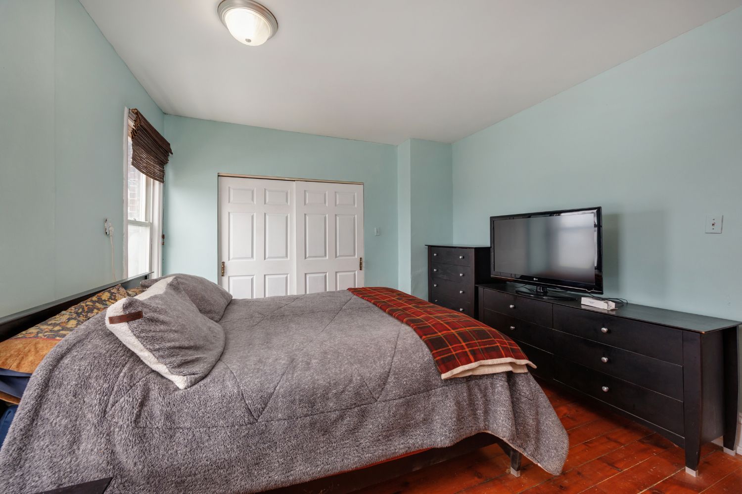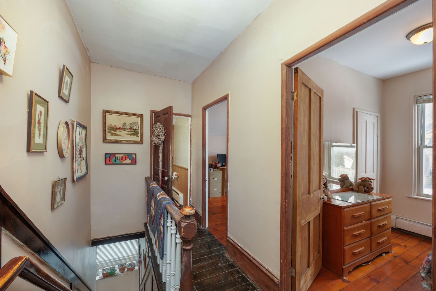 • Original pine floors and high ceilings featured throughout the carpet-free interior.