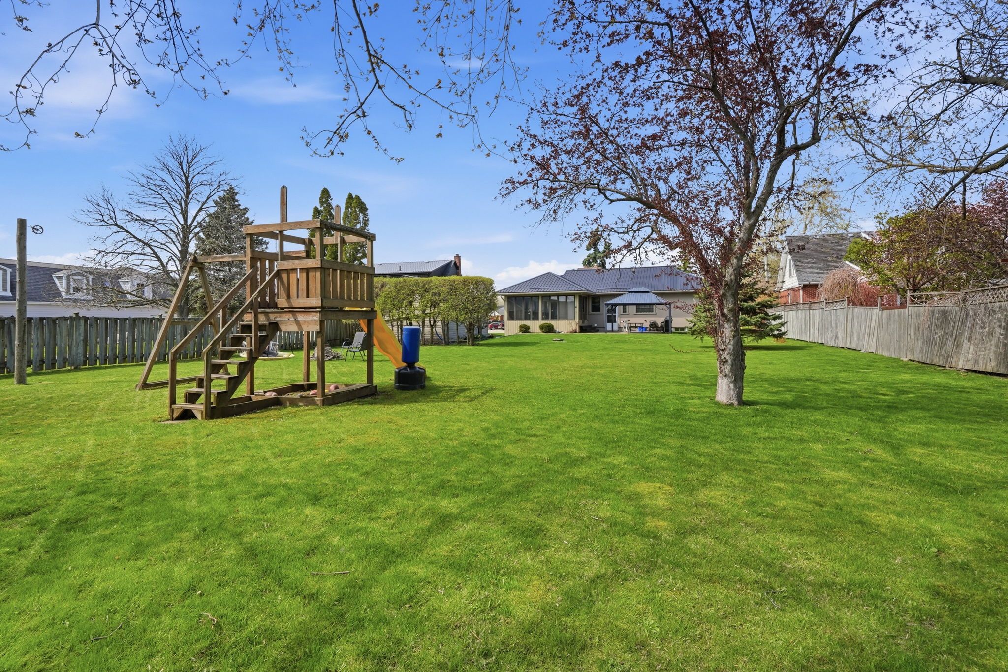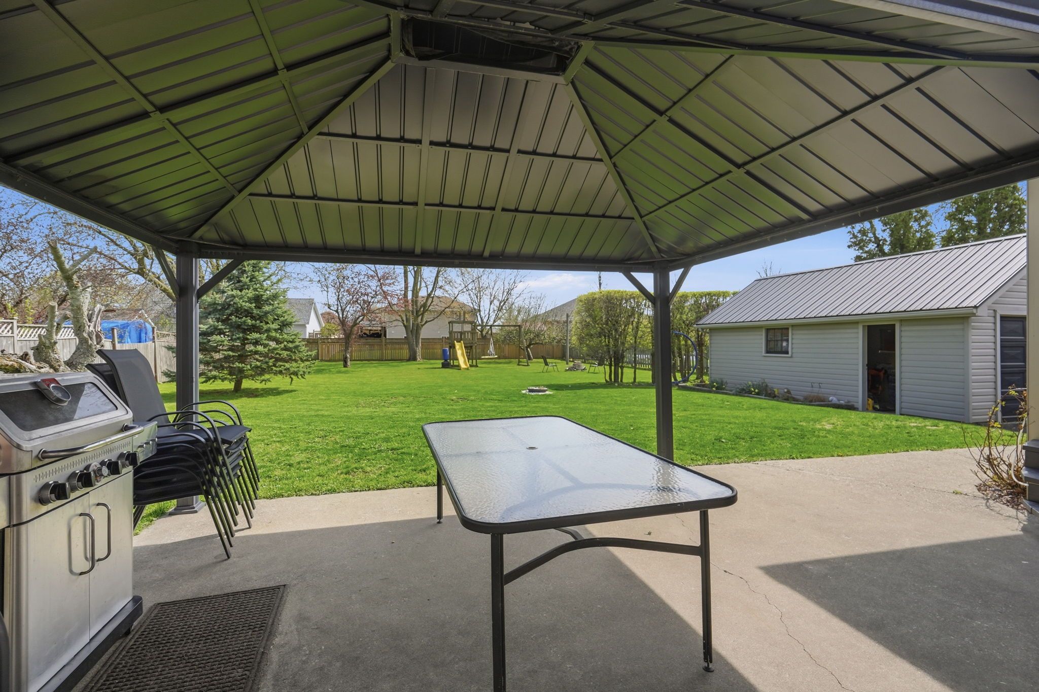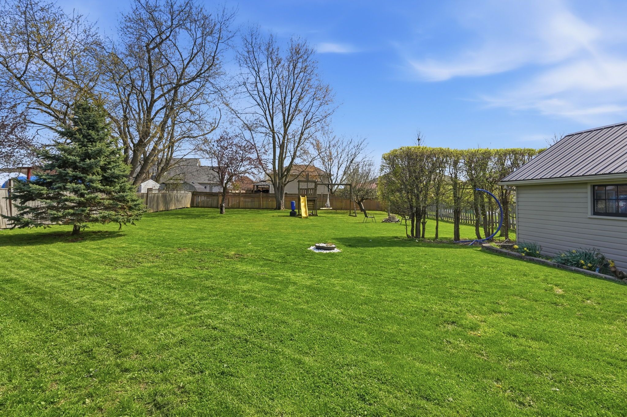 • Detached garage, gazebo, fire pit, and play structures for outdoor fun.