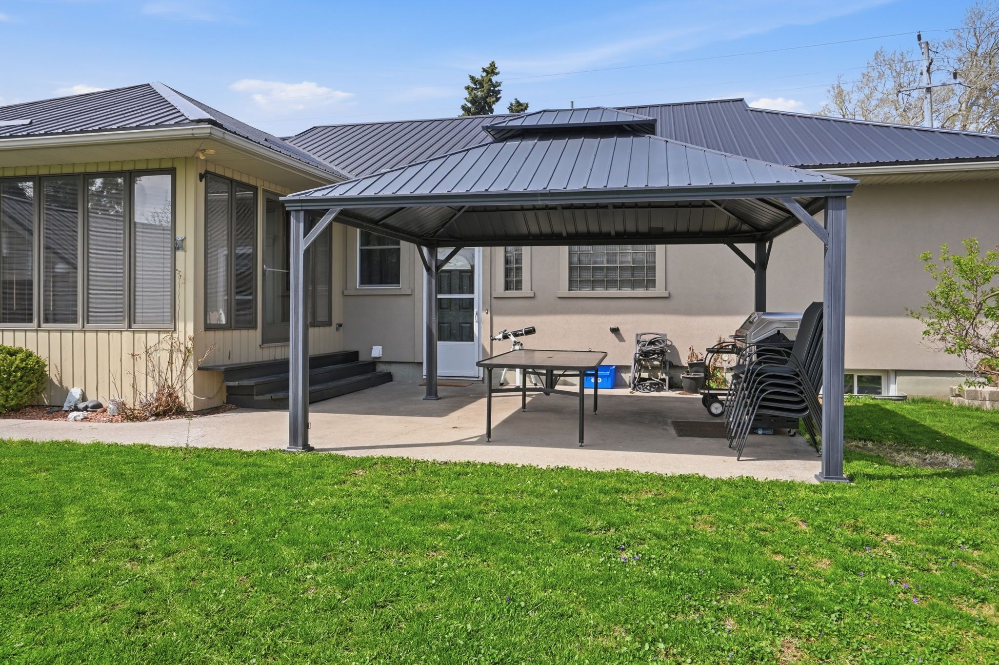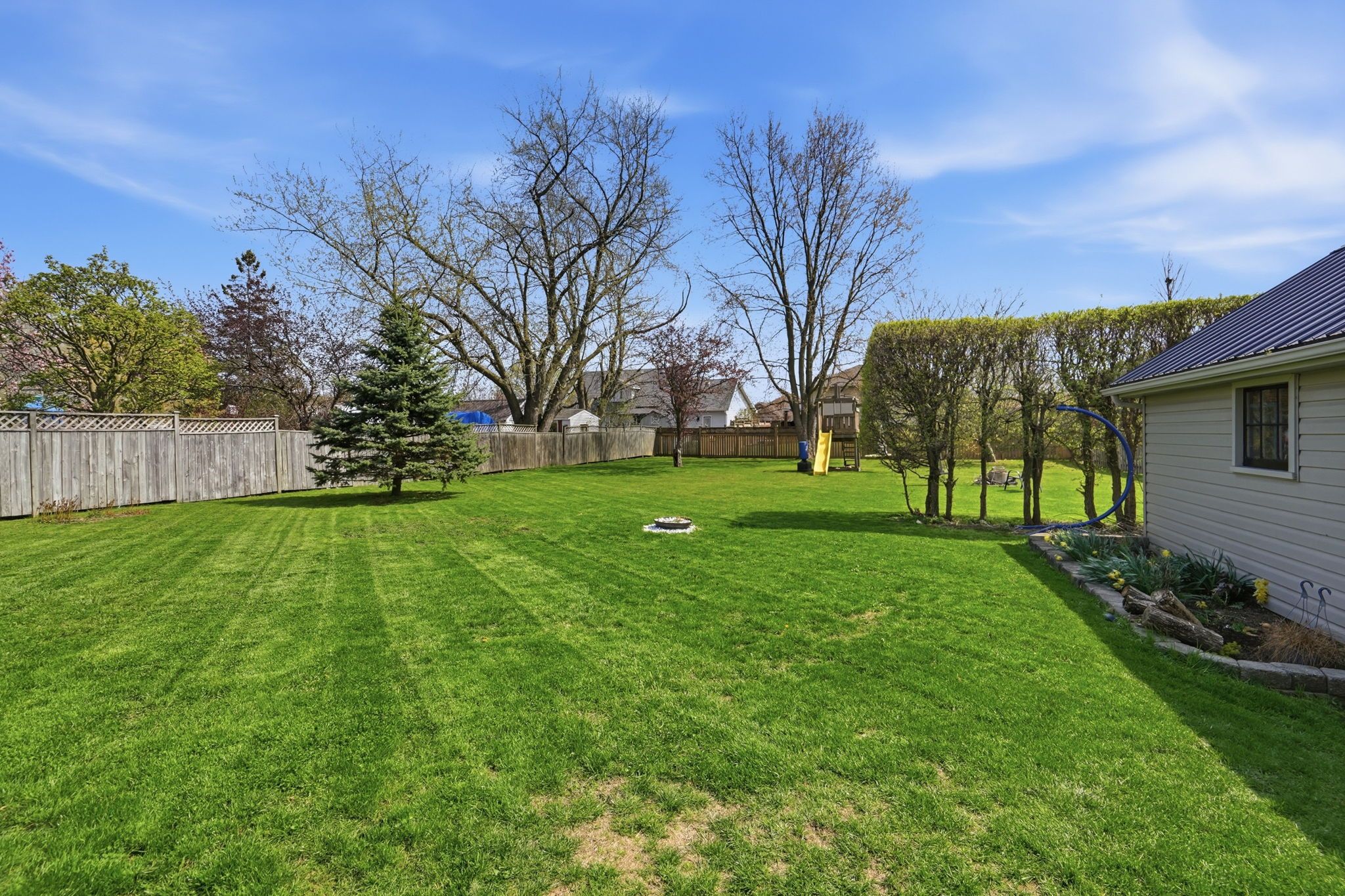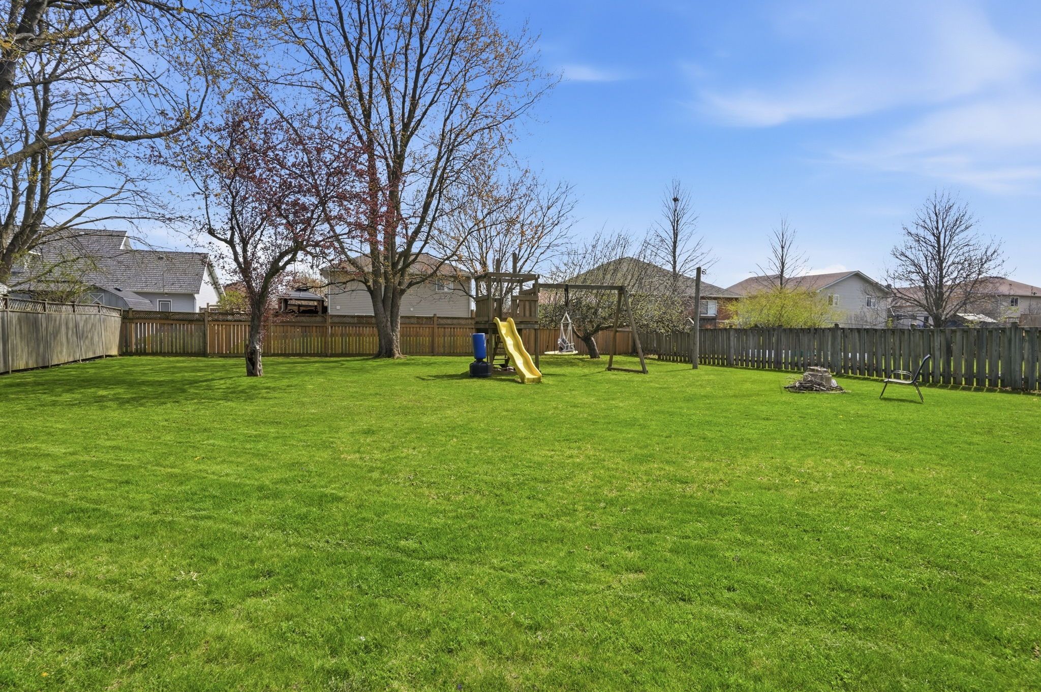 • Detached garage, gazebo, fire pit, and play structures for outdoor fun.