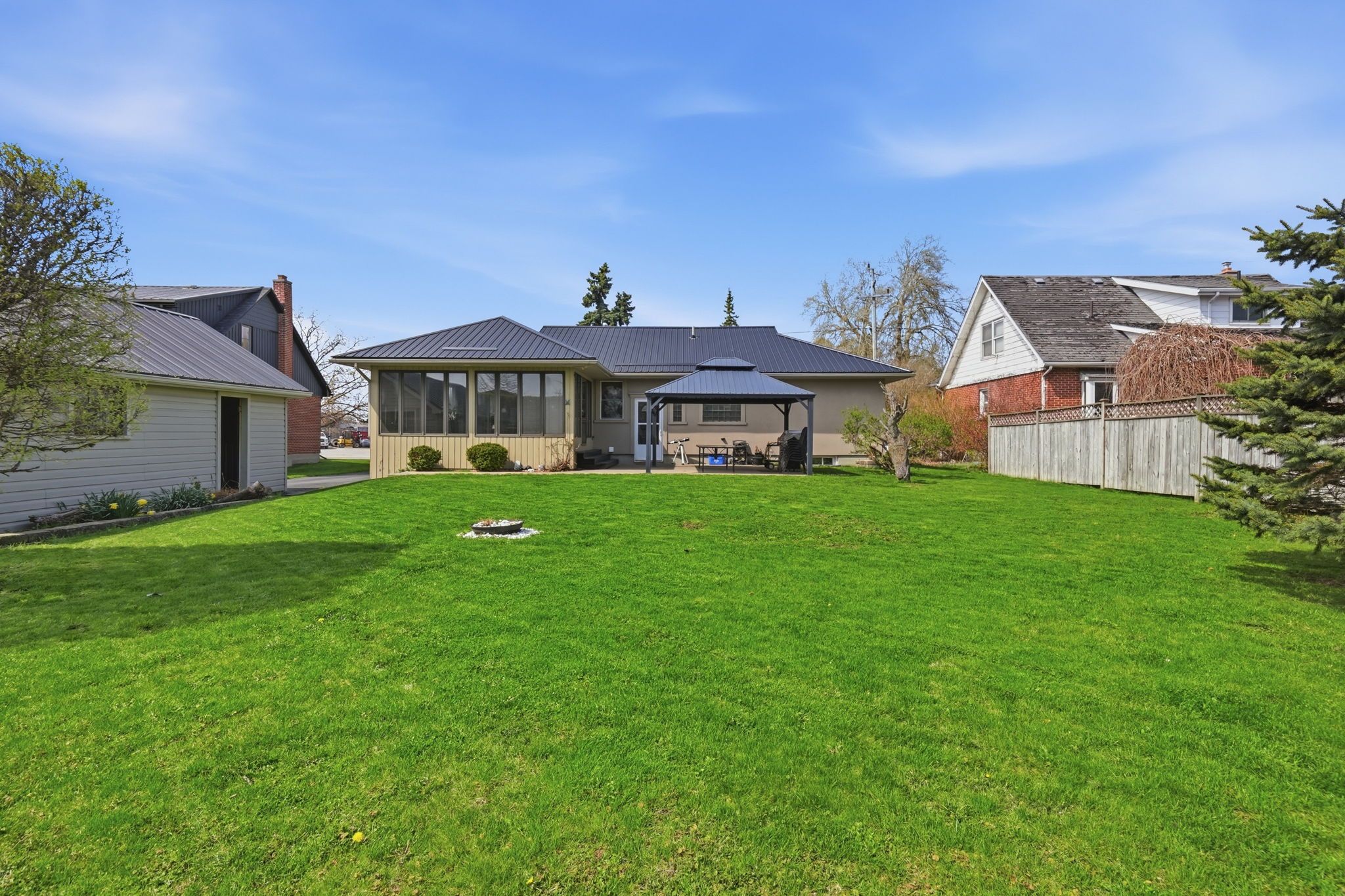 The bungalow with a great lot that you have been looking for! Just under 1500 sq ft, this 3 + 1 bedroom 2 bathroom home in the vibrant hagersville is set on a gorgeous 1/3 of an acre lot, just in time for you to soak in the beautiful months ahead. Enjoy the ultimate relaxation, outdoor gatherings and/or playing with the kids, complete with a detached garage, outdoor gazebo, fire pit and play structures. Now step inside into the welcoming foyer, which leads you to the bright and spacious living and dining rooms with beautiful hardwood flooring throughout. The dining room leads you to the well-appointed kitchen, with a custom built in bench, and a lookout window into the sun room. The family room/all season sunroom is accessed from the dining room and is a wonderful place to spend time with loved ones, have a read, or just enjoy a coffee by the sun. The sunroom overlooks the gorgeous backyard, which is a serene setting that must be seen. For convenience and separation, the 3 well-sized bedrooms are on the other size of the home. The basement has a separate entrance and is mostly finished, with everything done but the ceilings, giving you the ability to create extra living space or an in-law suite. It currently offers a recreation room, additional bedroom, office, cold room and 3 piece bathroom with a shower. This home has had many notable upgrades over the years including: long lasting metal roof on house and garage, waterproofing from the exterior, 100 amp electrical panel, and aluminum soffits, fascia & eaves. Basement flooring, shower, toilet and sump pumps with back up. Microwave, washer and dryer are few years old. Well maintained and move in ready with many updates over the years. Nothing to do but enjoy both the inside and the outside of this wonderful bungalow!