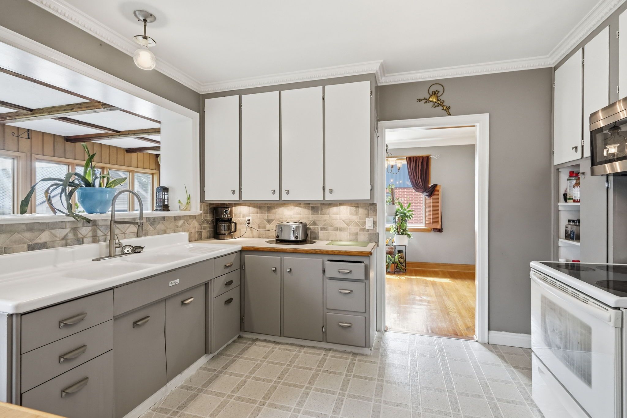 • Bright living and dining rooms with beautiful hardwood flooring.