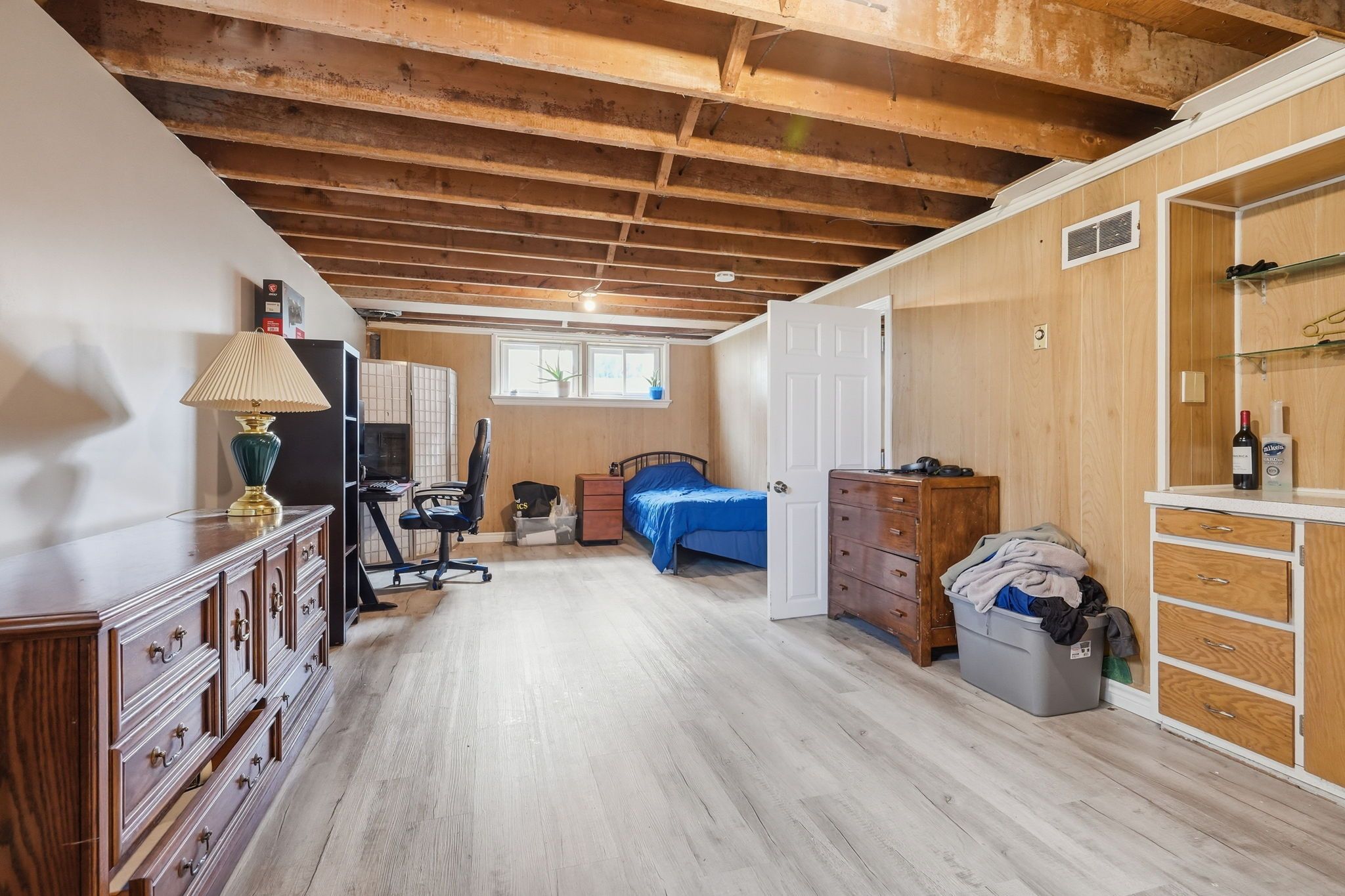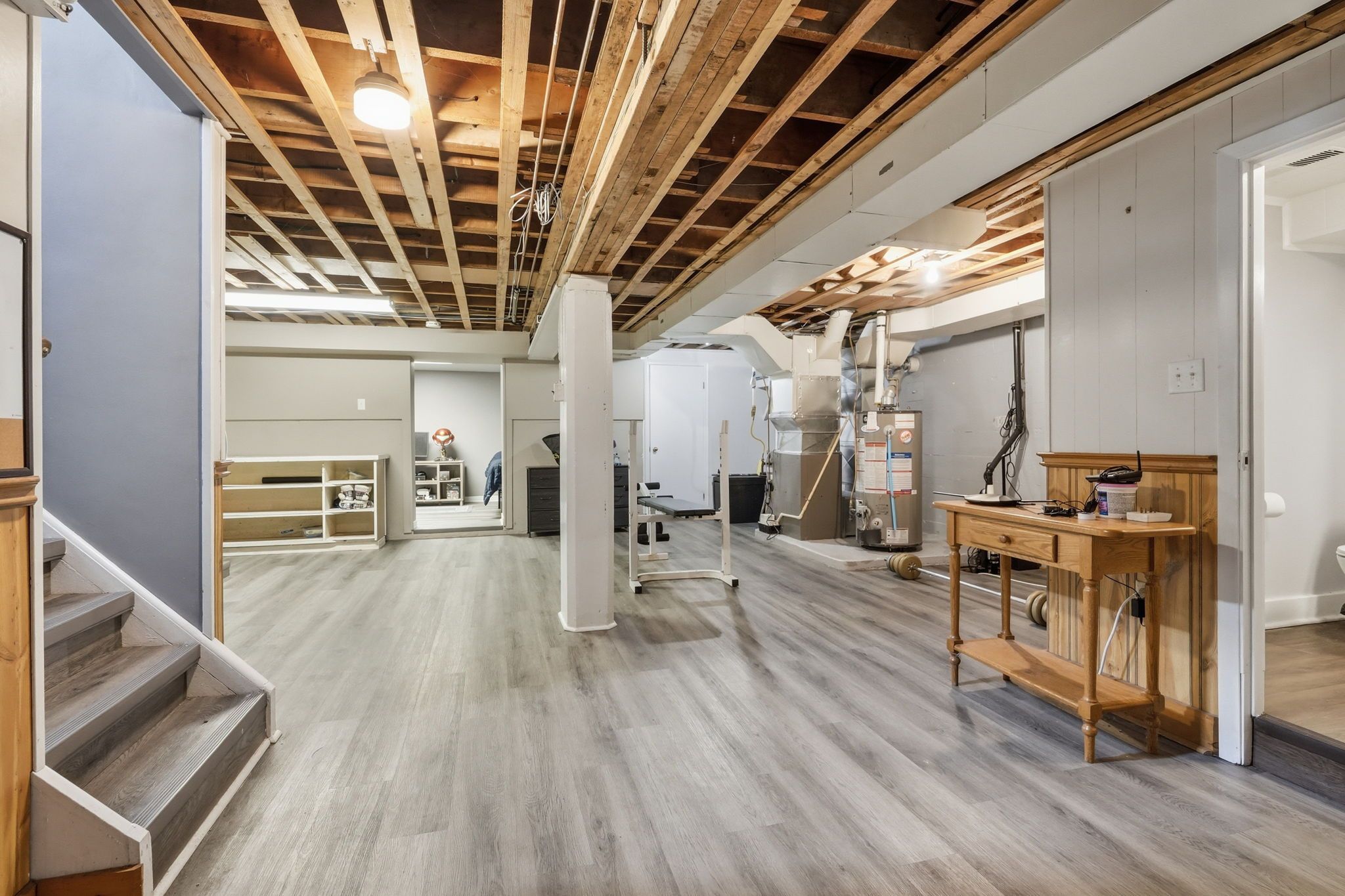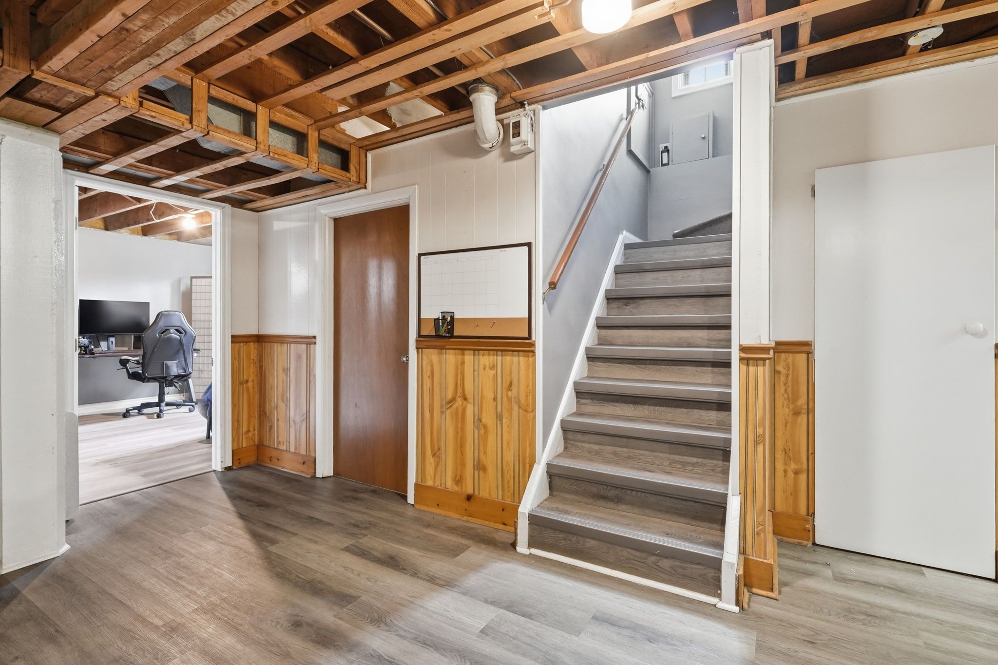 • Partially finished basement with separate entrance and multiple rooms.
