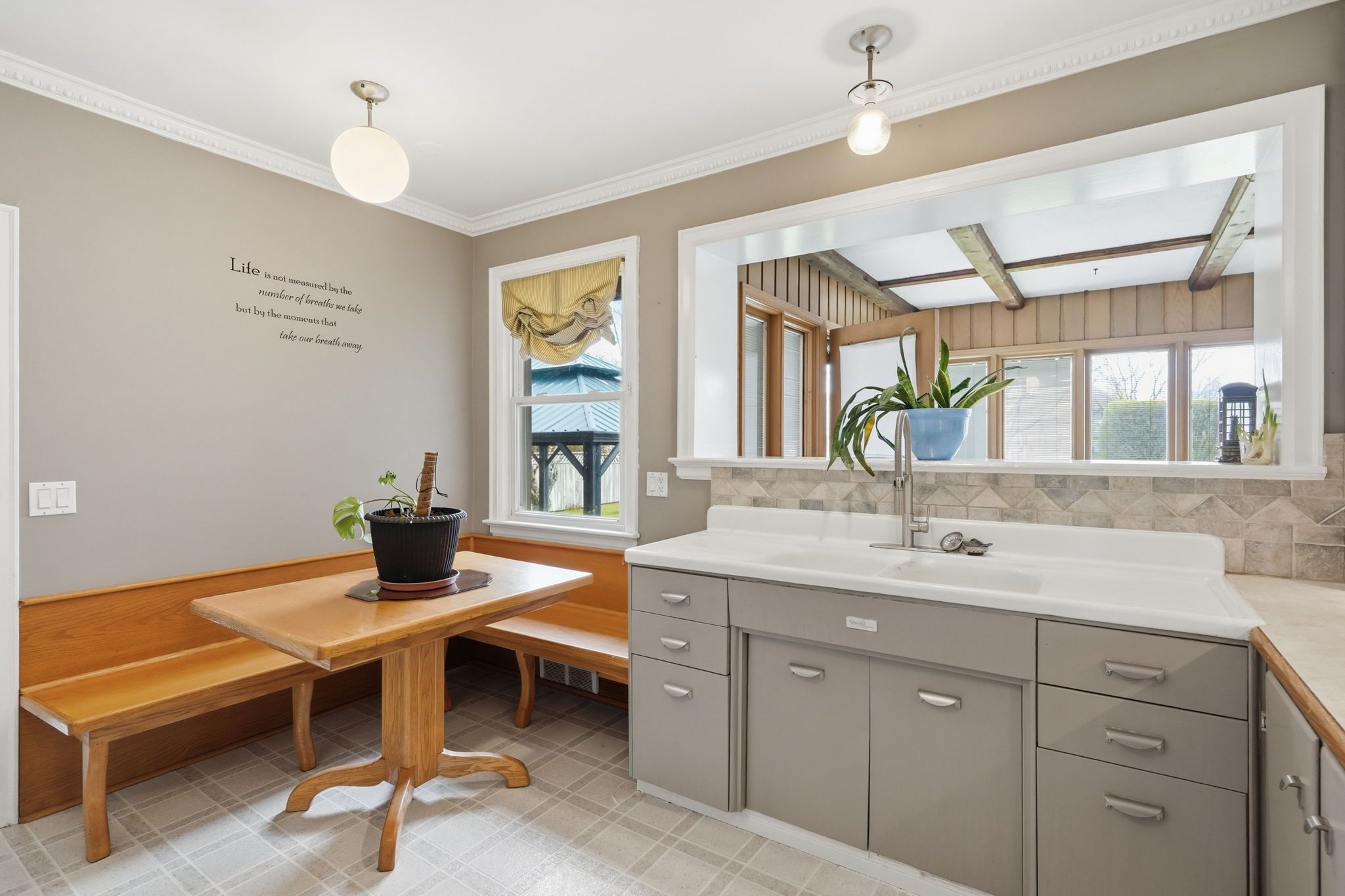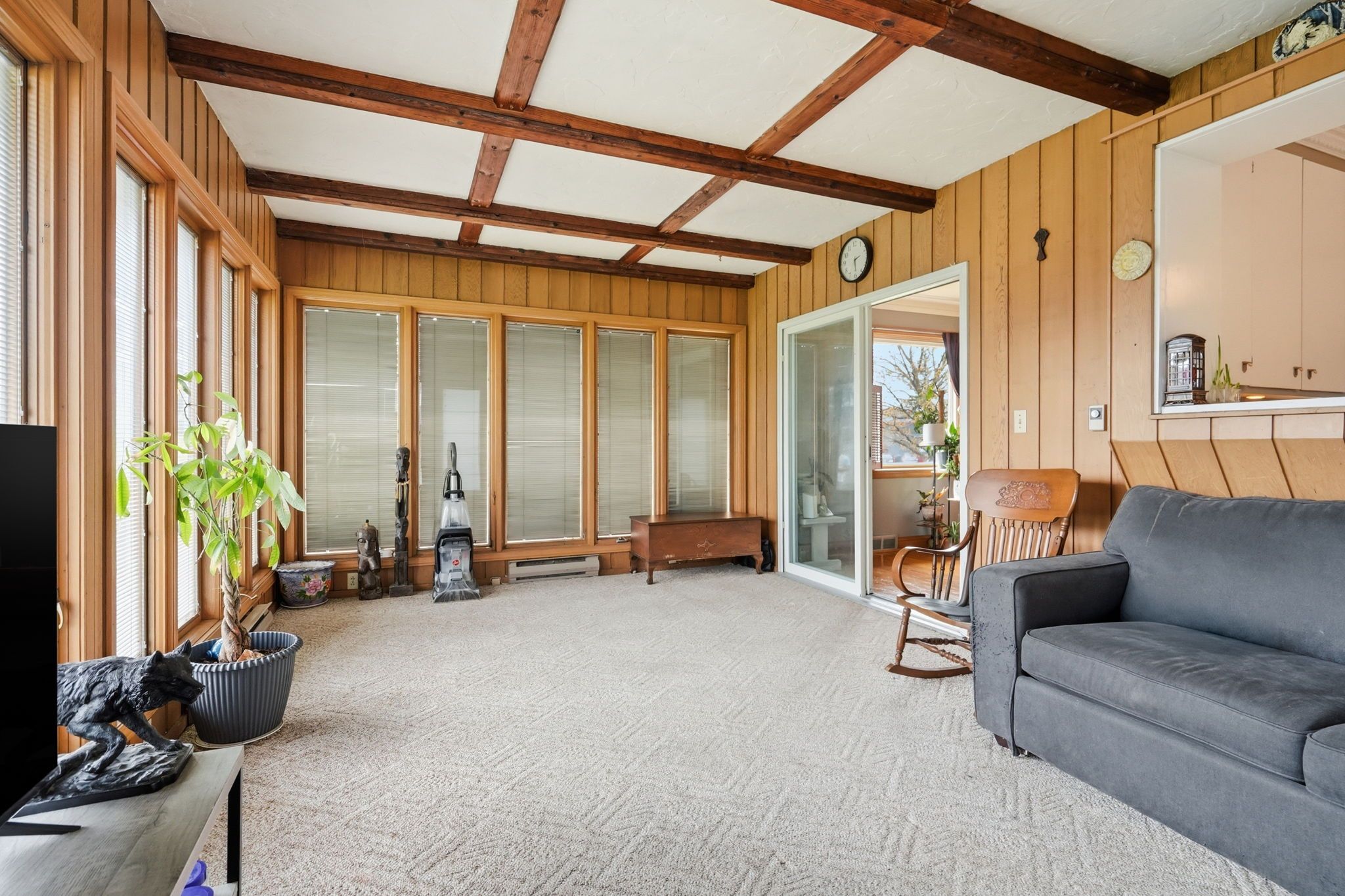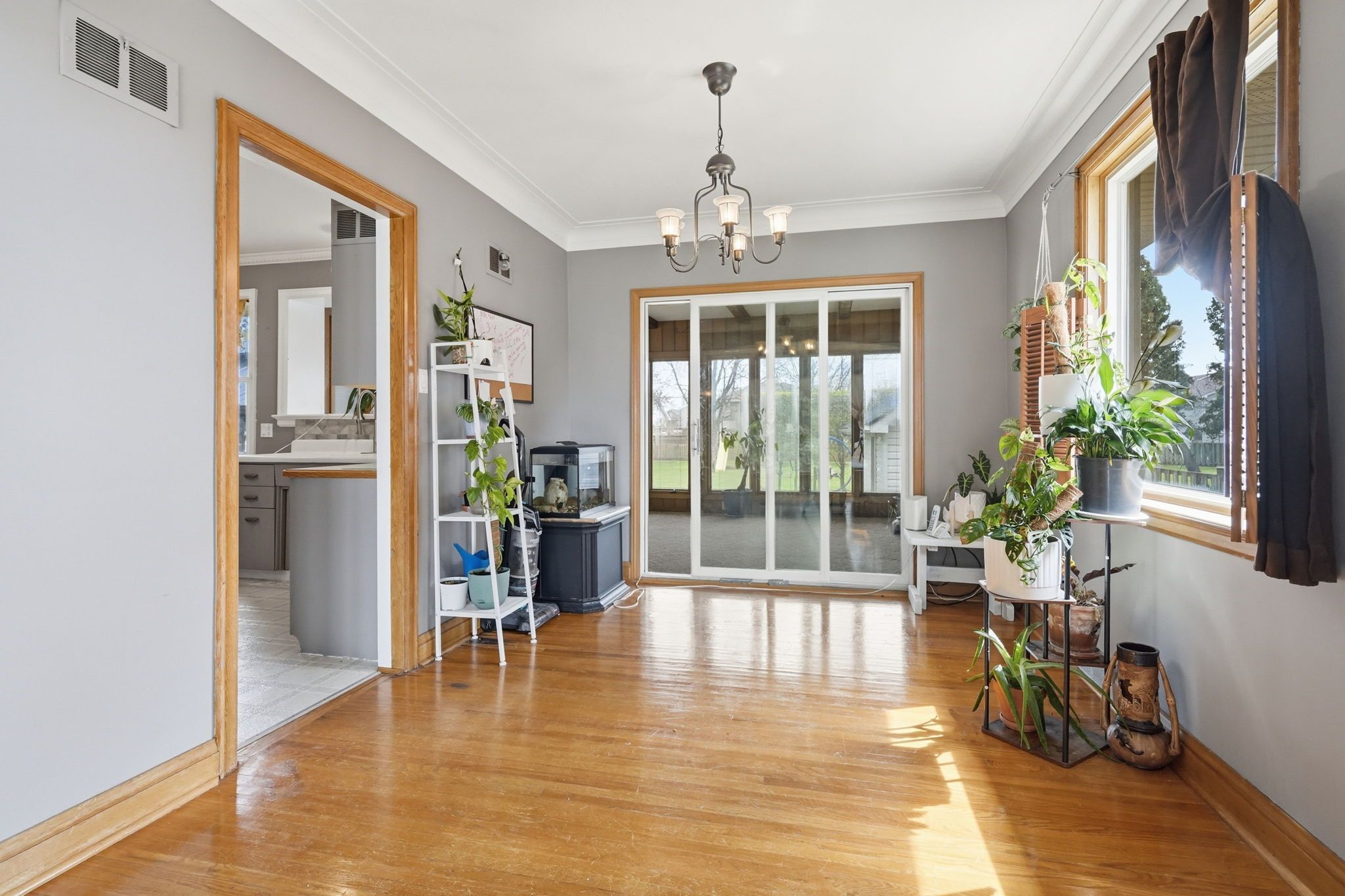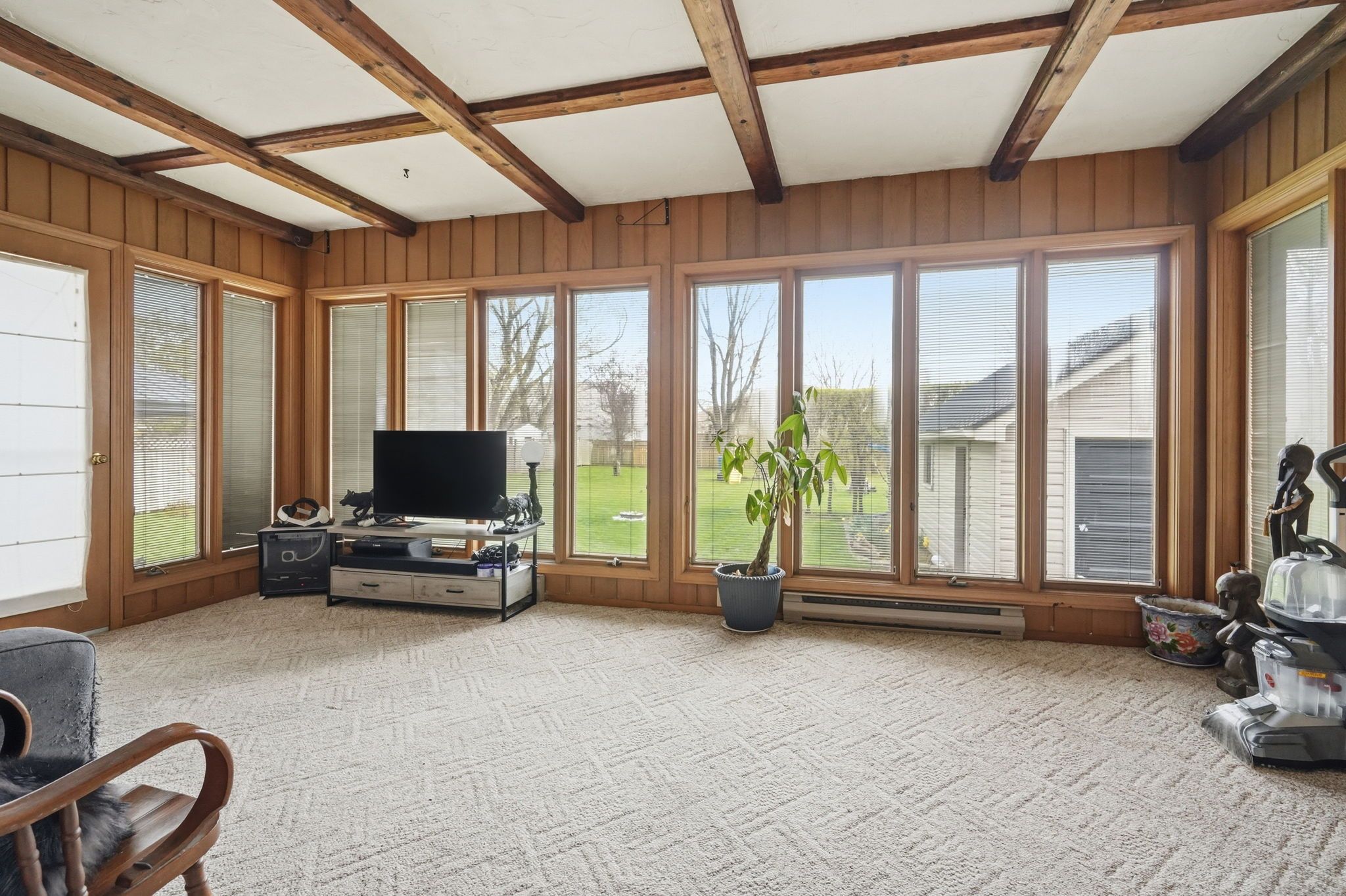 • All-season sunroom overlooking a serene backyard.