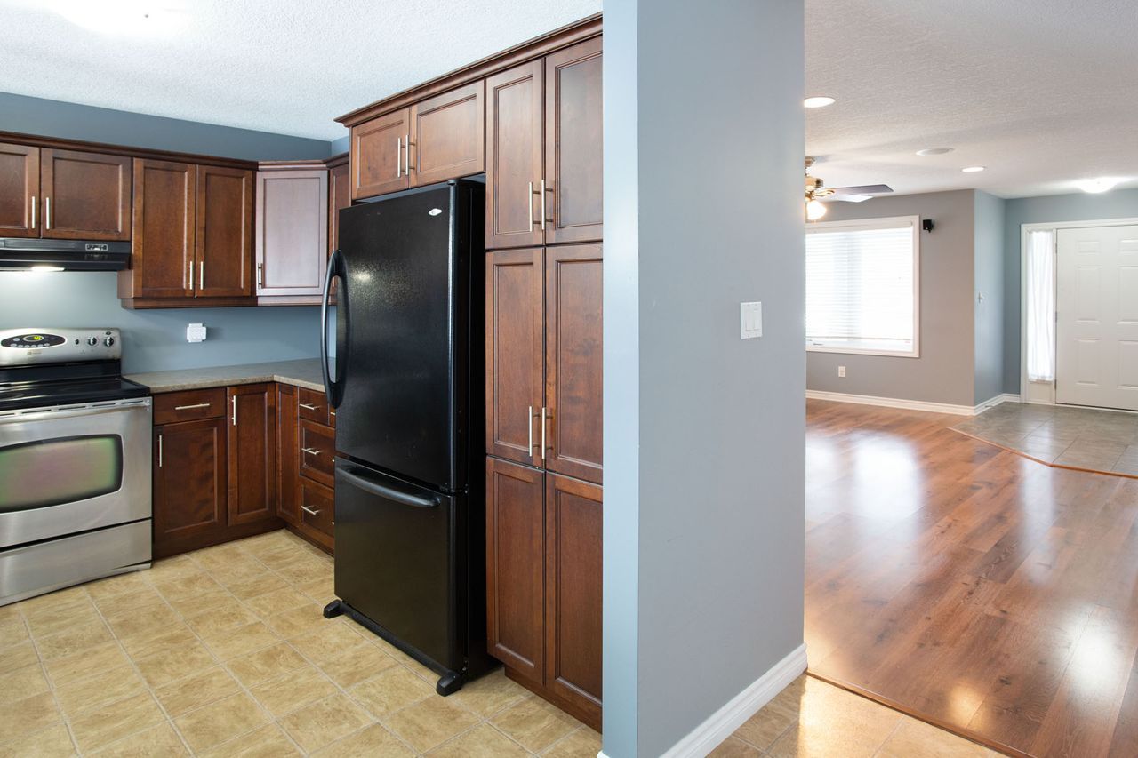 Don't miss!!!! Finished walkout basement!!! 2 kitchens!! Quick possession possible! All brick bungalow with 1. 5 car attached garage. Well maintained, just move in & enjoy! Bright living room with large window, kitchen with lots of cabinets, eating area with door to large raised deck with great view, master with ensuite privilege featuring a soaker tub & separate stand up shower, main floor laundry, inside entry to garage. The lower features a finished walkout basement with separate 1 bedroom + den inlaw suite/apartment. Lower level is bright & features a kitchen open to living room with door to large covered patio, second bathroom features an oversized stand up shower. Lower also features a second laundry hook up & lots of storage. Seven (7) newer appliances included. Exterior is all brick low maintenance, vinyl windows, double driveway & covered front porch. Priced to sell quickly & quick possession possible. High demand location close to all amenities. All measurements approximate.