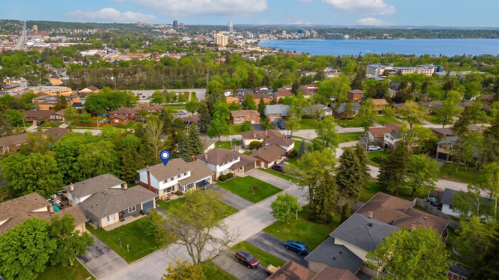 Mature allandale heights setting with kempenfelt bay views, a walkout basement, & in-law capability! Kempenfelt bay views from various rooms, a covered deck off the kitchen, and a walkout basement with in-law capability give this allandale heights home far more to offer than the average family home. Set on a mature 59 x 120 ft lot in an established neighbourhood within walking distance to schools and the recreation centre, this address also keeps highway 400, the allandale go station, barrie's waterfront, trails, parks, and beaches within close reach. Large windows draw natural light through the main level, where a fully enclosed front porch works beautifully as a mudroom, formal living and dining rooms bring a more traditional layout, and the separate family room is anchored by a gas fireplace with a shiplap surround and wood mantel. The kitchen carries its own charm with white cabinetry topped with crown moulding, stainless steel appliances, a subway tile backsplash, and a breakfast area with a sliding glass walkout to the covered elevated deck. Upstairs, four great-sized bedrooms include a primary bedroom with a walk-in closet and a 2-piece ensuite. The walkout basement adds another layer of possibility with its own kitchen, rec room, bedroom, full bath, and patio access, opening the door to extended family living or separate living quarters. A heated and insulated garage with inside entry, its own electrical panel, and mezzanine storage adds another layer of function, while updated gfi outlets, a sump pump, upgraded eavestroughs with leaf guards, a full home alarm system, and a blink camera setup round out this #hometostay!