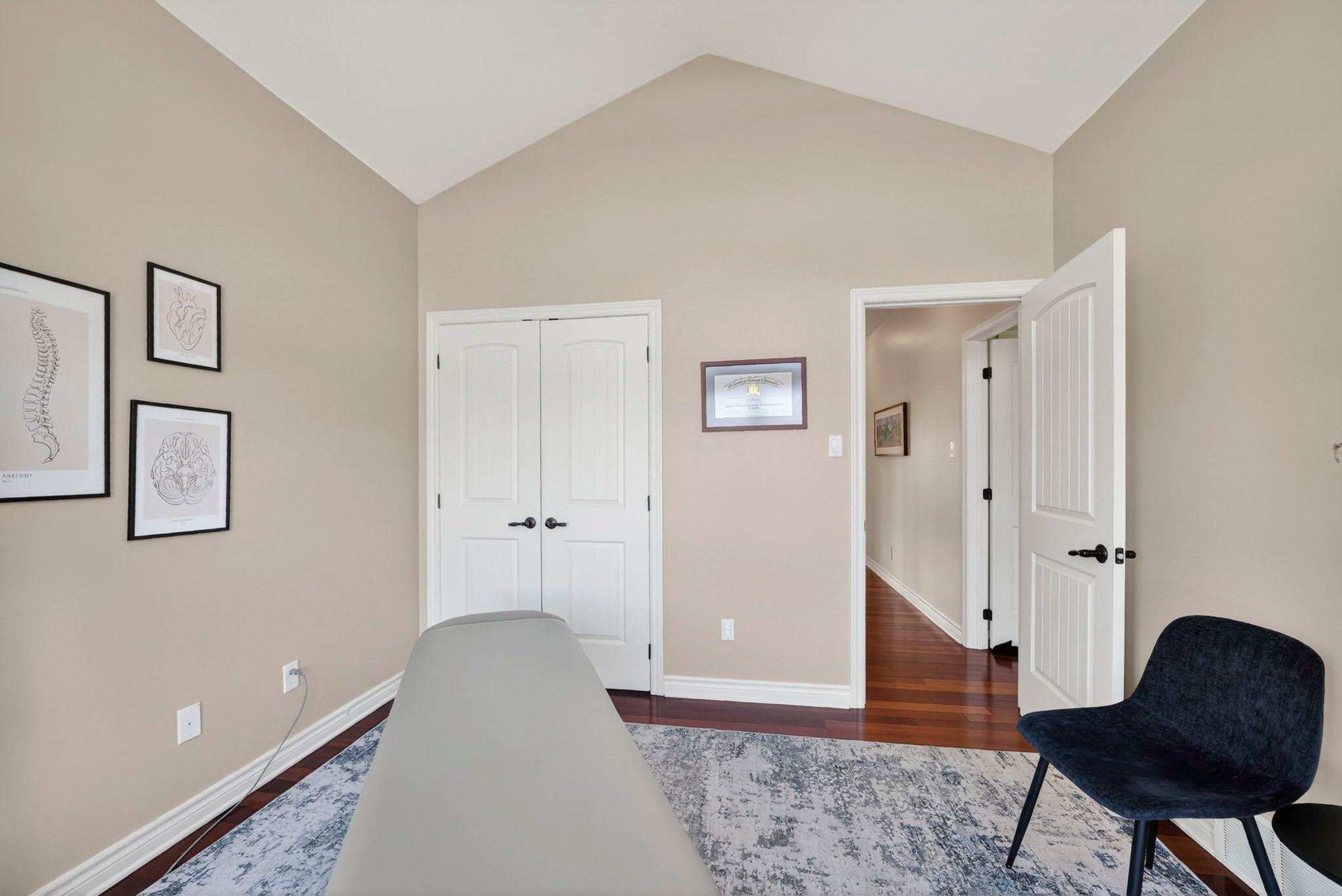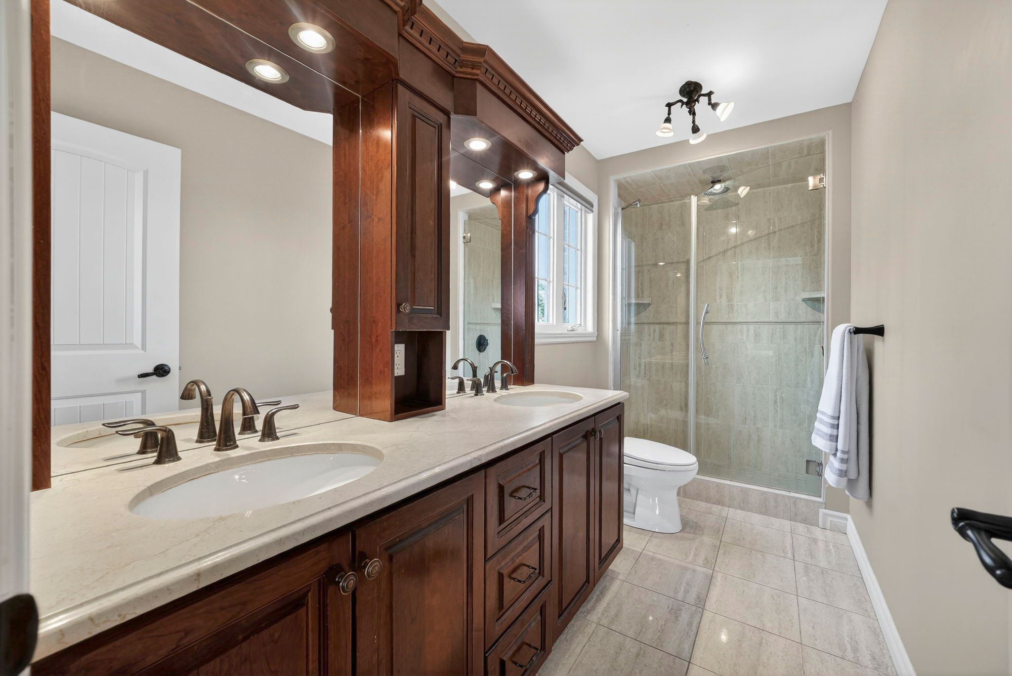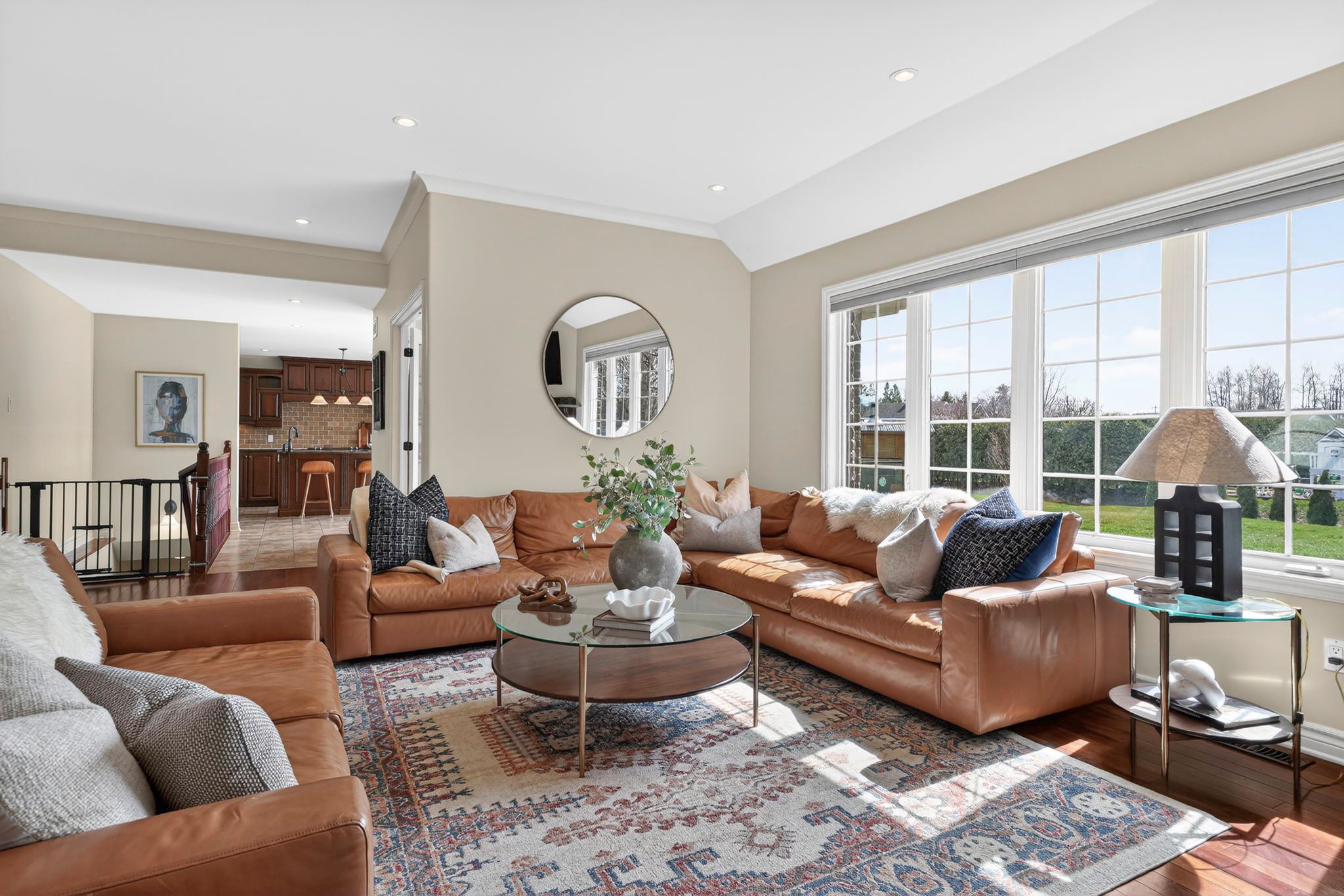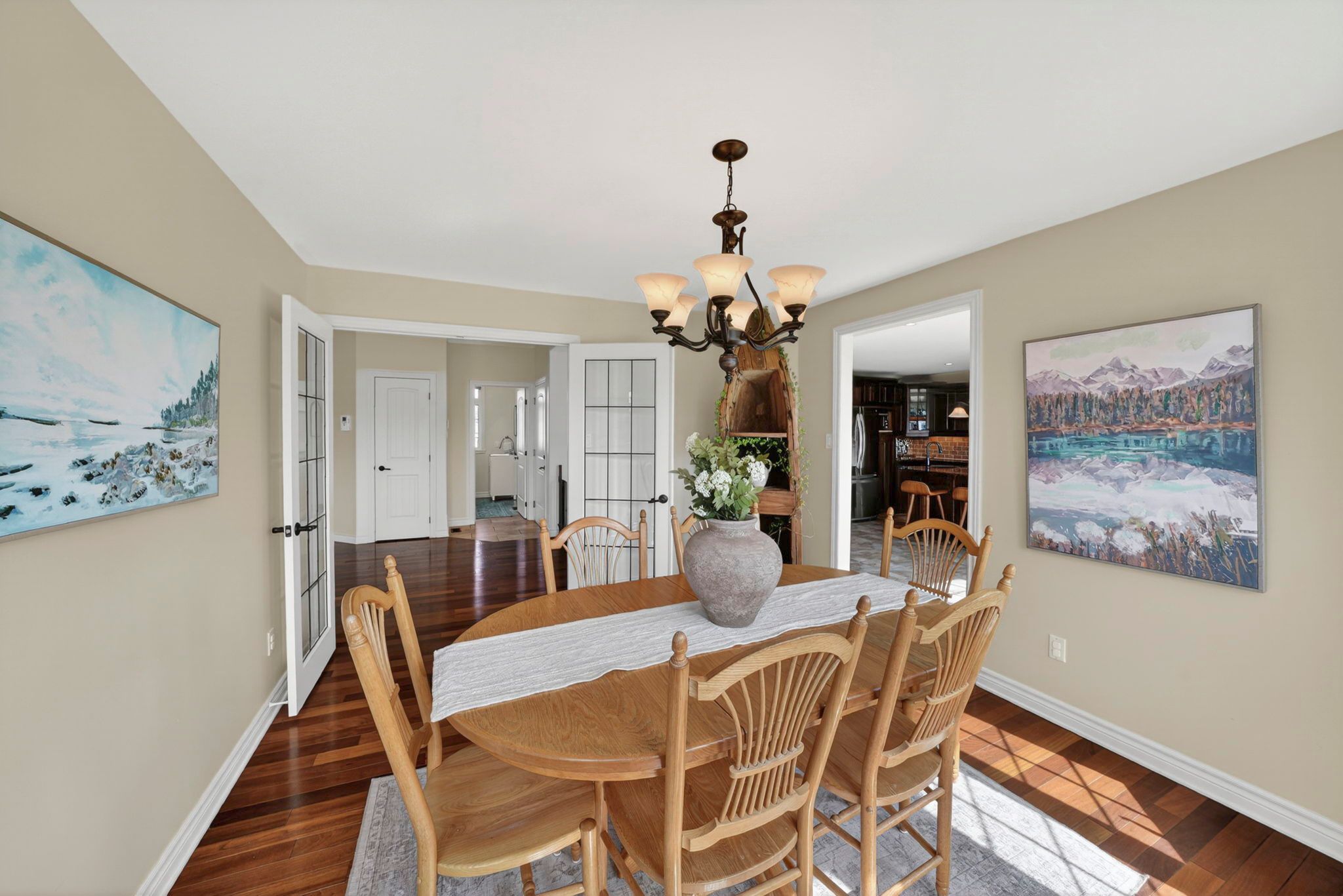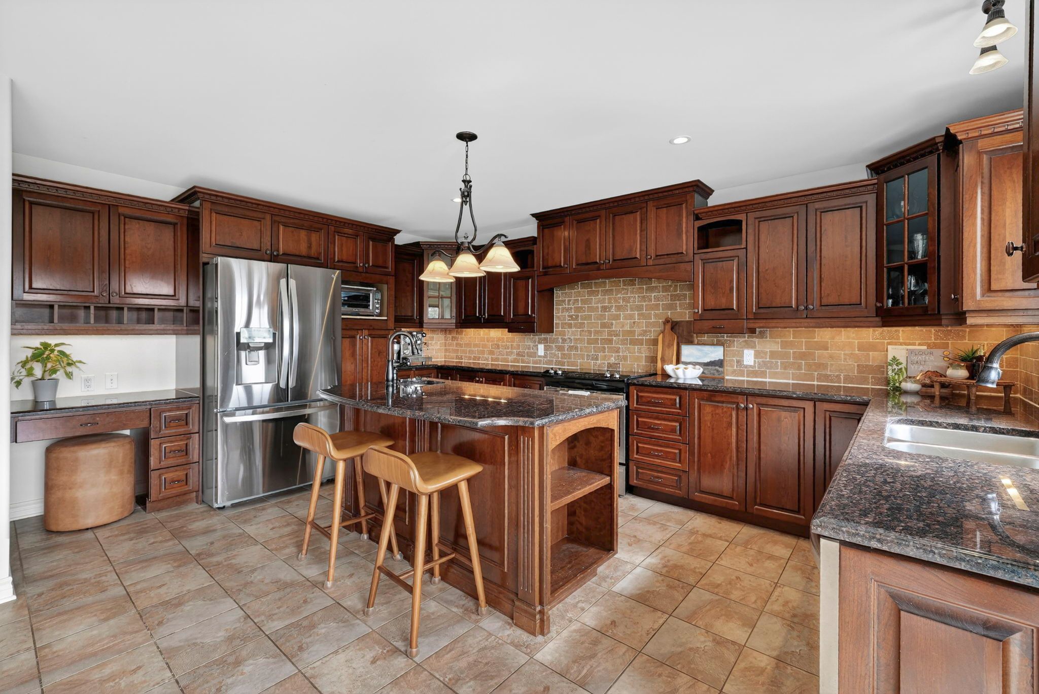 • Gourmet kitchen with granite countertops, hardwood cabinetry, and modern appliances.