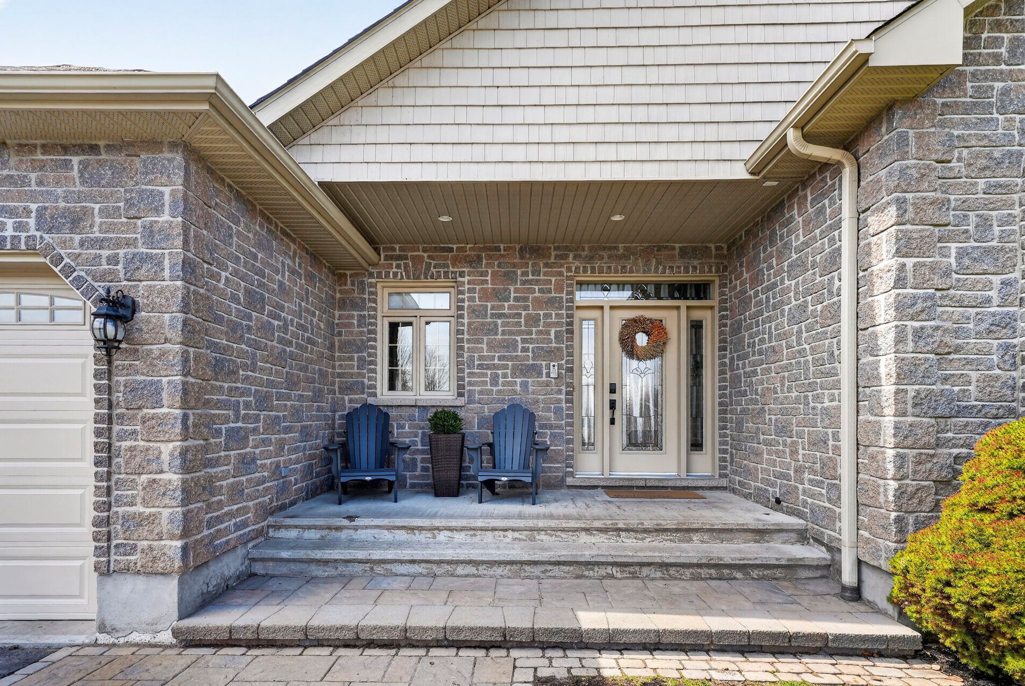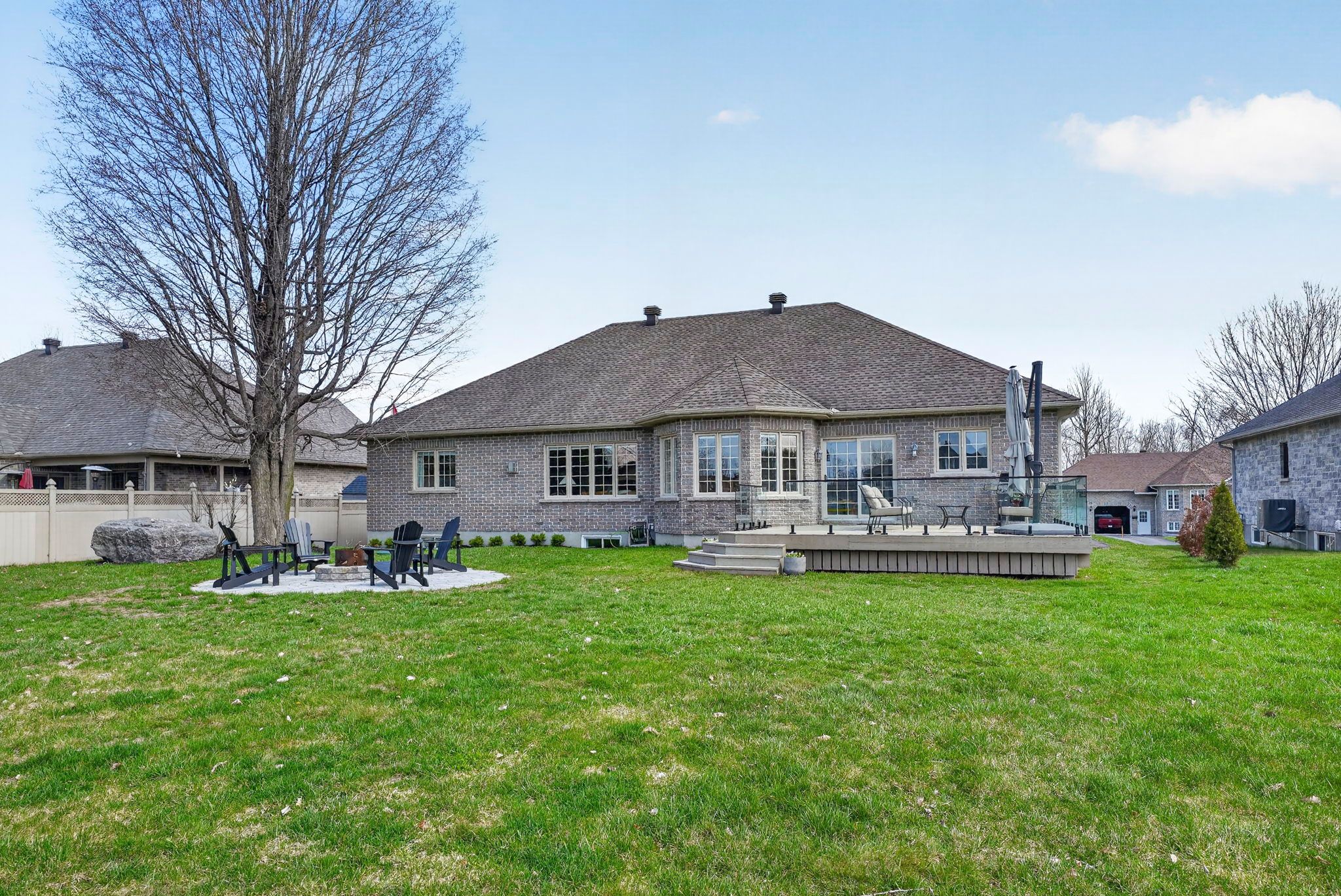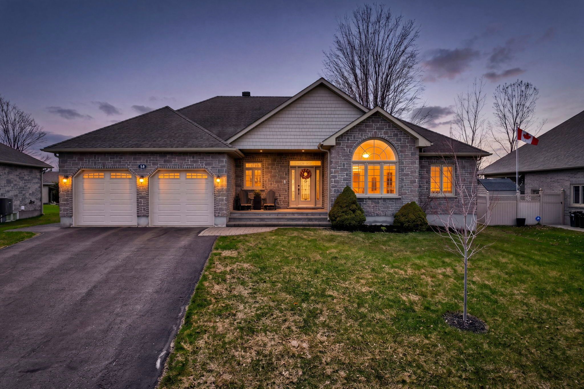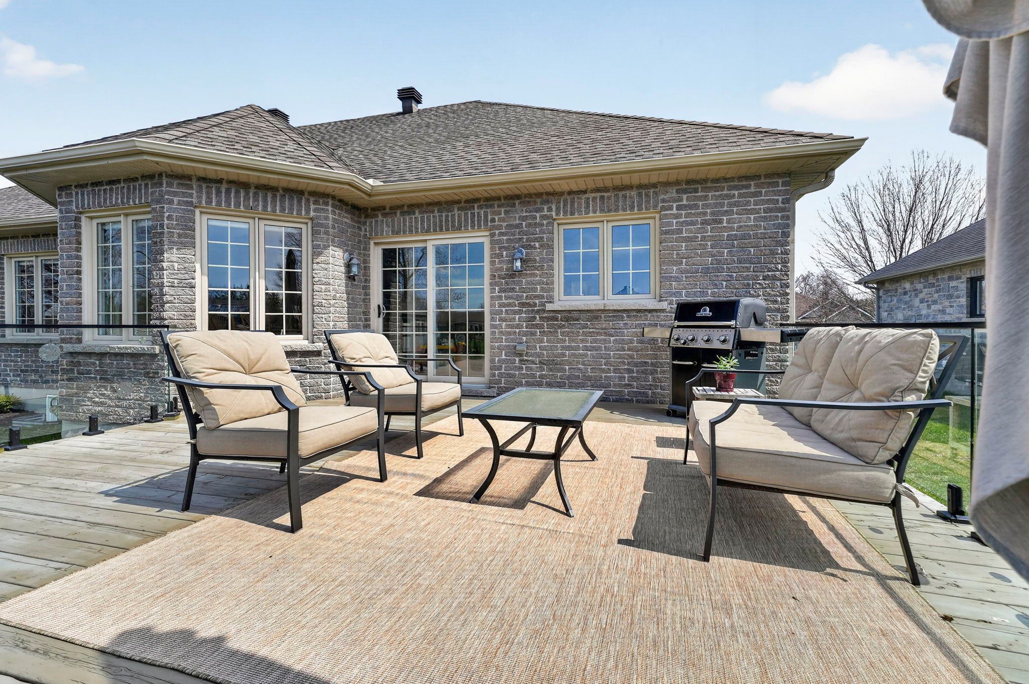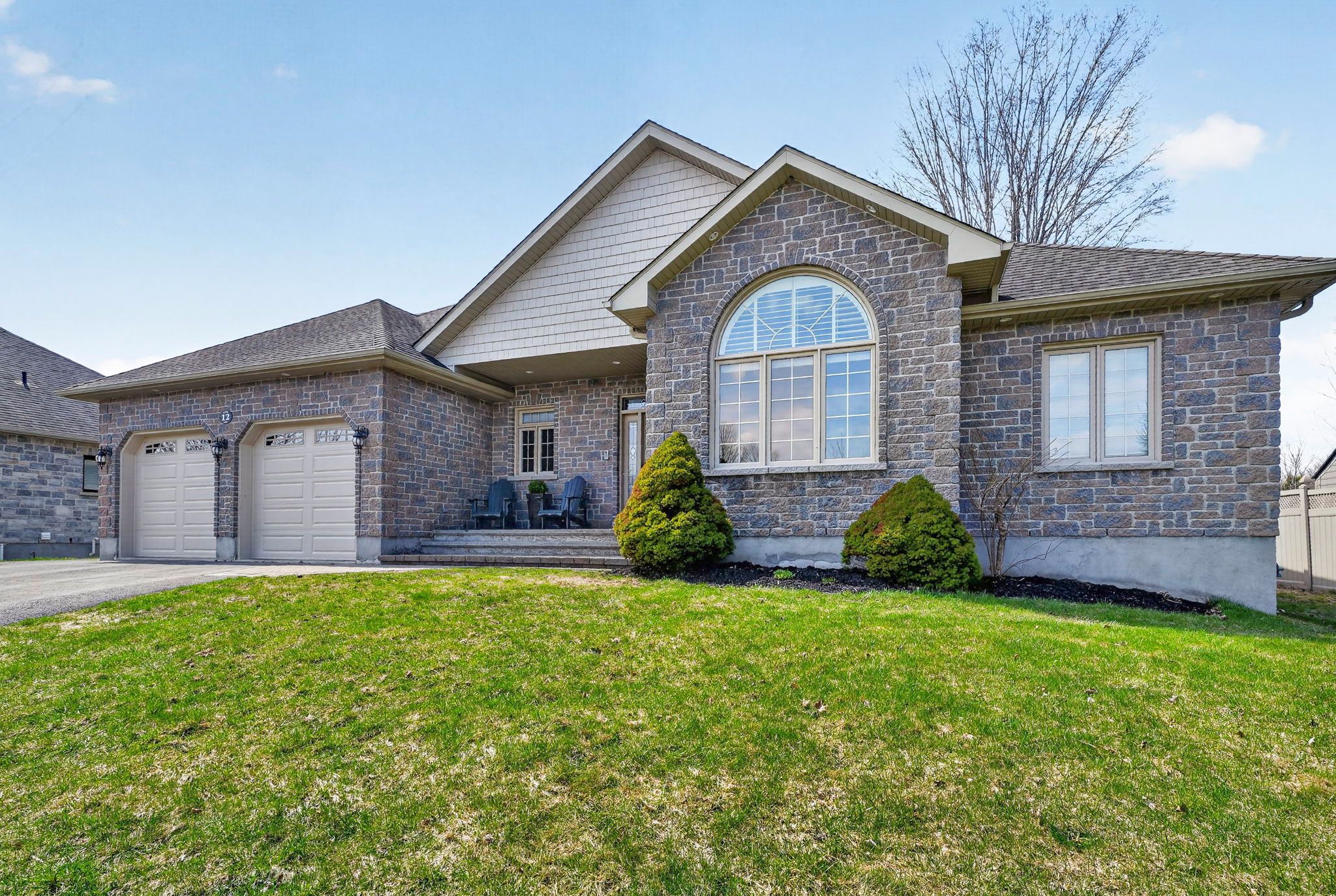 An exceptional opportunity to own an award winning brownsdale built executive stone bungalow, nestled on a quiet, welcoming street just mere steps from the st. Lawrence river & avonmore beach -blending nature & community. From the moment you arrive, the pride of ownership is undeniable. A spacious, thoughtfully designed foyer welcomes you into an expansive, sun filled main level offering over 1,800 sq. Ft. Of beautifully finished living space. Elegant french doors open to interiors rich in warmth and sophistication, featuring brazilian cherry hardwood floors, pristine ceramic tile & rich finishes. The living room is inviting & refined, anchored by a gas fireplace & complemented by pot lights. The dining room is warm & bright & perfectly suited for hosting. At the heart of the home, the kitchen truly stands out, showcasing solid hardwood cabinetry, under-mount lighting, granite countertops and stainless steel appliances, plus a convenient built-in workstation all centred around a grand island with seating and a prep sink. Step outside to a stunning upgraded 20x20 deck with sleek glass railings (2024) and a gas connection -great for summer evenings. The expansive, pool sized backyard is thoughtfully designed with a fire pit (2024), a large 16x10 shed (2025) and an irrigation system in the front and backyard. The main level also features a powder room/laundry space (2026), a serene primary suite with a walk-in closet & spa like ensuite with double sinks and glass shower. Two additional bedrooms -one with soaring ceilings & cellular blinds (2024) complete the main floor. The lower level offers a finished guest room, 3 piece bath and a massive recreation space with endless potential. Windows (2020-2025), double car garage doors & remotes(2025), owned hot water tank (2023) and meticulous upkeep throughout -this home is presented in exceptional condition. Minutes to cornwall -this is a rare opportunity to own a home that truly offers it all!