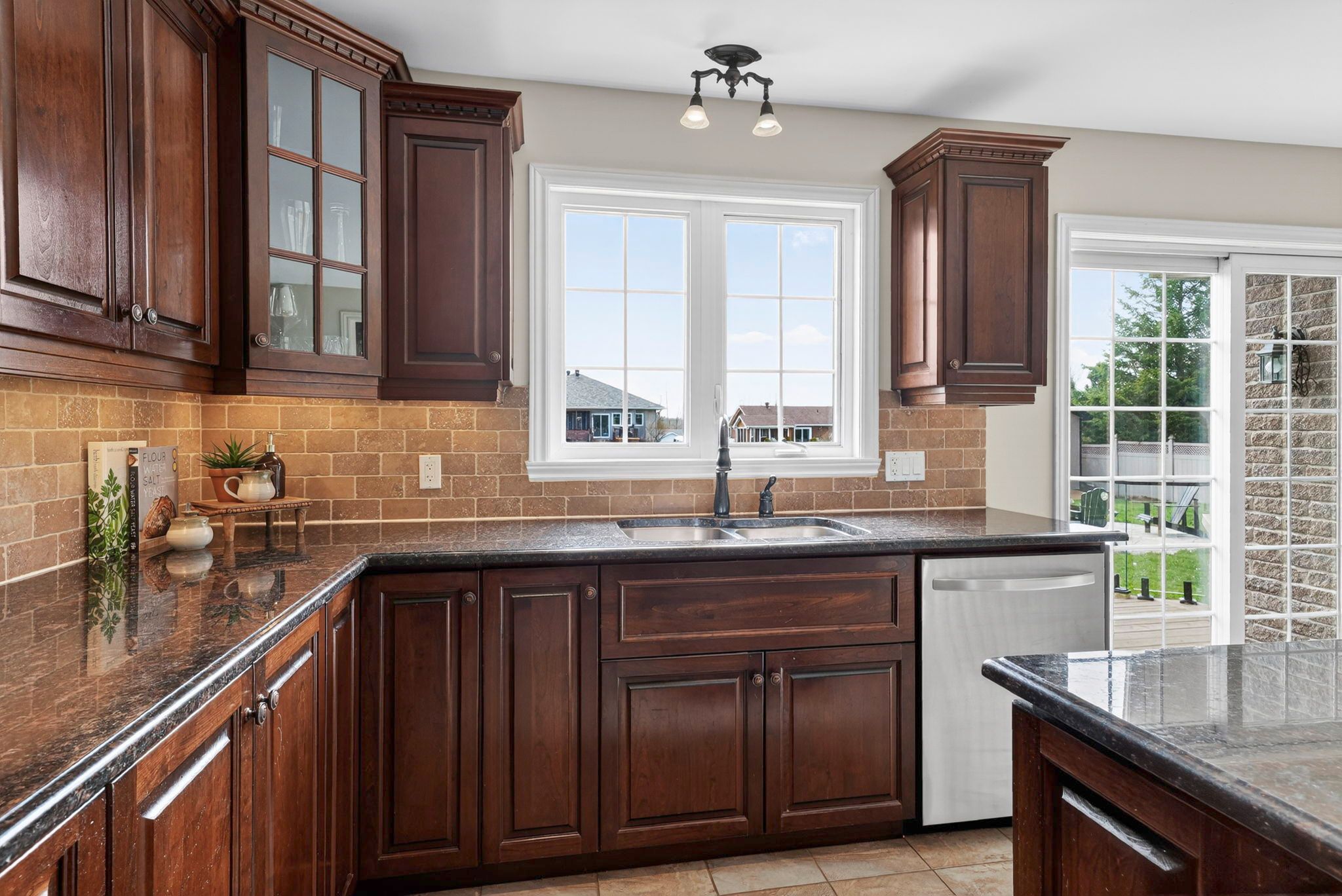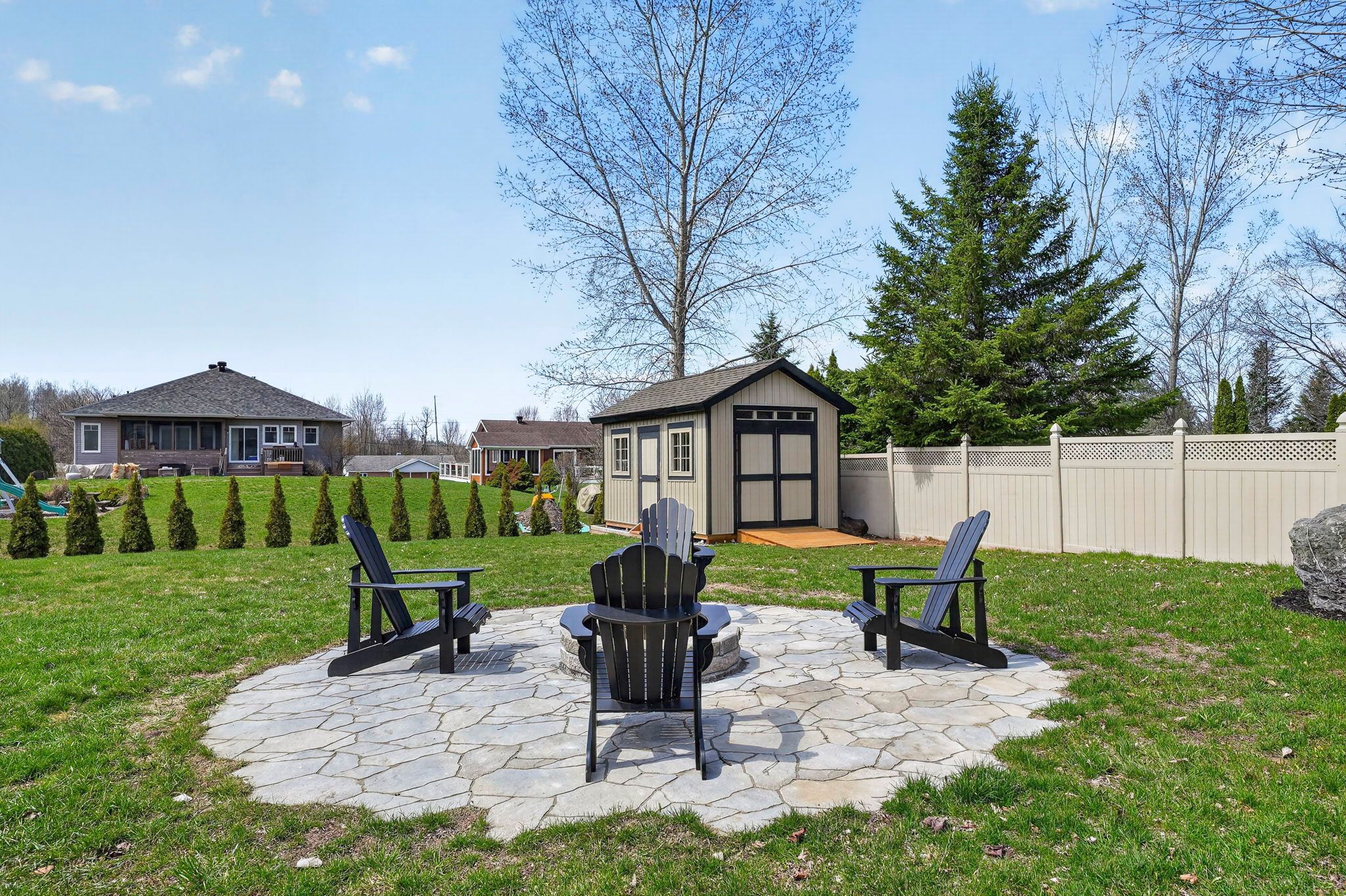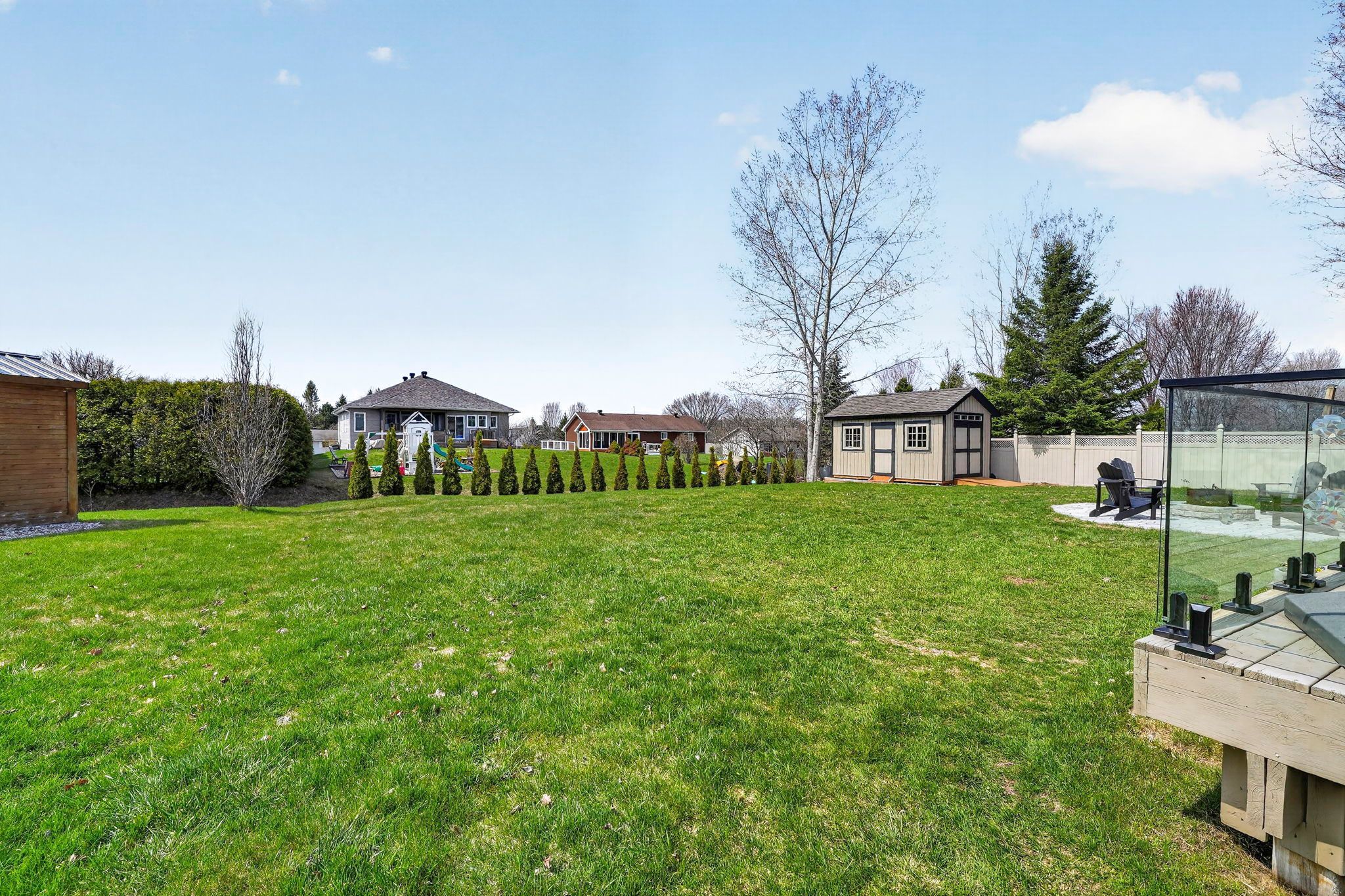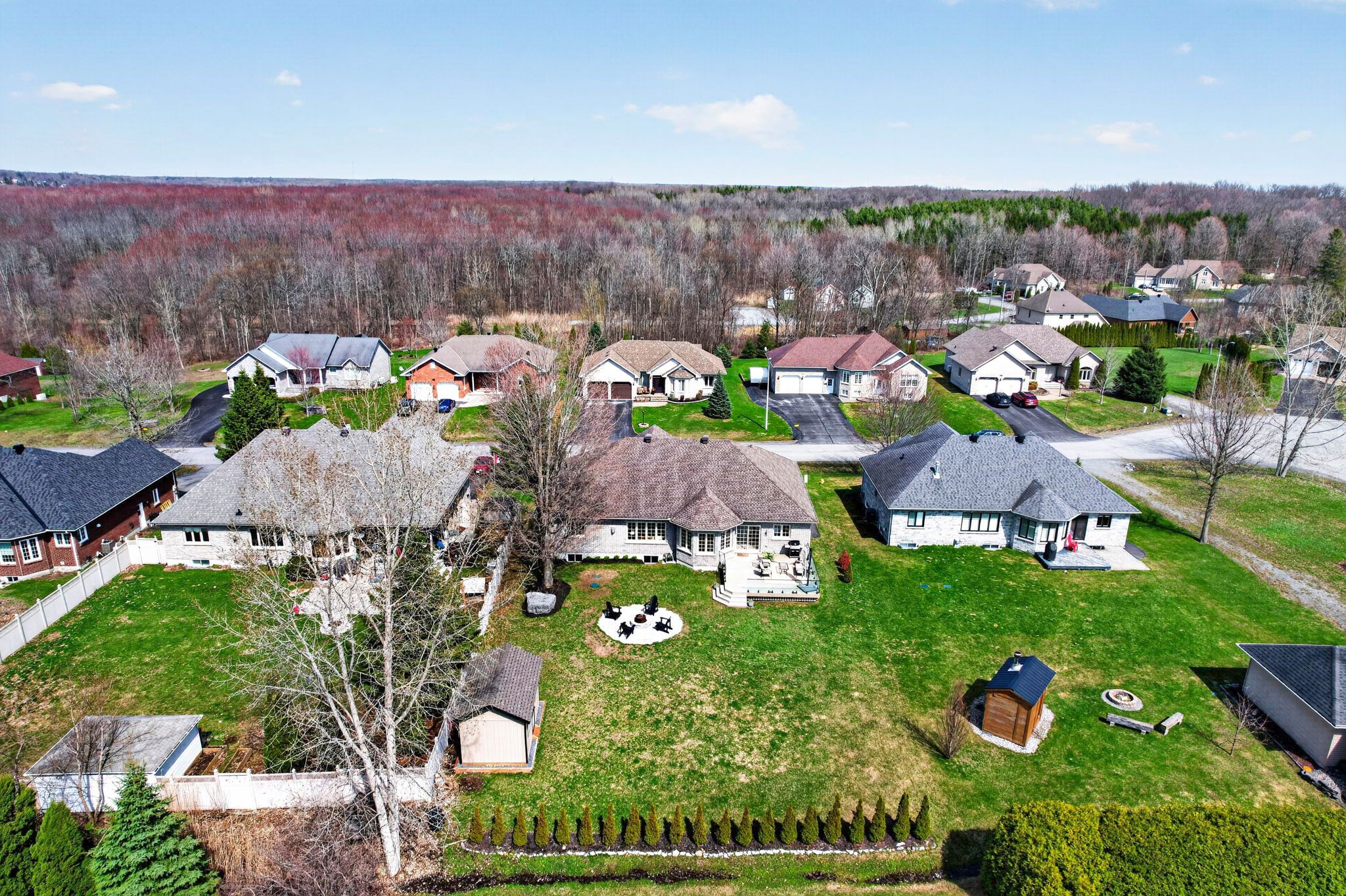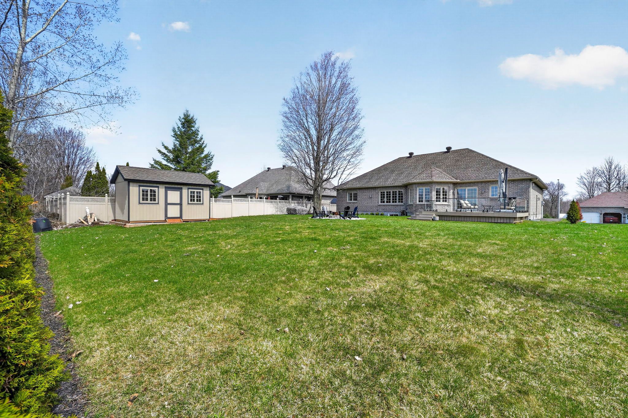 An exceptional opportunity to own an award winning brownsdale built executive stone bungalow, nestled on a quiet, welcoming street just mere steps from the st. Lawrence river & avonmore beach -blending nature & community. From the moment you arrive, the pride of ownership is undeniable. A spacious, thoughtfully designed foyer welcomes you into an expansive, sun filled main level offering over 1,800 sq. Ft. Of beautifully finished living space. Elegant french doors open to interiors rich in warmth and sophistication, featuring brazilian cherry hardwood floors, pristine ceramic tile & rich finishes. The living room is inviting & refined, anchored by a gas fireplace & complemented by pot lights. The dining room is warm & bright & perfectly suited for hosting. At the heart of the home, the kitchen truly stands out, showcasing solid hardwood cabinetry, under-mount lighting, granite countertops and stainless steel appliances, plus a convenient built-in workstation all centred around a grand island with seating and a prep sink. Step outside to a stunning upgraded 20x20 deck with sleek glass railings (2024) and a gas connection -great for summer evenings. The expansive, pool sized backyard is thoughtfully designed with a fire pit (2024), a large 16x10 shed (2025) and an irrigation system in the front and backyard. The main level also features a powder room/laundry space (2026), a serene primary suite with a walk-in closet & spa like ensuite with double sinks and glass shower. Two additional bedrooms -one with soaring ceilings & cellular blinds (2024) complete the main floor. The lower level offers a finished guest room, 3 piece bath and a massive recreation space with endless potential. Windows (2020-2025), double car garage doors & remotes(2025), owned hot water tank (2023) and meticulous upkeep throughout -this home is presented in exceptional condition. Minutes to cornwall -this is a rare opportunity to own a home that truly offers it all!