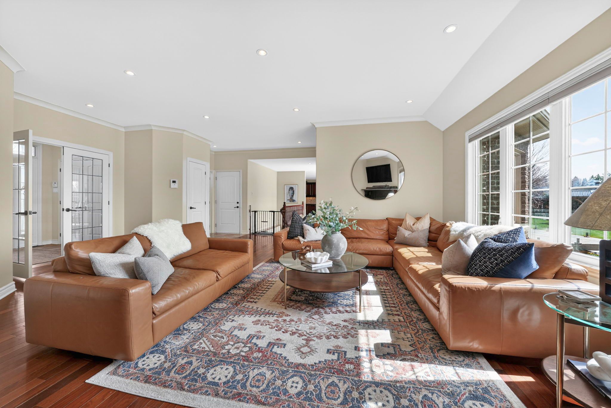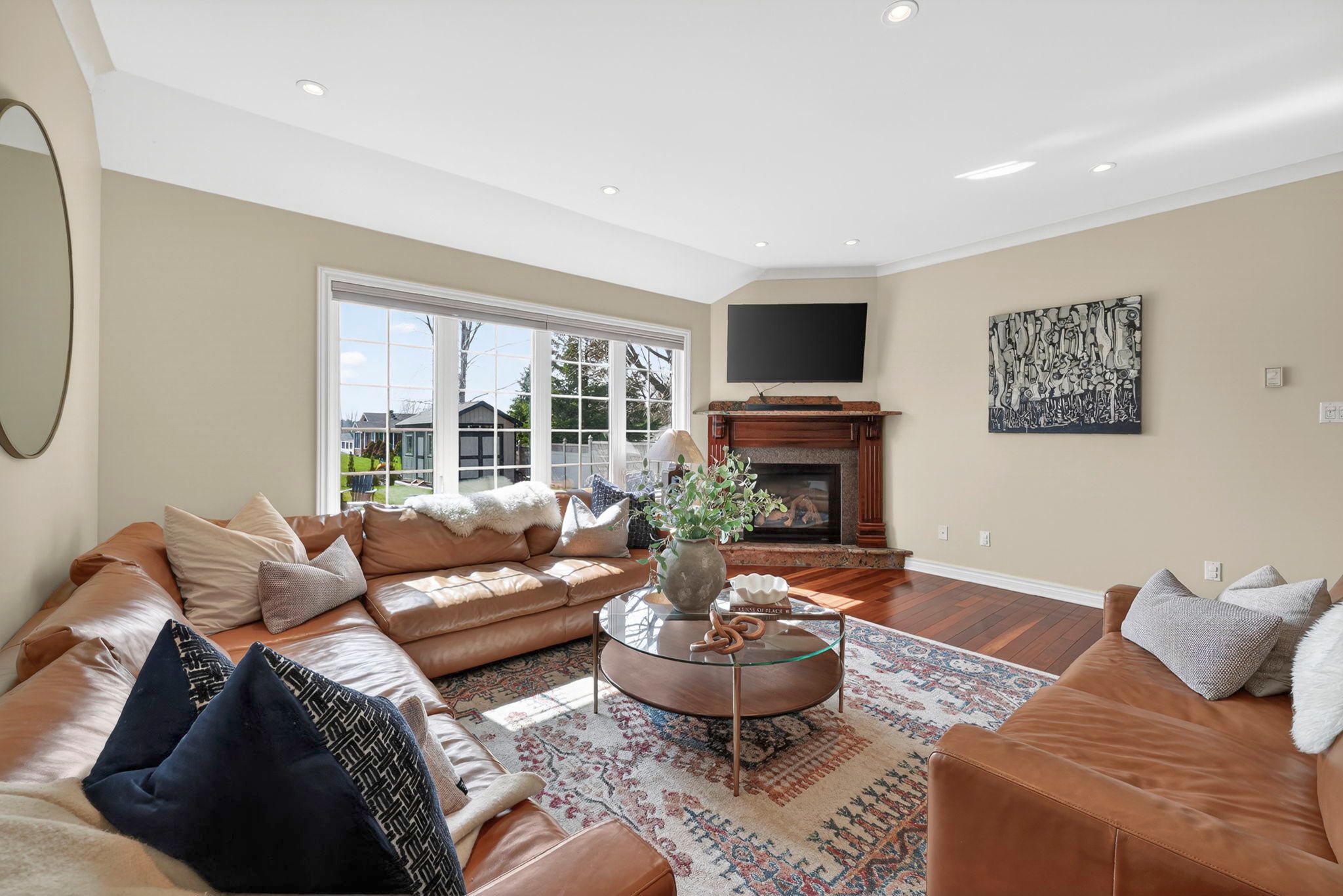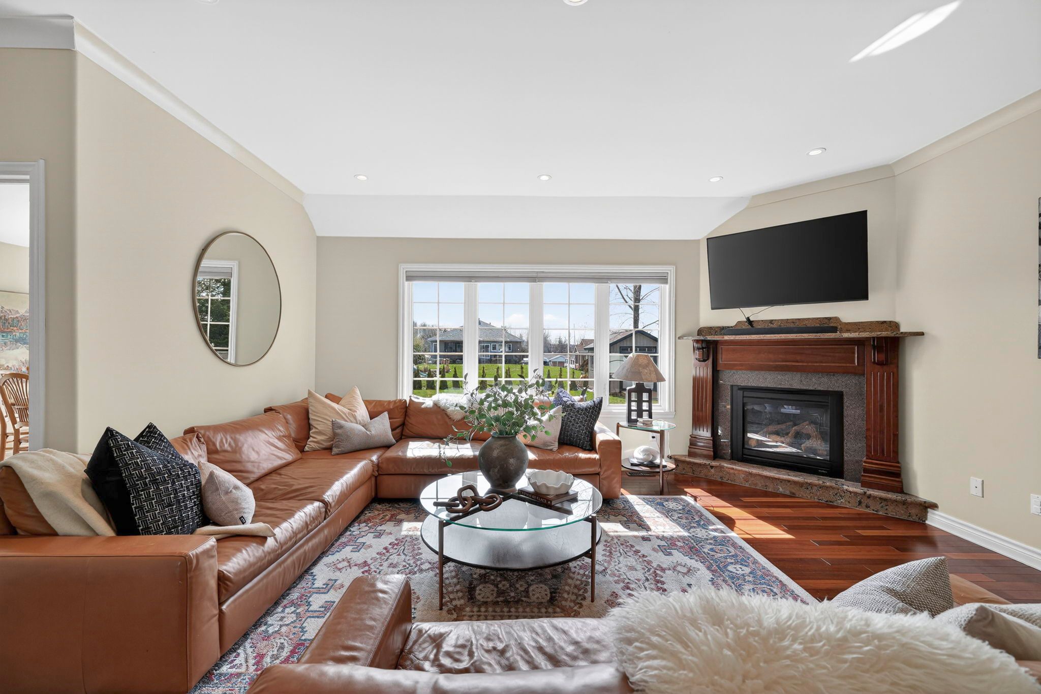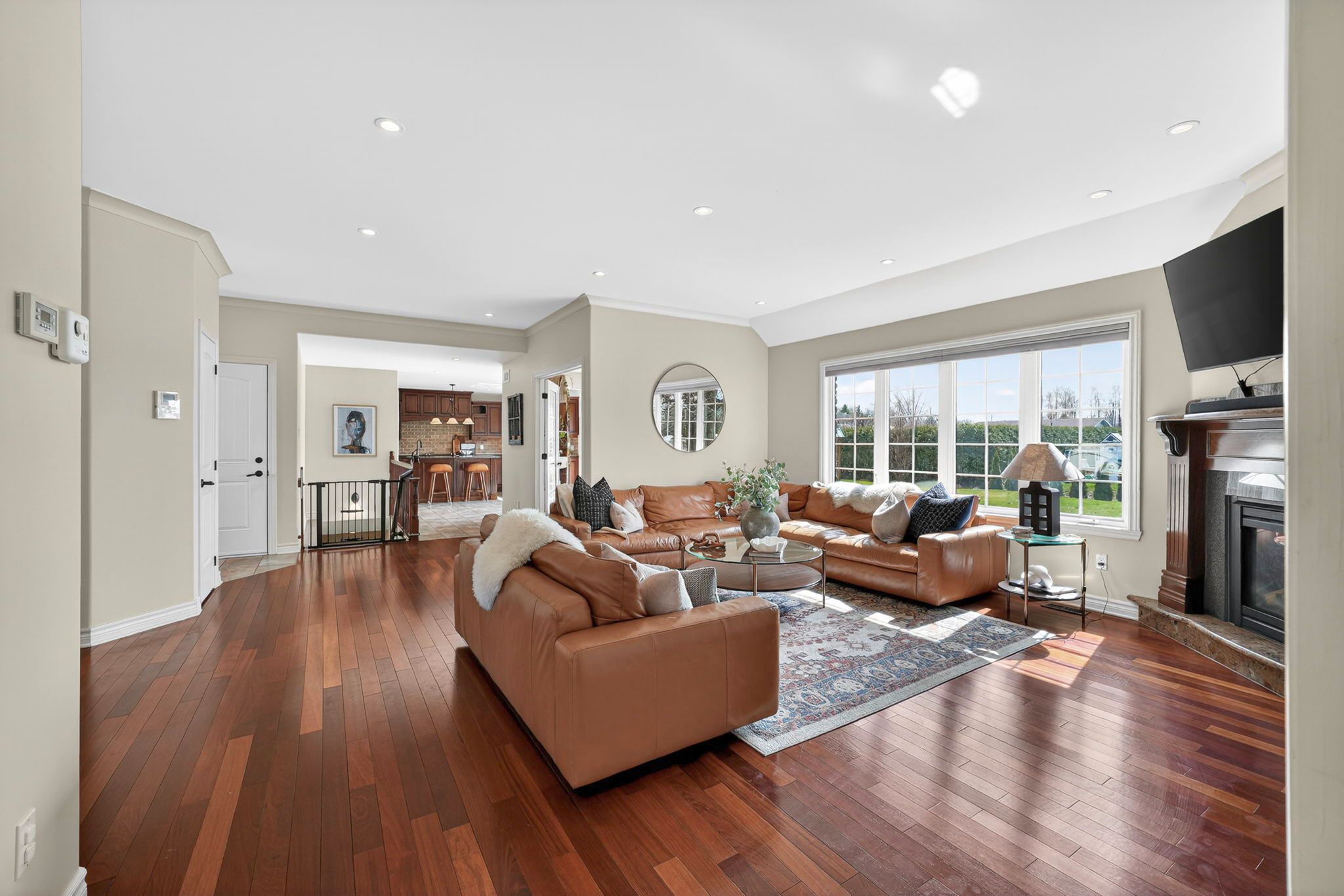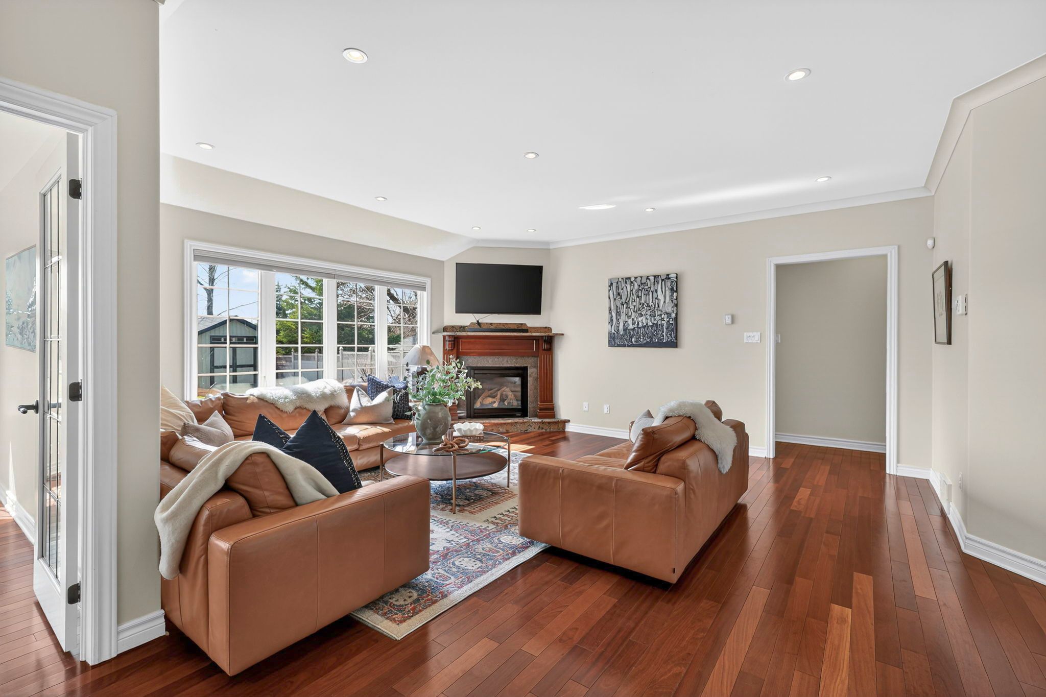 An exceptional opportunity to own an award winning brownsdale built executive stone bungalow, nestled on a quiet, welcoming street just mere steps from the st. Lawrence river & avonmore beach -blending nature & community. From the moment you arrive, the pride of ownership is undeniable. A spacious, thoughtfully designed foyer welcomes you into an expansive, sun filled main level offering over 1,800 sq. Ft. Of beautifully finished living space. Elegant french doors open to interiors rich in warmth and sophistication, featuring brazilian cherry hardwood floors, pristine ceramic tile & rich finishes. The living room is inviting & refined, anchored by a gas fireplace & complemented by pot lights. The dining room is warm & bright & perfectly suited for hosting. At the heart of the home, the kitchen truly stands out, showcasing solid hardwood cabinetry, under-mount lighting, granite countertops and stainless steel appliances, plus a convenient built-in workstation all centred around a grand island with seating and a prep sink. Step outside to a stunning upgraded 20x20 deck with sleek glass railings (2024) and a gas connection -great for summer evenings. The expansive, pool sized backyard is thoughtfully designed with a fire pit (2024), a large 16x10 shed (2025) and an irrigation system in the front and backyard. The main level also features a powder room/laundry space (2026), a serene primary suite with a walk-in closet & spa like ensuite with double sinks and glass shower. Two additional bedrooms -one with soaring ceilings & cellular blinds (2024) complete the main floor. The lower level offers a finished guest room, 3 piece bath and a massive recreation space with endless potential. Windows (2020-2025), double car garage doors & remotes(2025), owned hot water tank (2023) and meticulous upkeep throughout -this home is presented in exceptional condition. Minutes to cornwall -this is a rare opportunity to own a home that truly offers it all!