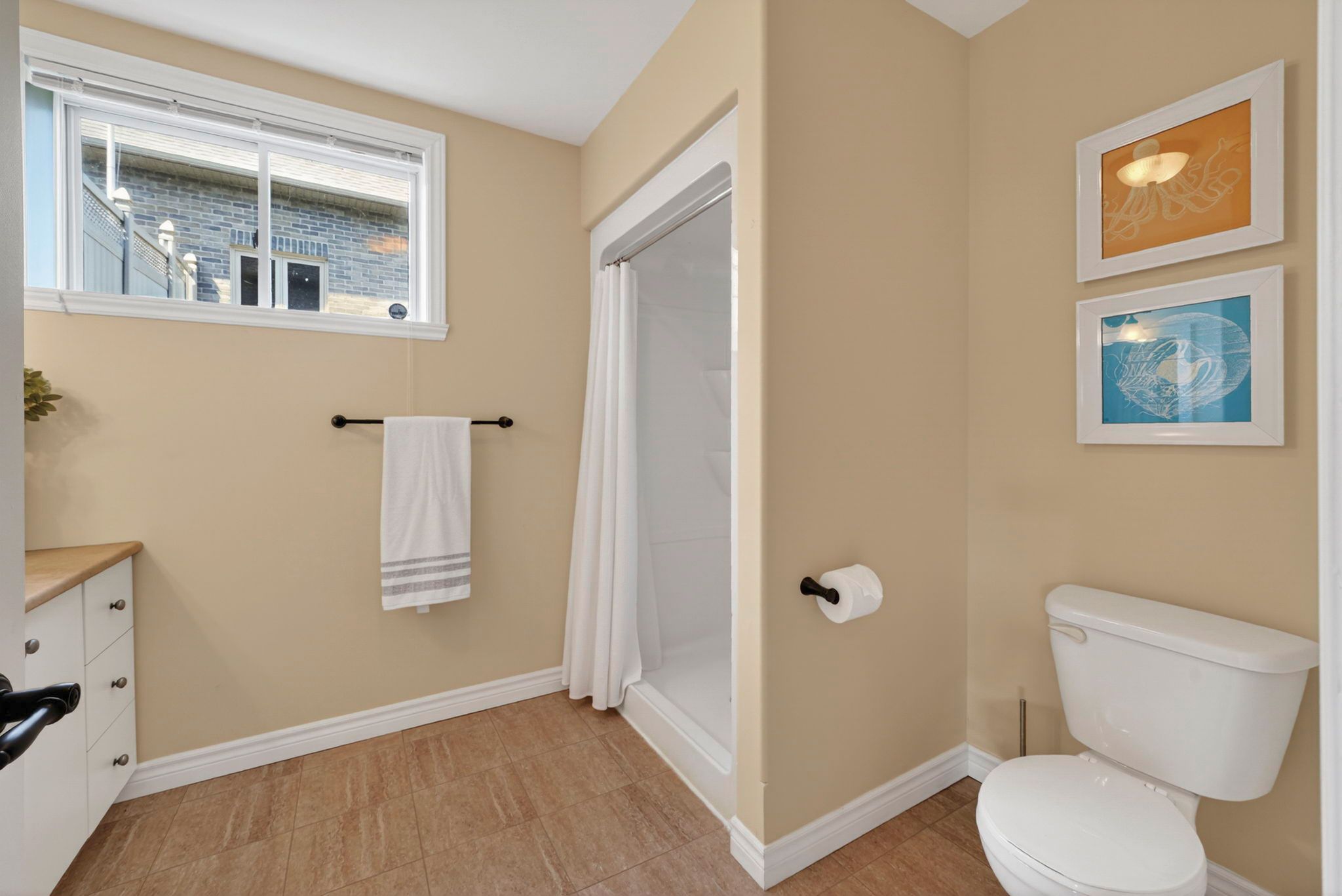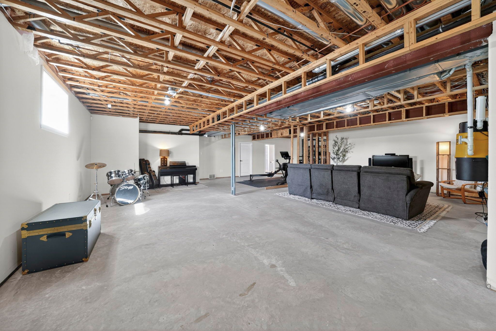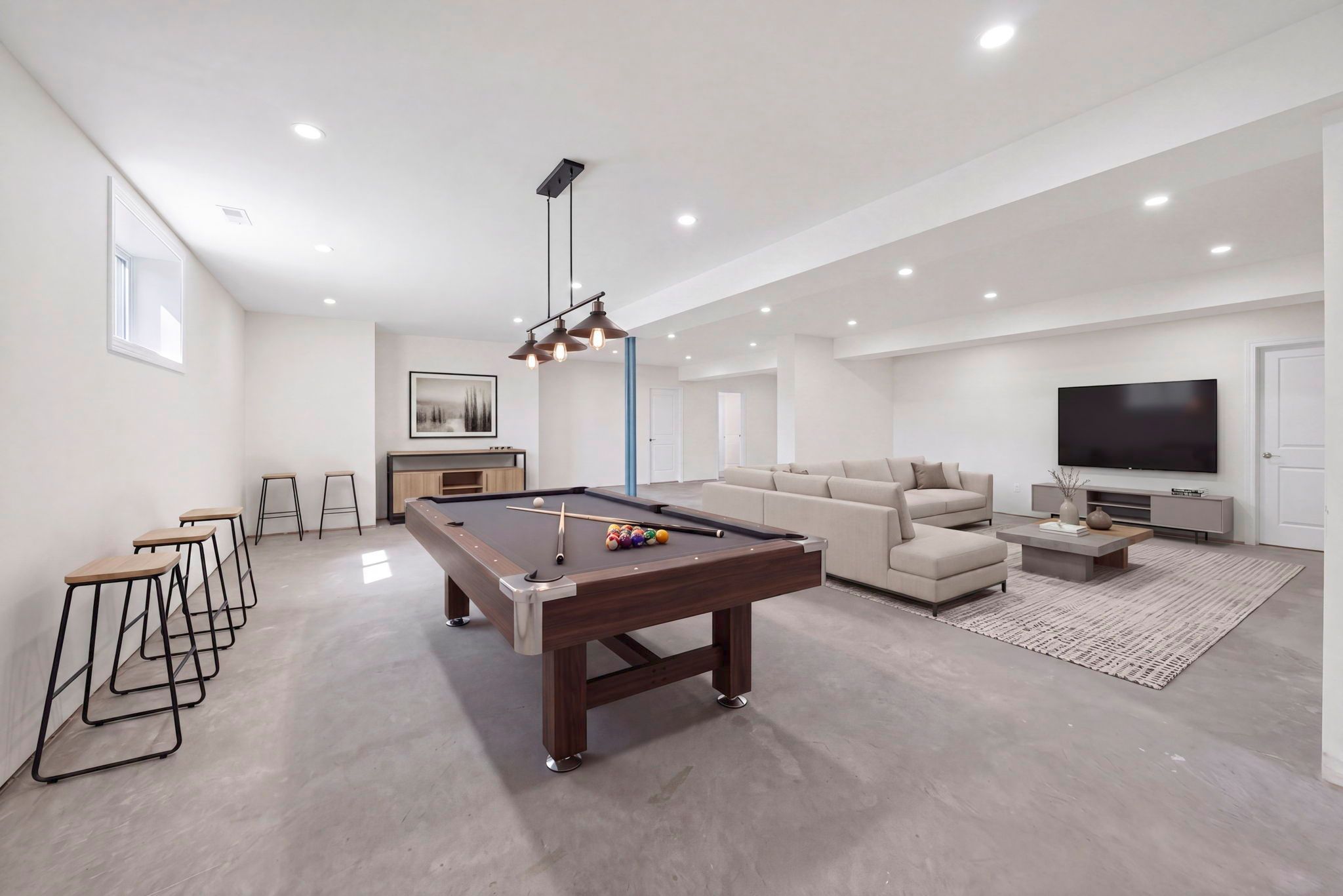 • Lower level includes guest room, bath, and large recreation space.