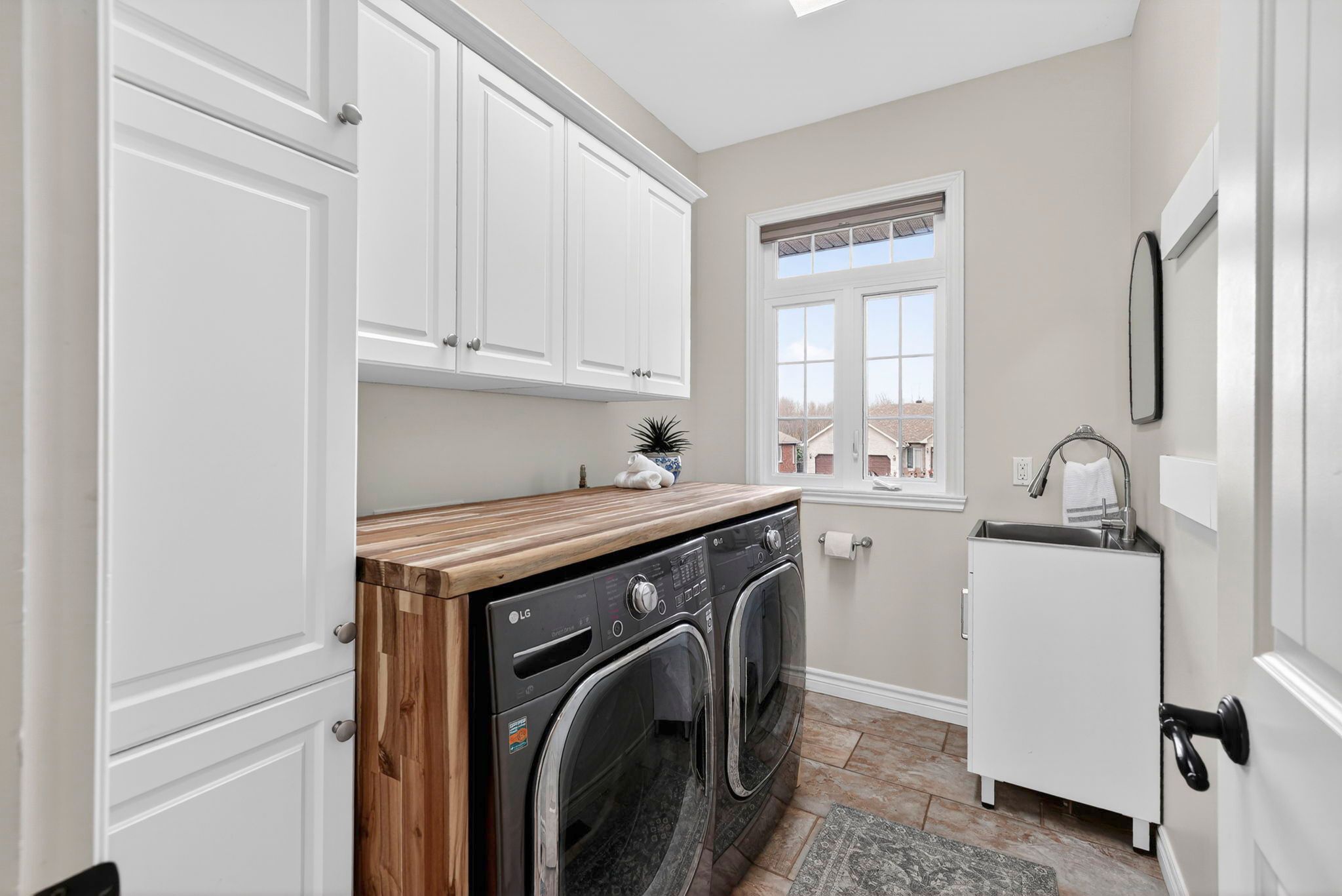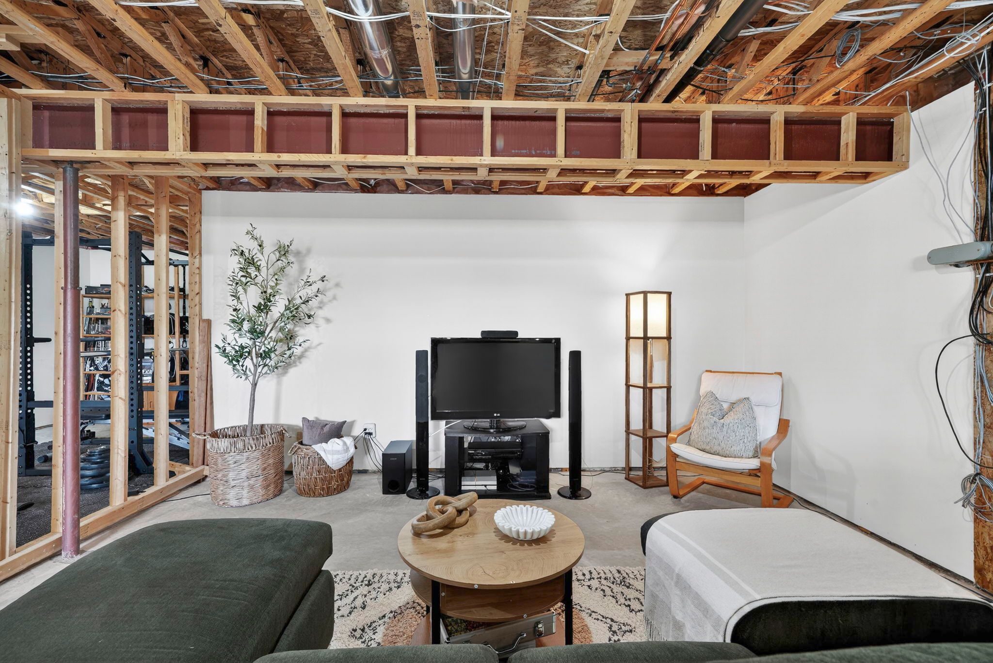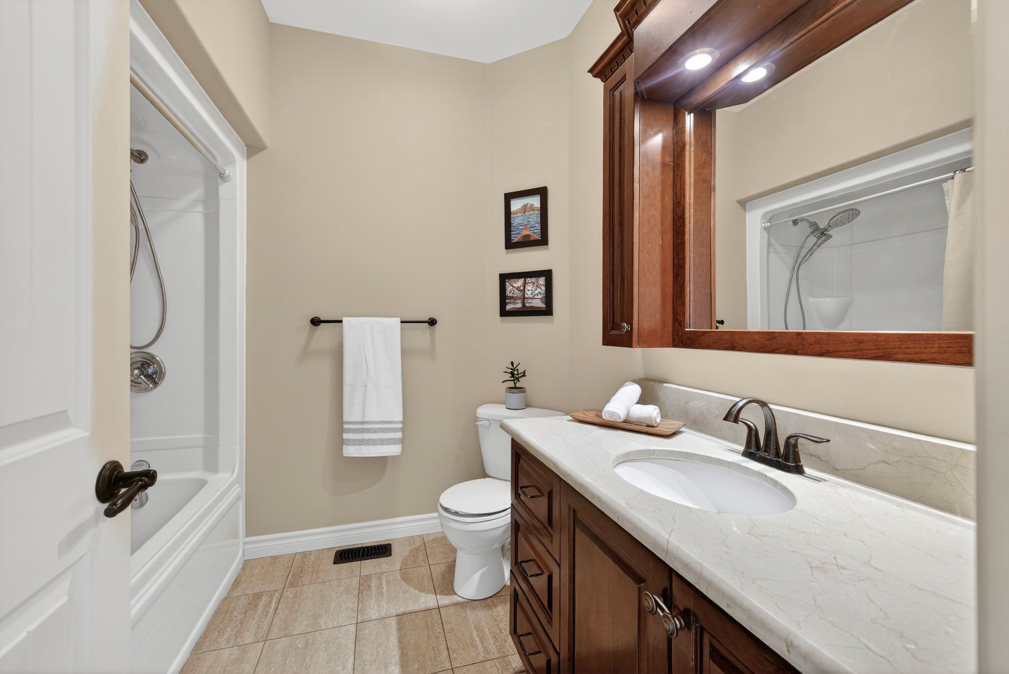 • Lower level includes guest room, bath, and large recreation space.
