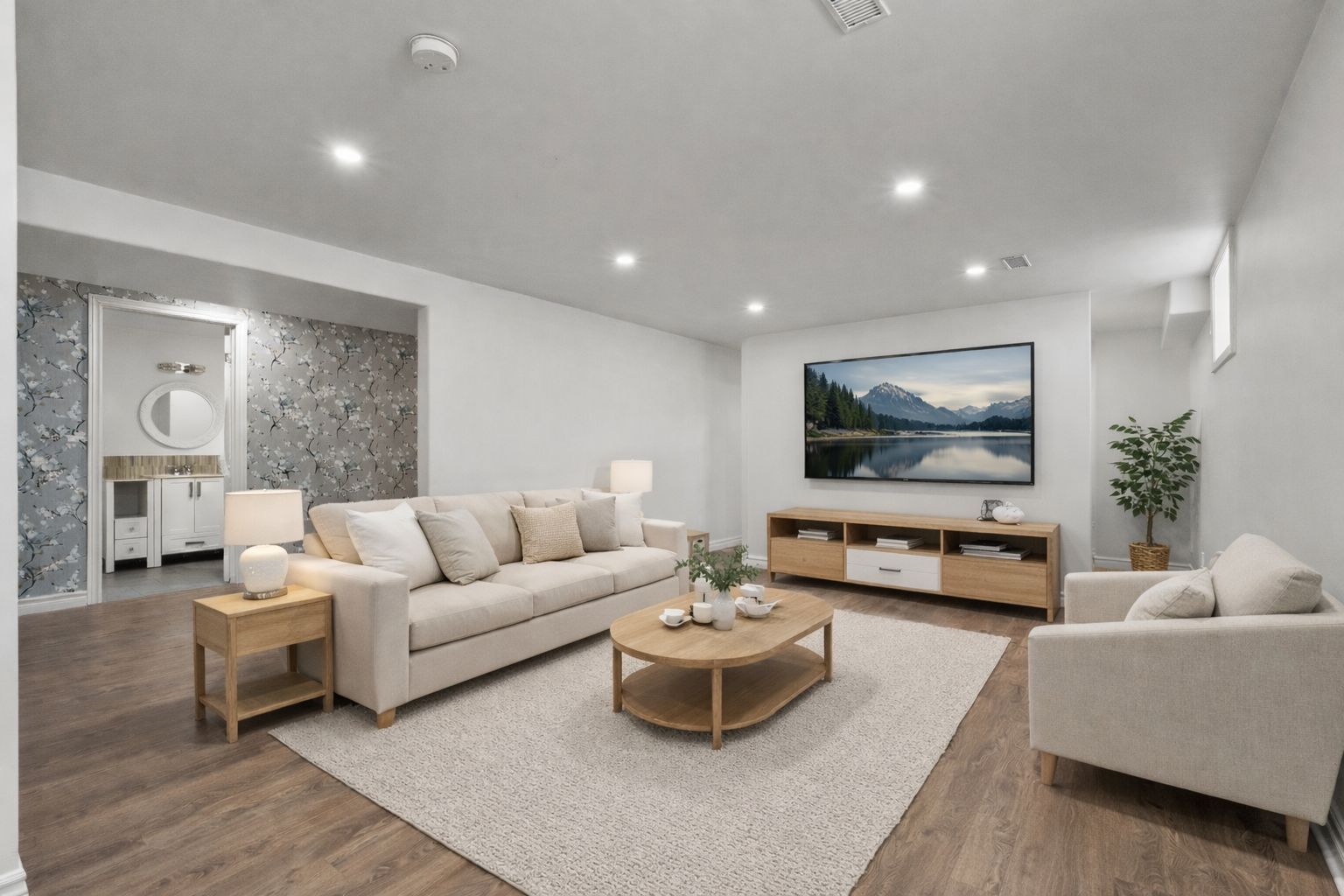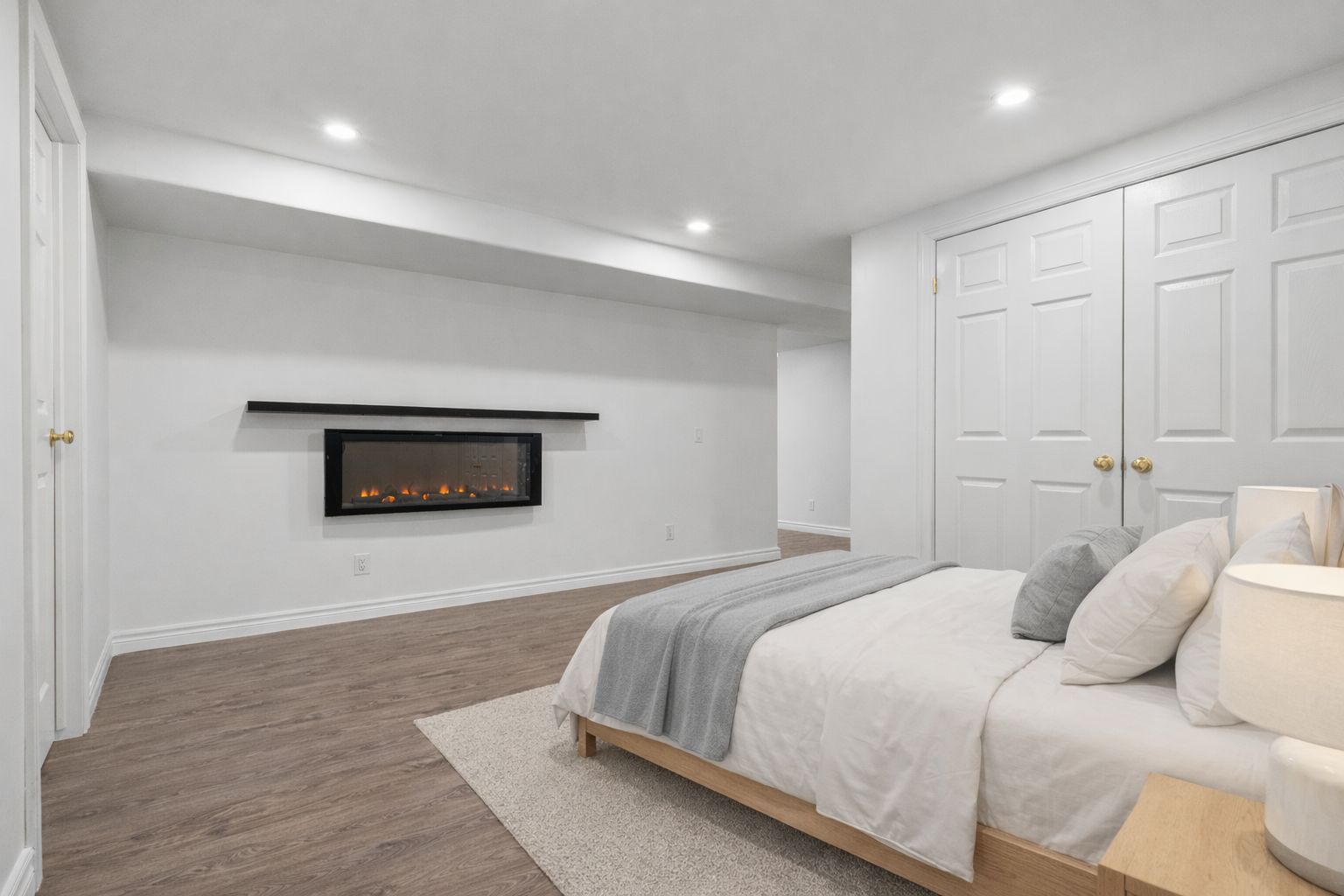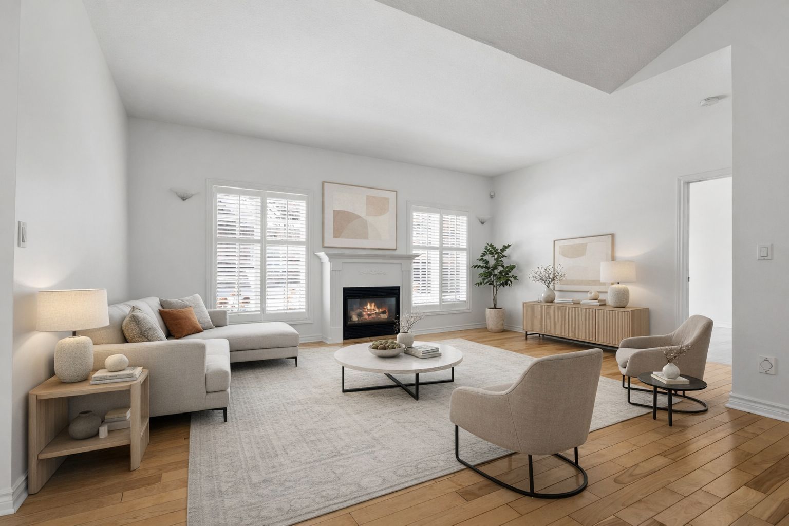 • Open-concept living area filled with natural light and a cozy fireplace.