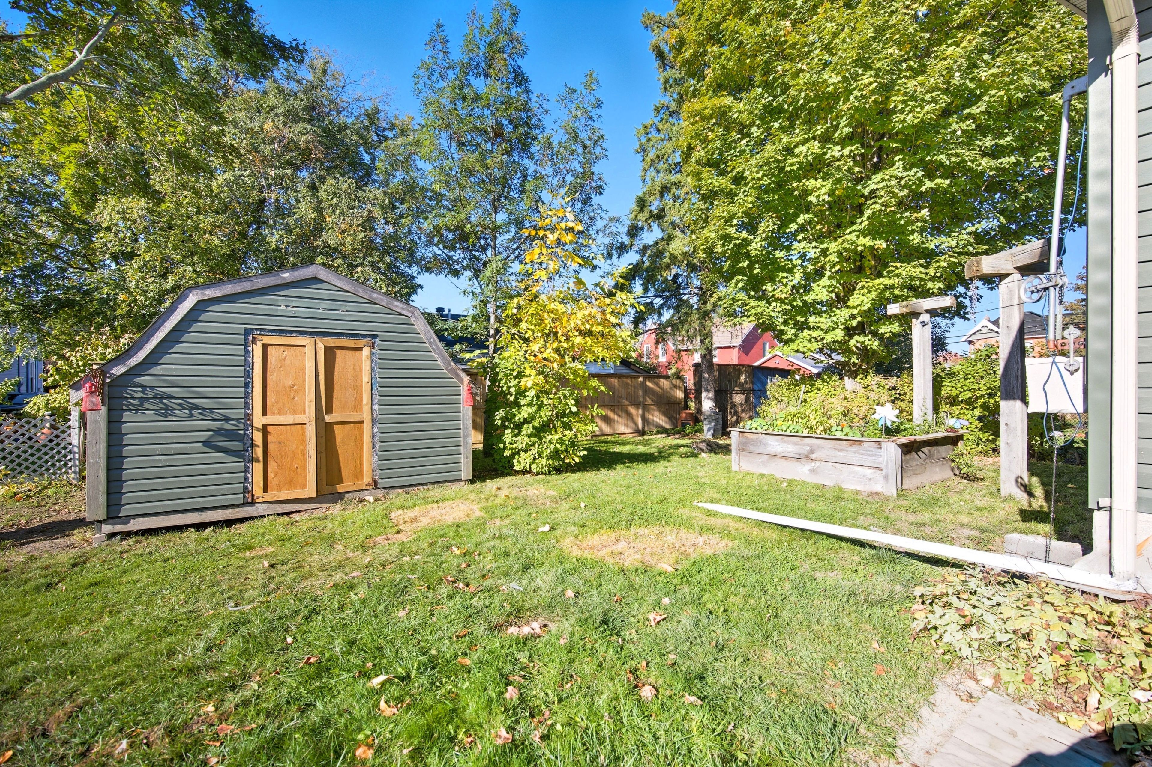 • Lovely yard with mature trees, perfect for gardening and relaxation.