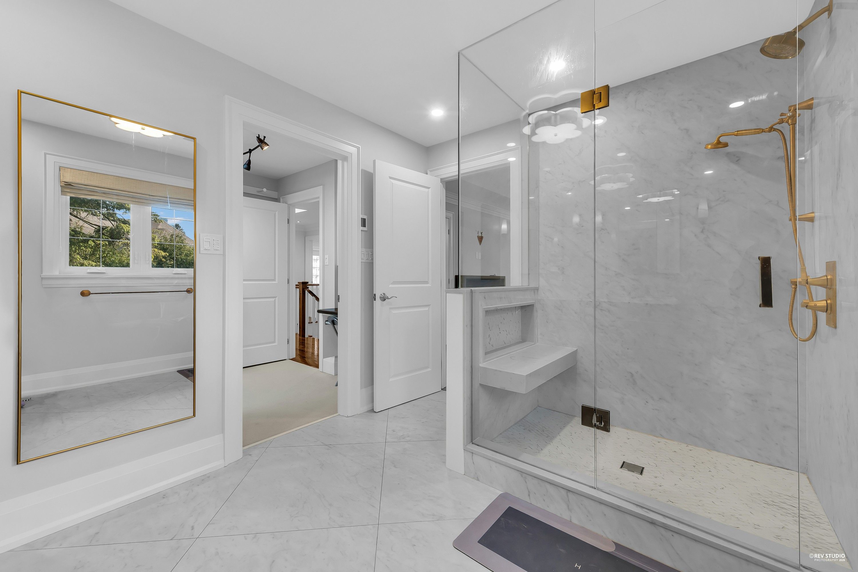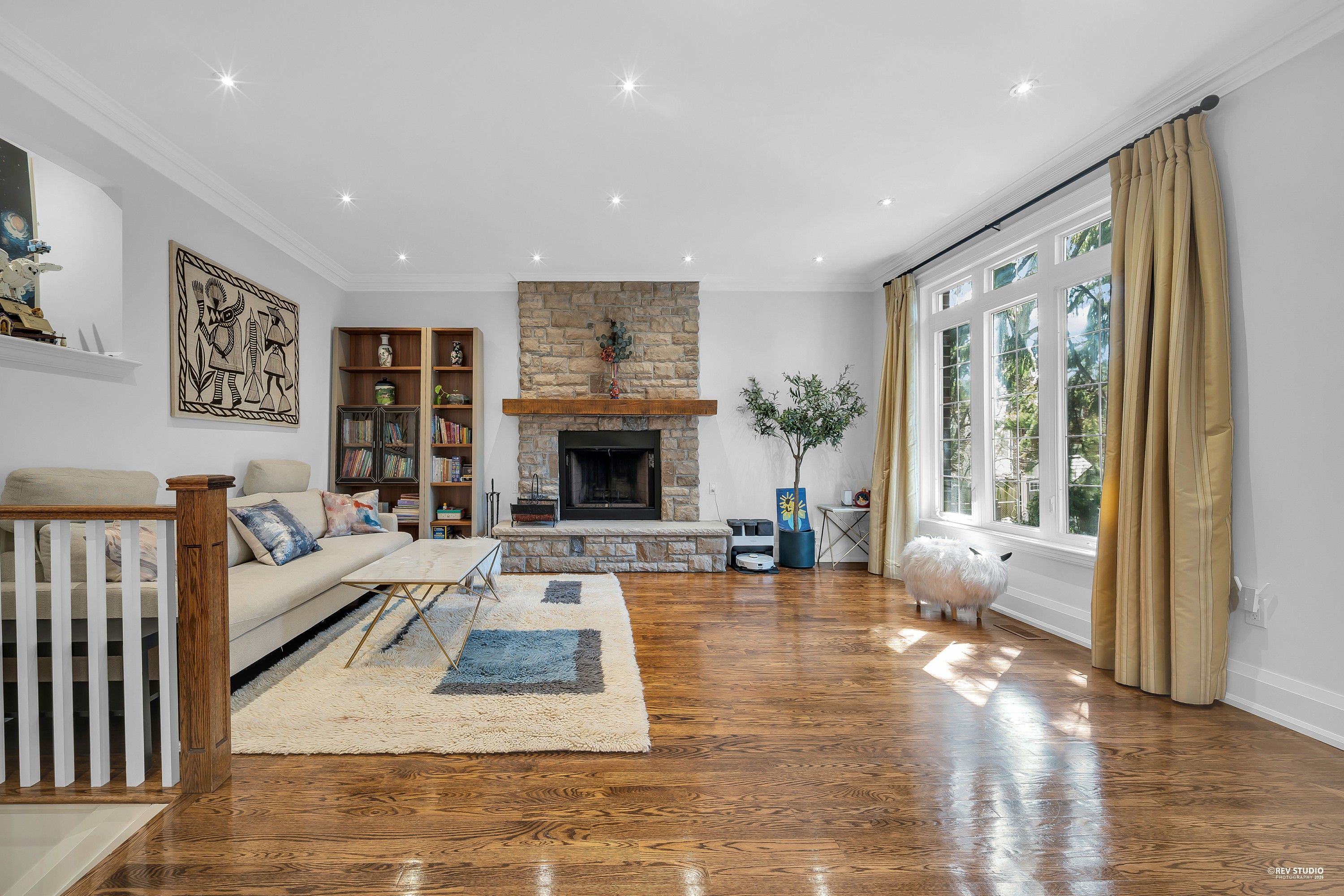 • Bright layout featuring tall ceilings, hardwood floors, and skylights.
