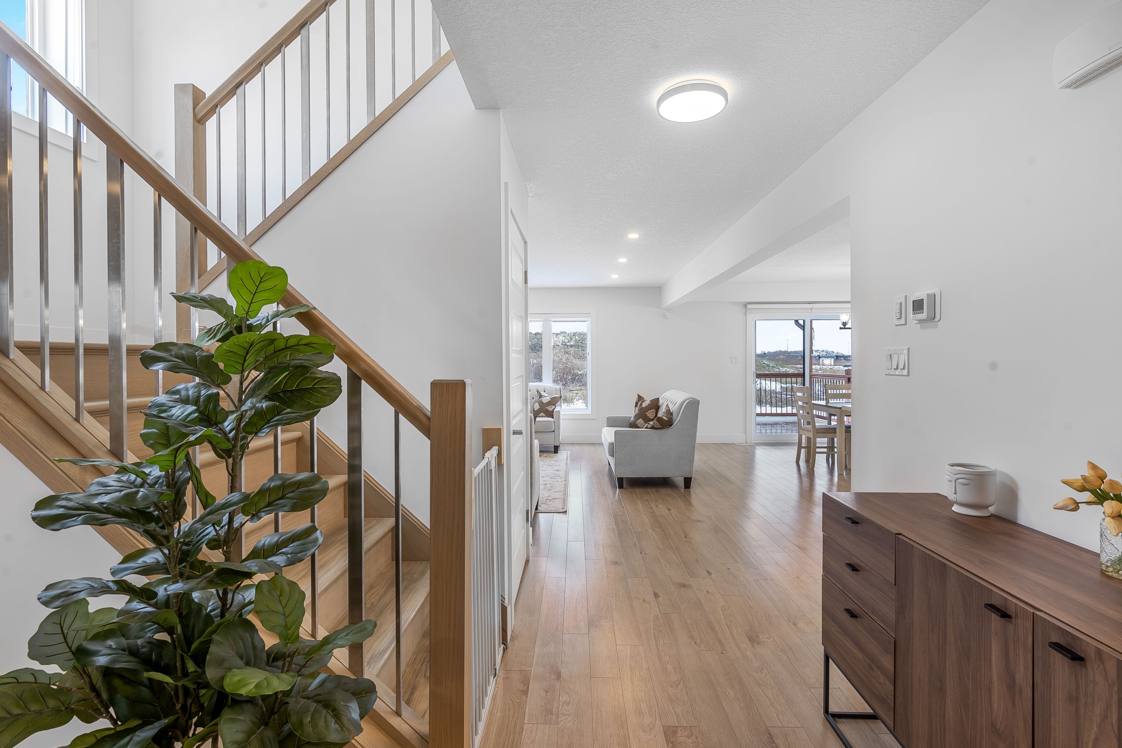 Stunning 2021-built home located in the highly desirable southwold neighbourhood, nestled on a quiet cul-de-sac. This property features a double-door entrance, carpet-free interior, and elegant oak stairs. The cozy great room includes a stylish accent wall and fireplace, complemented by a beautifully designed kitchen with a backsplash and large windows that fill the space with natural light. The home offers 3 bedrooms, 2 full 4-piece bathrooms including a primary ensuite, convenient second-level laundry, and a main-floor powder room. Situated on a private court, it provides parking for 4 vehicles on the driveway along with 2 separate garage doors, plus a lovely covered deck at the rear. Just 5 minutes to st. Thomas and southwold public school, under 10 minutes to london, and close to the amazon fulfillment centre, this home blends privacy, style, and convenience into one exceptional package.