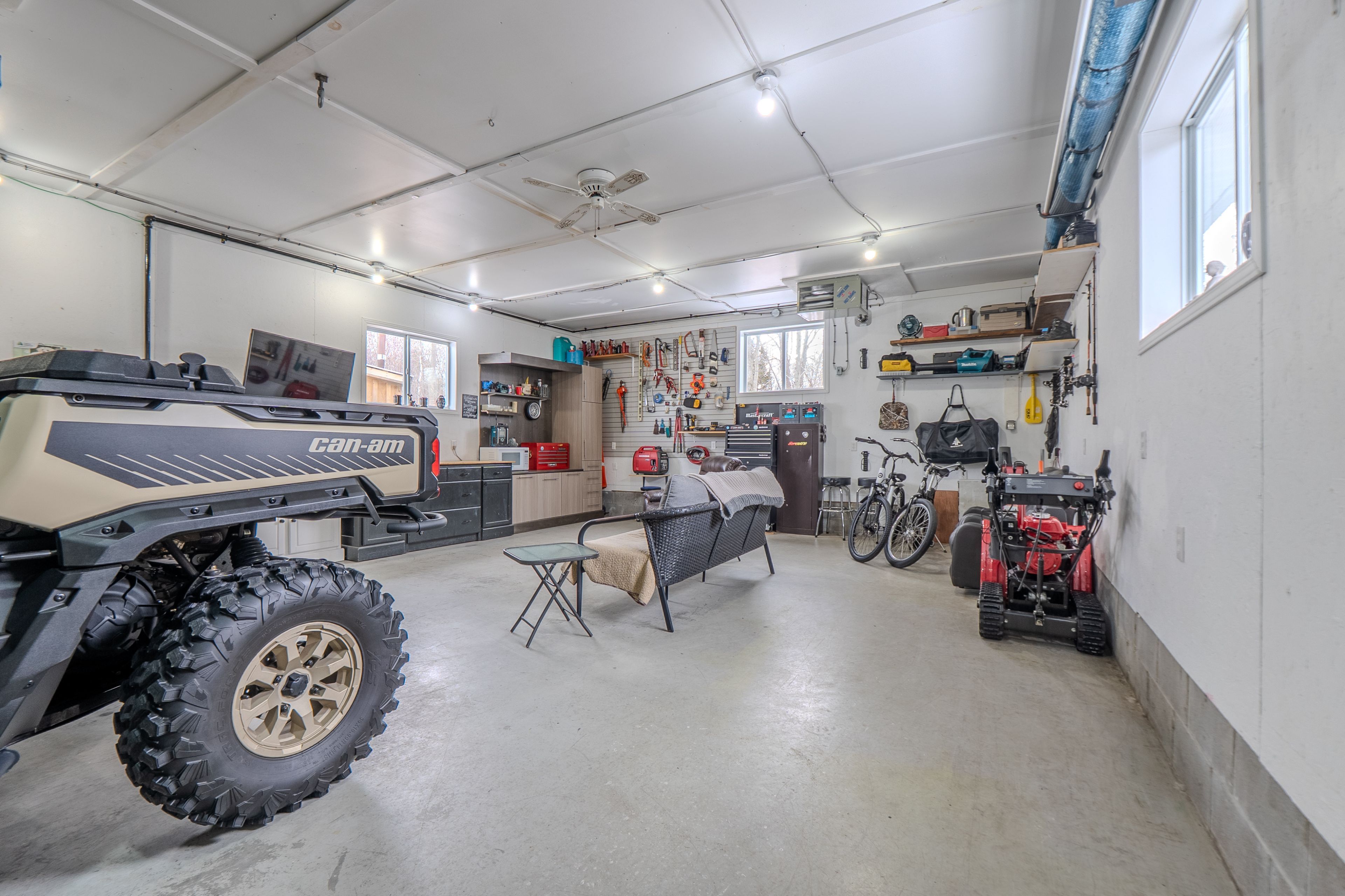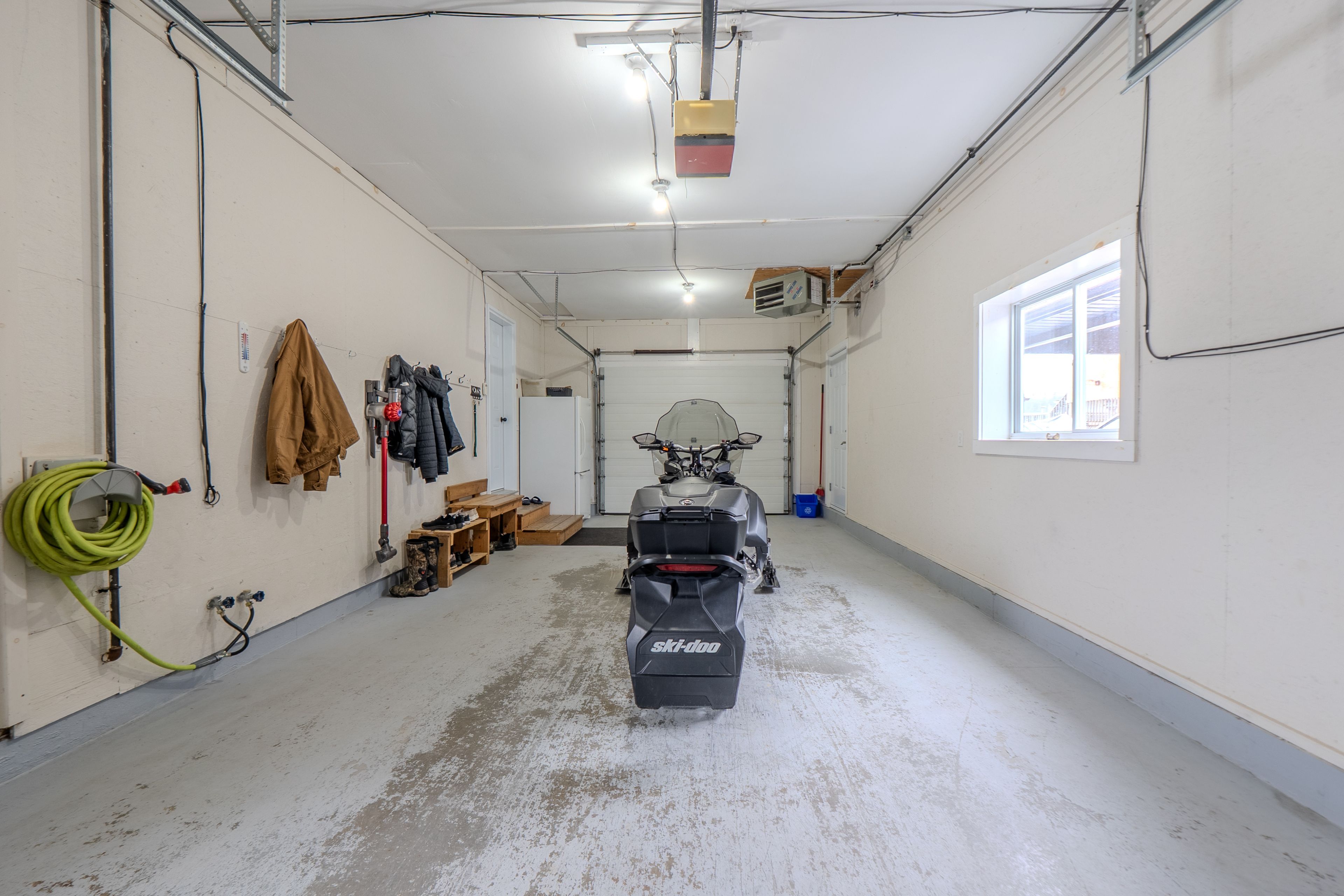 • Attached heated garage with a unique drive-through door for easy access.