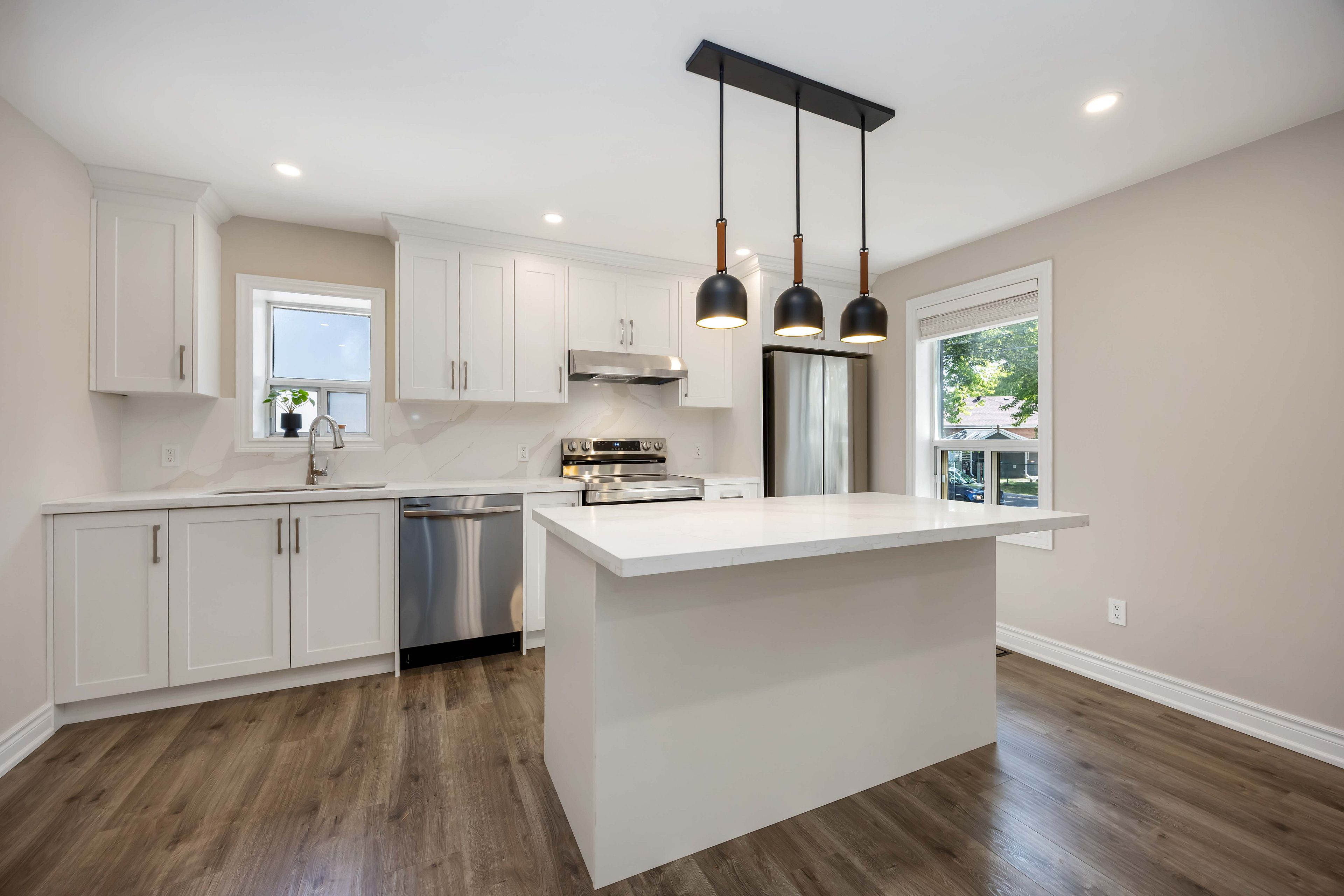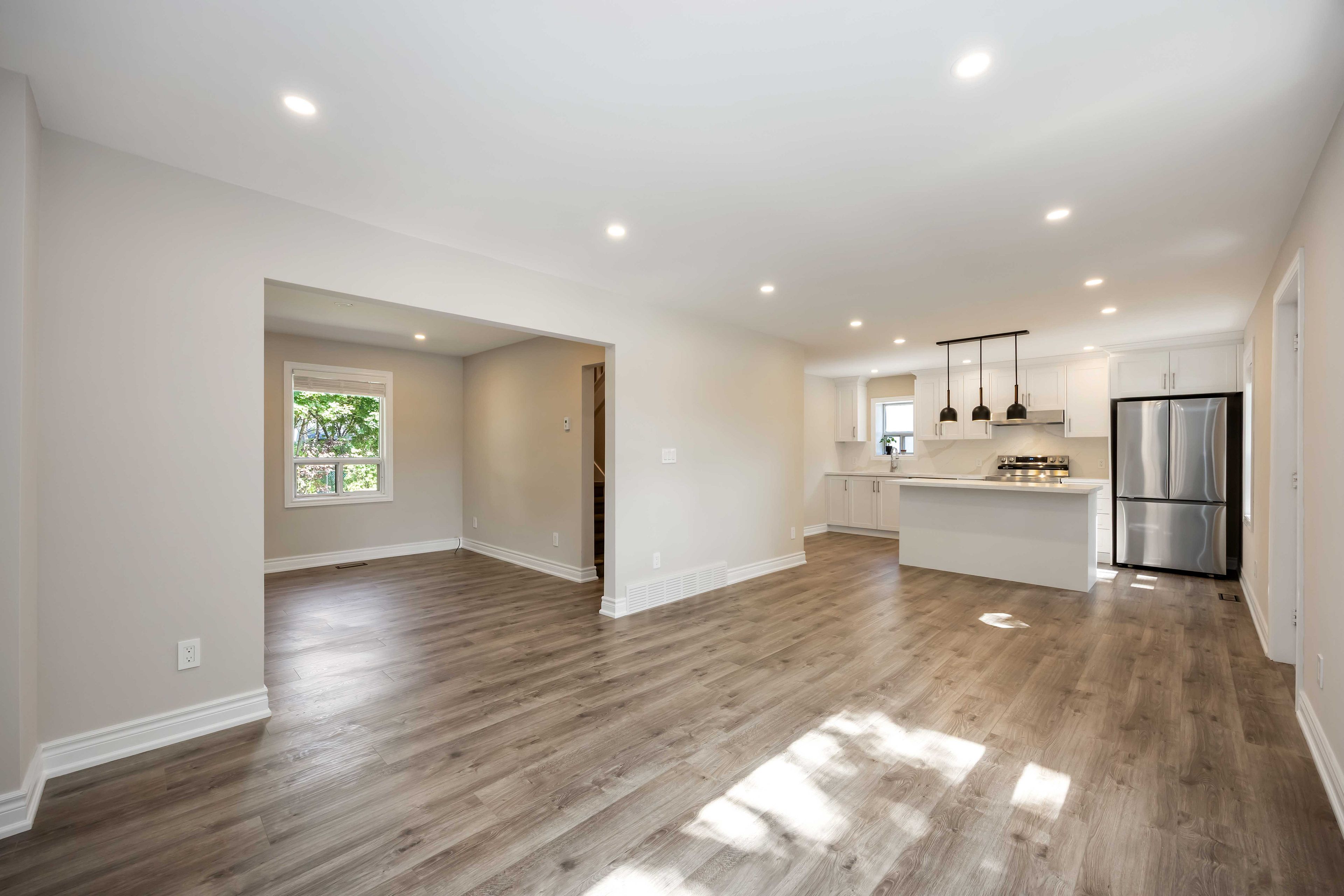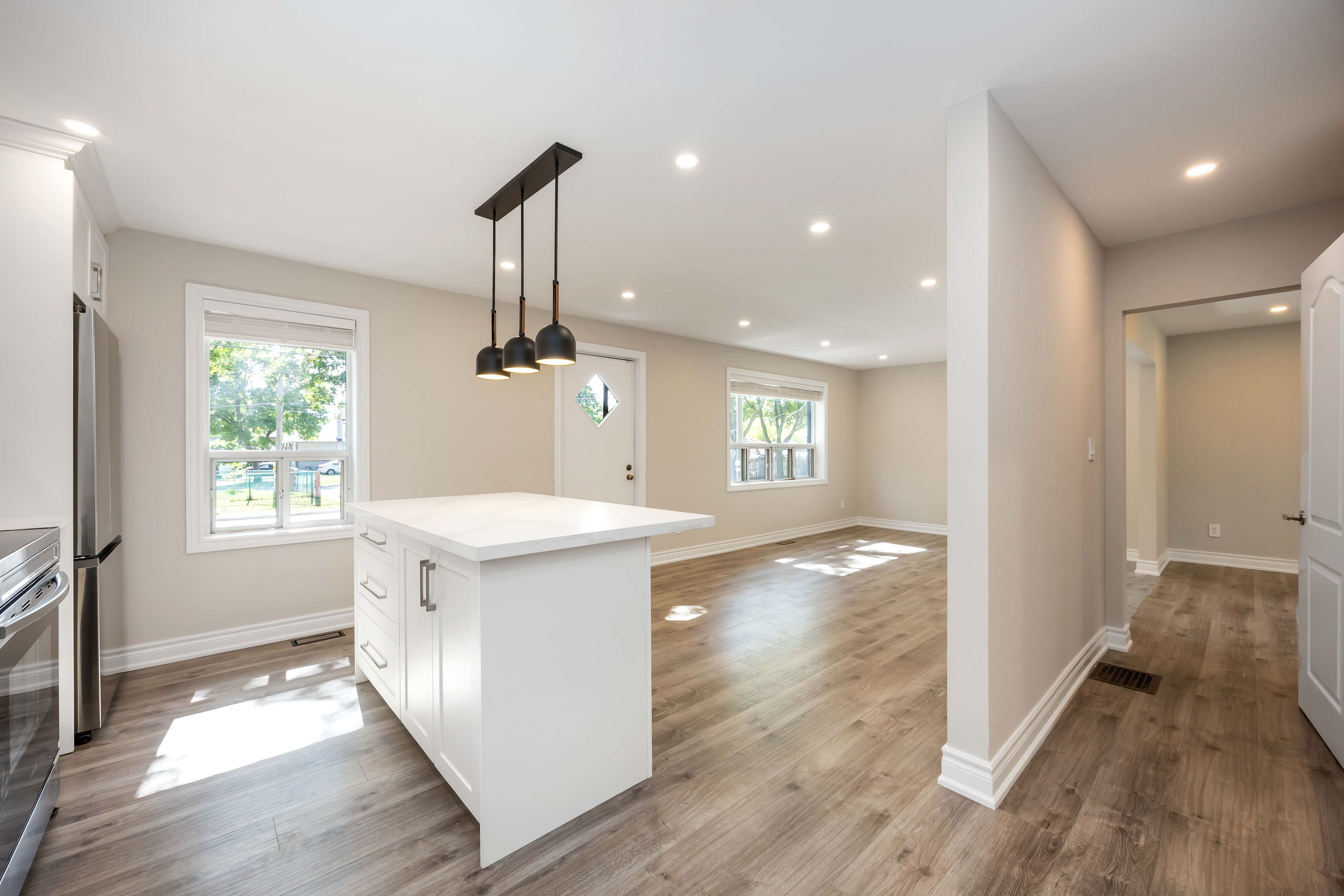 • Bright open-concept layout with versatile living space for family needs.