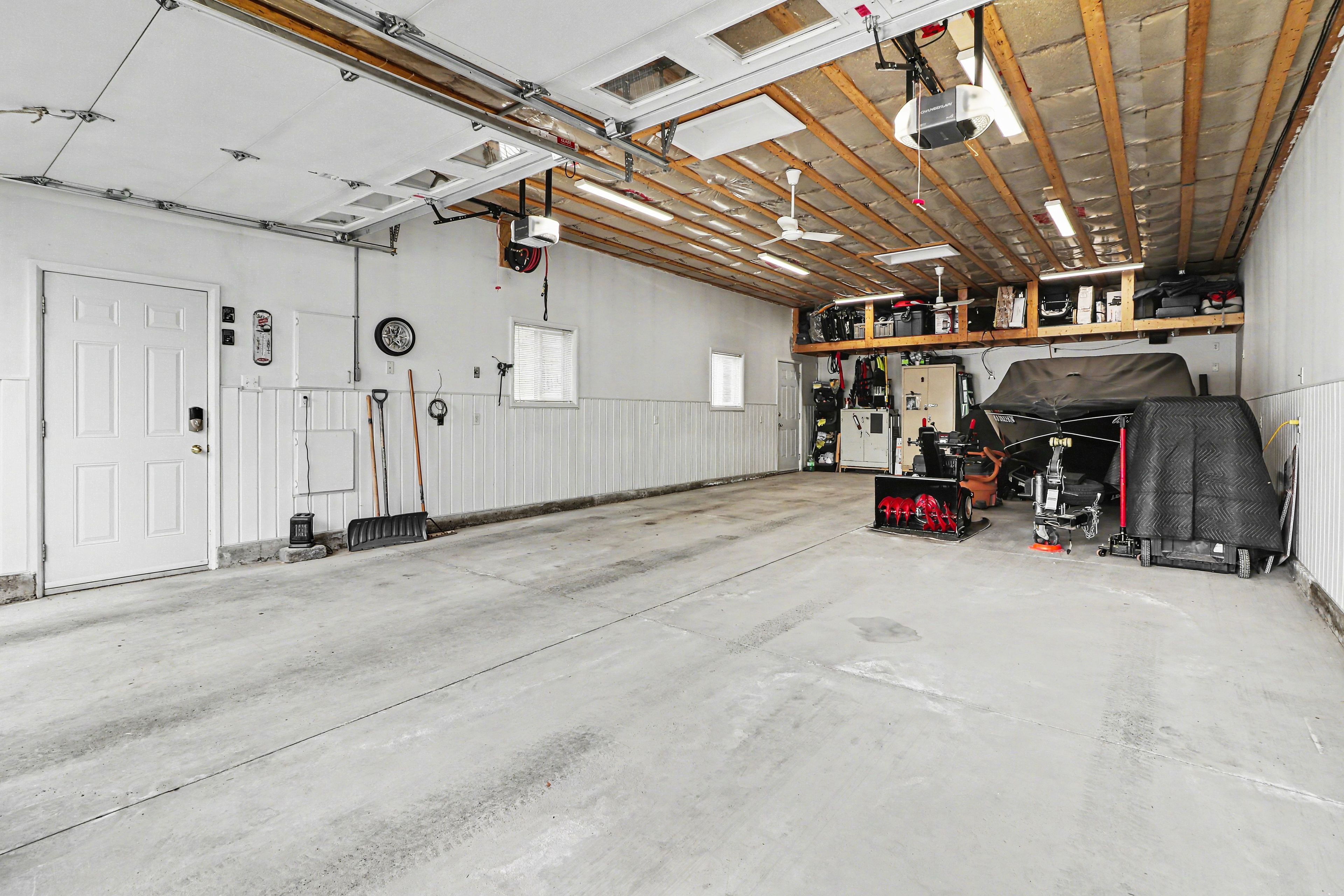 • Large insulated garage with space for hobbies or parking multiple vehicles.