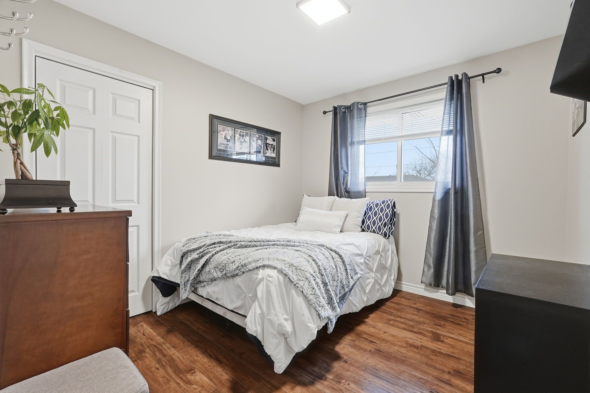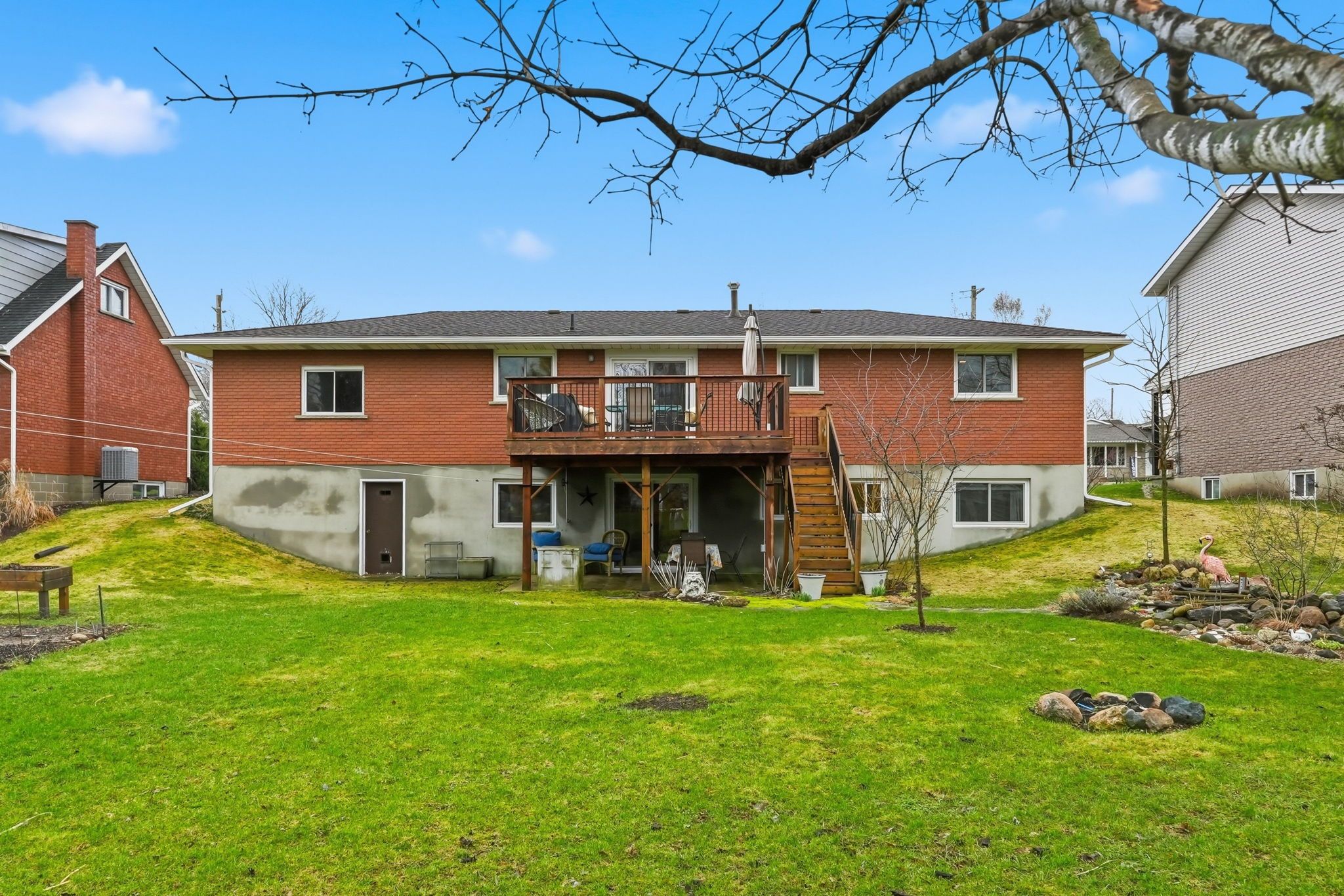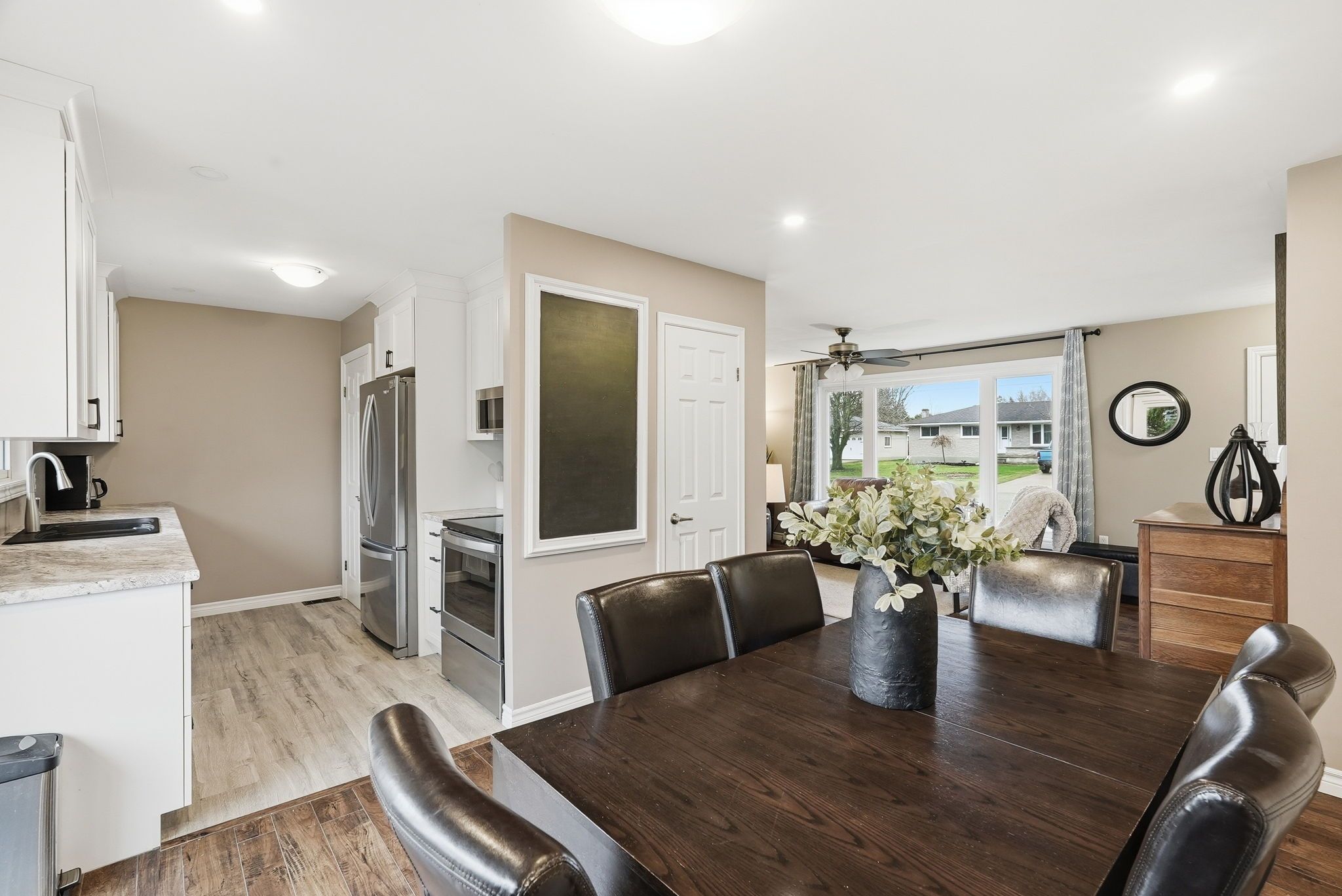 Nestled on a quiet street in a sought-after neighborhood, this beautifully maintained red brick bungalow offers the perfect blend of comfort, style, and convenience. Ideally located you'll enjoy easy access to nearby schools, grocery stores, and banking - everything you need just minutes away. This charming home features 3 bedrooms on the main floor, along with an updated 4-piece bathroom. The heart of the home is the bright and inviting eat in kitchen, complete with a pantry and brand-new cabinetry installed in 2021, along with a comfortable and inviting living room. The fully finished walk-out basement provides excellent additional living space, including a family room with a gas stove, perfect for relaxing or entertaining. You'll also find a fourth bedroom, a 3-piece bathroom, a laundry area, and a utility room. Step outside to enjoy your private backyard oasis, featuring a deck built in 2021, a decorative pond, and beautifully landscaped grounds - perfect for outdoor gatherings or peaceful evenings. Completing this impressive property is an attached single garage with a convenient 10' x 16' storage area underneath, offering plenty of space for tools, seasonal items, or hobby equipment. A true gem with exceptional features throughout - this home is move-in ready and ready to impress!