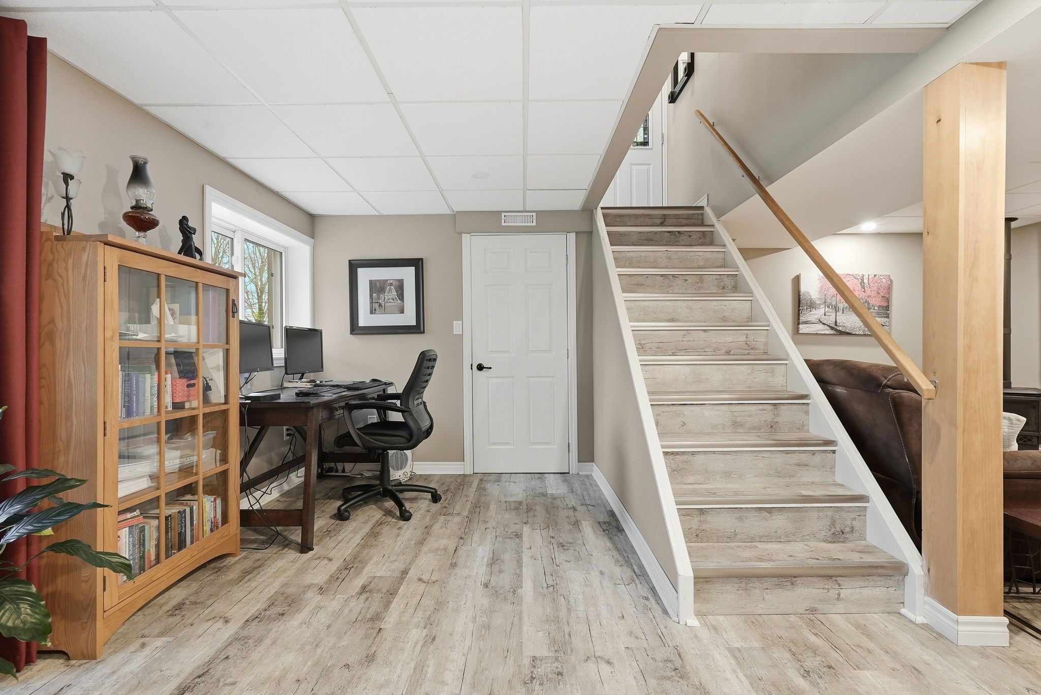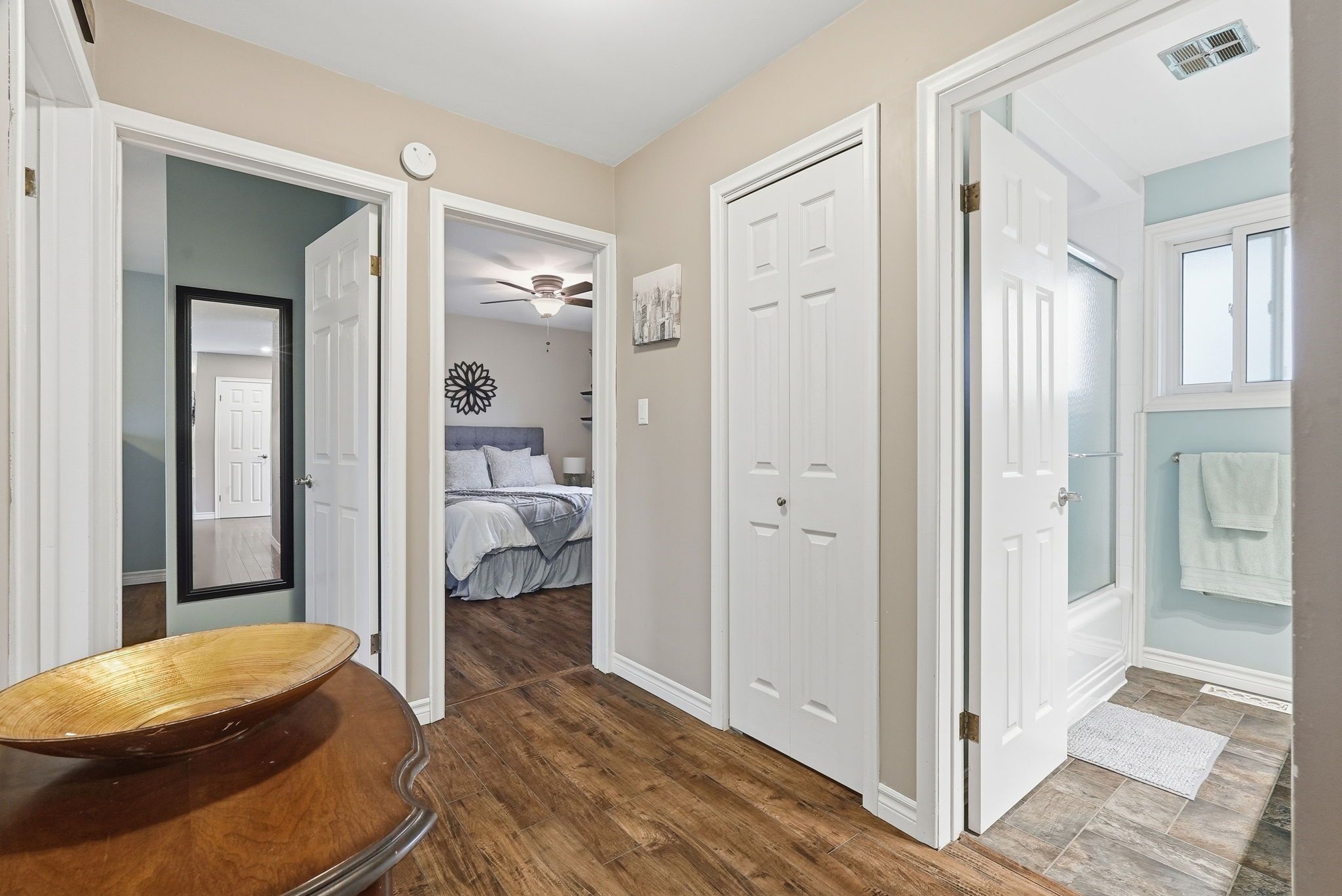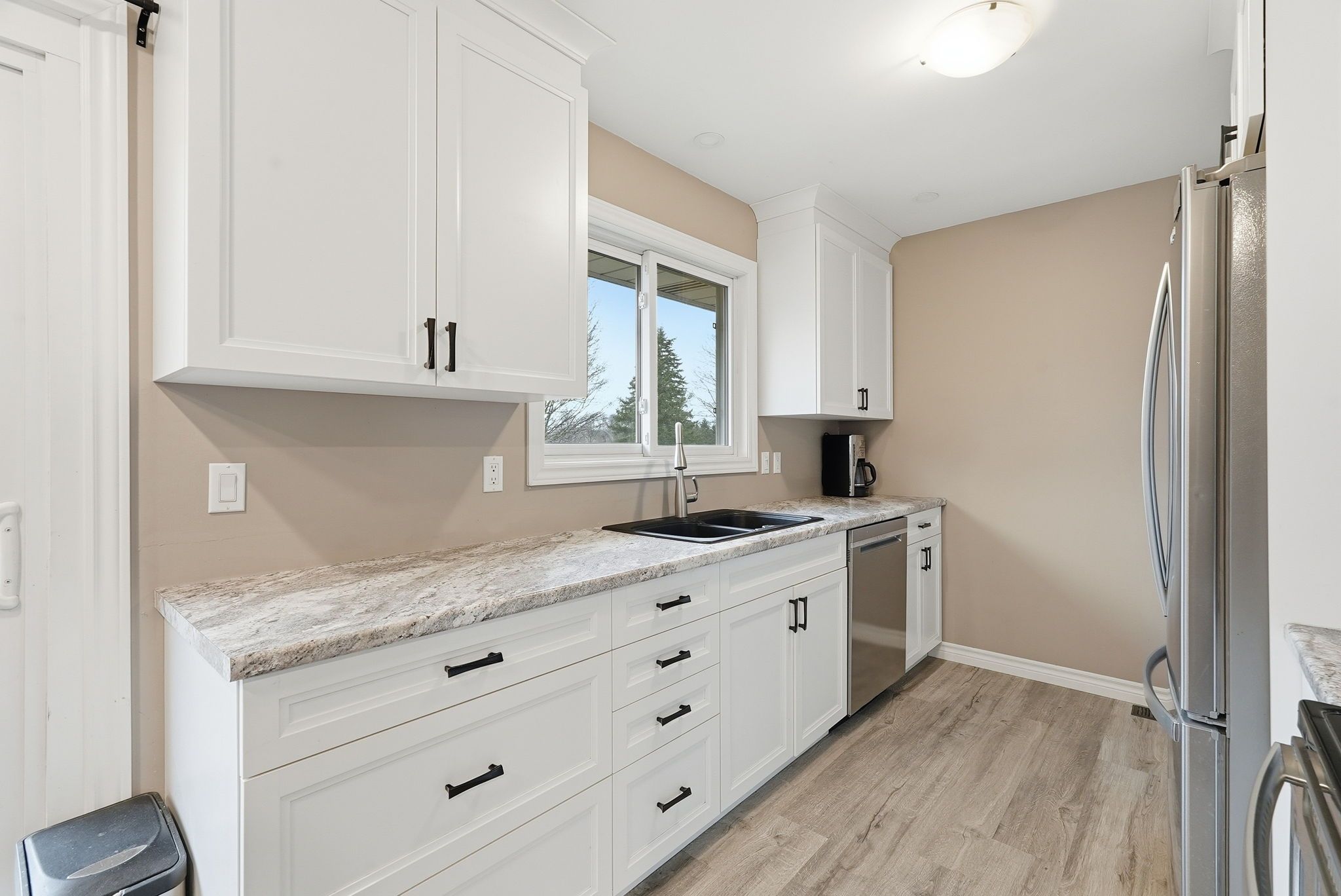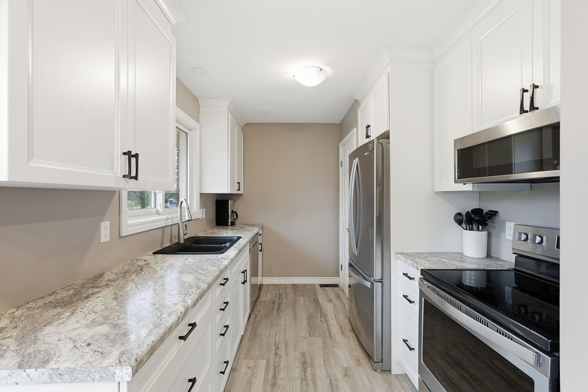 Nestled on a quiet street in a sought-after neighborhood, this beautifully maintained red brick bungalow offers the perfect blend of comfort, style, and convenience. Ideally located you'll enjoy easy access to nearby schools, grocery stores, and banking - everything you need just minutes away. This charming home features 3 bedrooms on the main floor, along with an updated 4-piece bathroom. The heart of the home is the bright and inviting eat in kitchen, complete with a pantry and brand-new cabinetry installed in 2021, along with a comfortable and inviting living room. The fully finished walk-out basement provides excellent additional living space, including a family room with a gas stove, perfect for relaxing or entertaining. You'll also find a fourth bedroom, a 3-piece bathroom, a laundry area, and a utility room. Step outside to enjoy your private backyard oasis, featuring a deck built in 2021, a decorative pond, and beautifully landscaped grounds - perfect for outdoor gatherings or peaceful evenings. Completing this impressive property is an attached single garage with a convenient 10' x 16' storage area underneath, offering plenty of space for tools, seasonal items, or hobby equipment. A true gem with exceptional features throughout - this home is move-in ready and ready to impress!