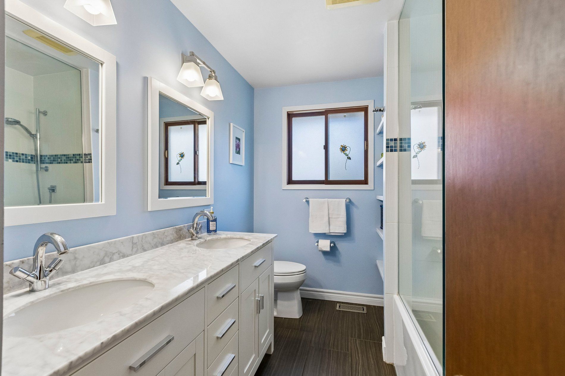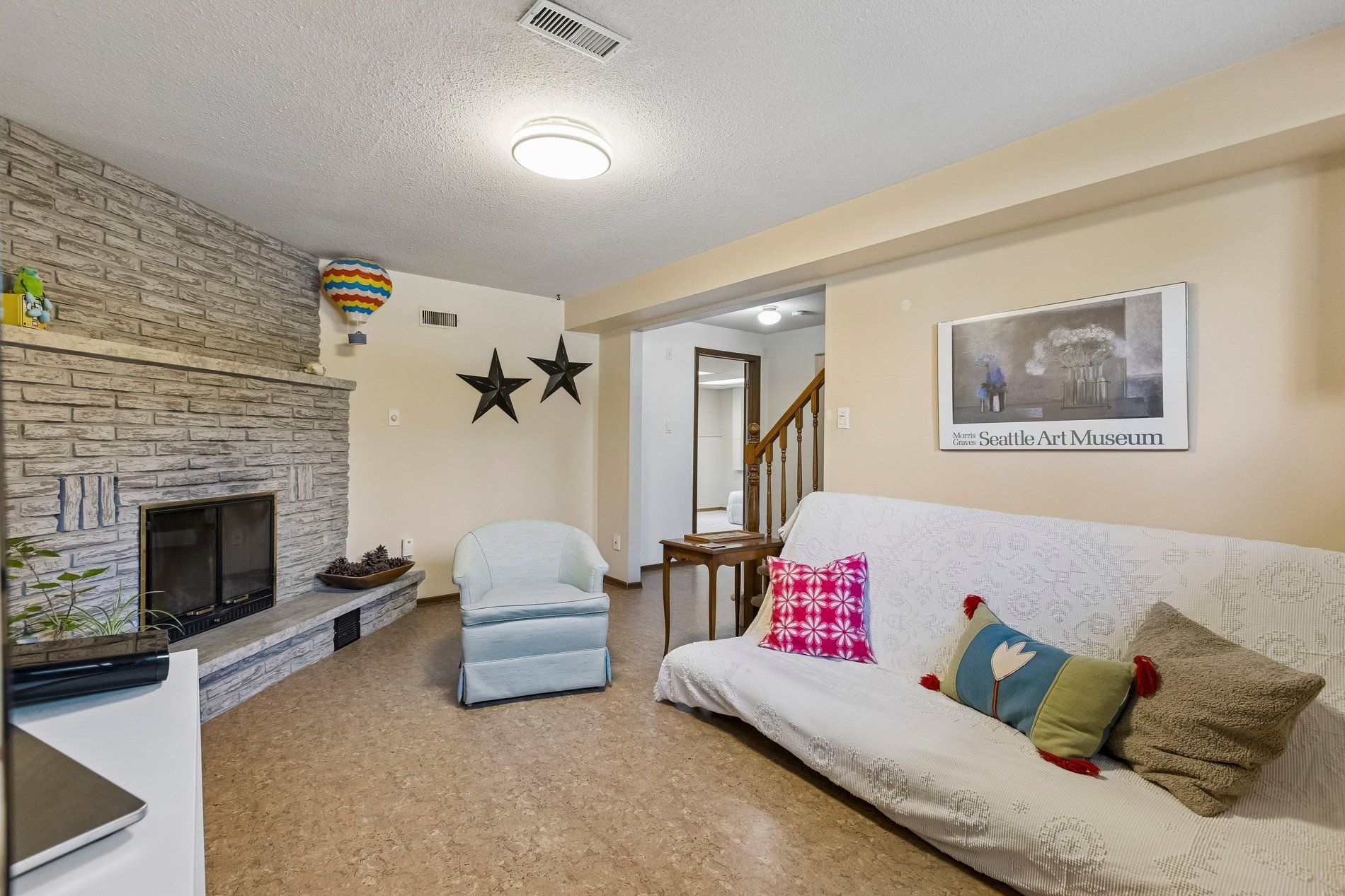 • Three spacious bedrooms and a bright living room on main floor.