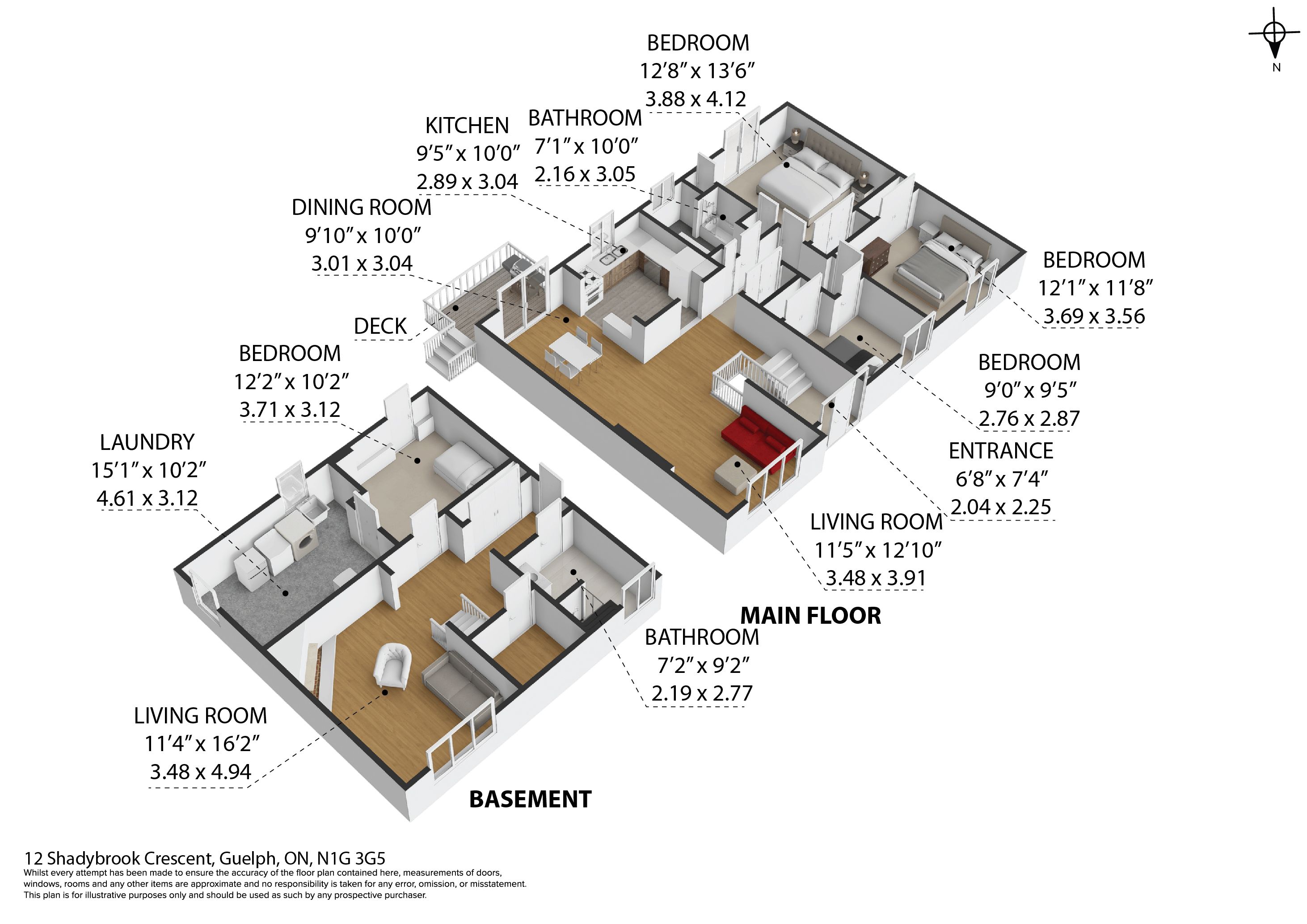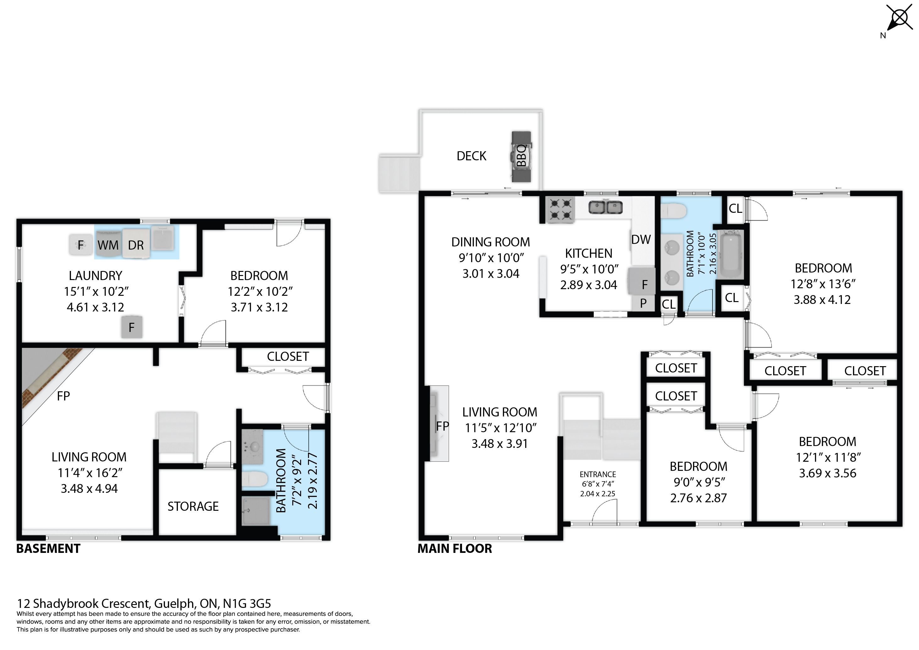 Welcome to 12 shadybrook crescent, guelph, ontario-a beautifully laid-out home in a quiet, family-friendly neighbourhood, backing onto preservation park and offering added privacy with scenic natural views. This well-designed property features three spacious bedrooms on the main floor, along with a bright and inviting living room complete with a cozy fireplace. The space flows seamlessly into the dining area, perfect for everyday living and entertaining. The kitchen offers a functional layout with easy access to the dining room and a walkout to the deck, making indoor-outdoor living effortless. The deck also includes a gas hookup for a bbq-ideal for easy outdoor cooking and entertaining. The main floor also includes a full bathroom and a welcoming entrance, creating a practical and comfortable space for families of all sizes. Downstairs, you'll find a fully finished basement, adding incredible versatility to the home. This level features a large second living area with its own fireplace, an additional bedroom with a separate walkout door to the backyard, a full bathroom, and a spacious laundry room. This setup is ideal for an in-law suite, guest accommodations, or multi-generational living. Step outside to enjoy the private backyard and deck-perfect for relaxing or hosting gatherings-with the added bonus of backing directly onto preservation park. With its smart layout, two fireplaces, finished basement, and convenient location close to highway 401, this home offers excellent value and everyday convenience. Don't miss your chance to make it yours.