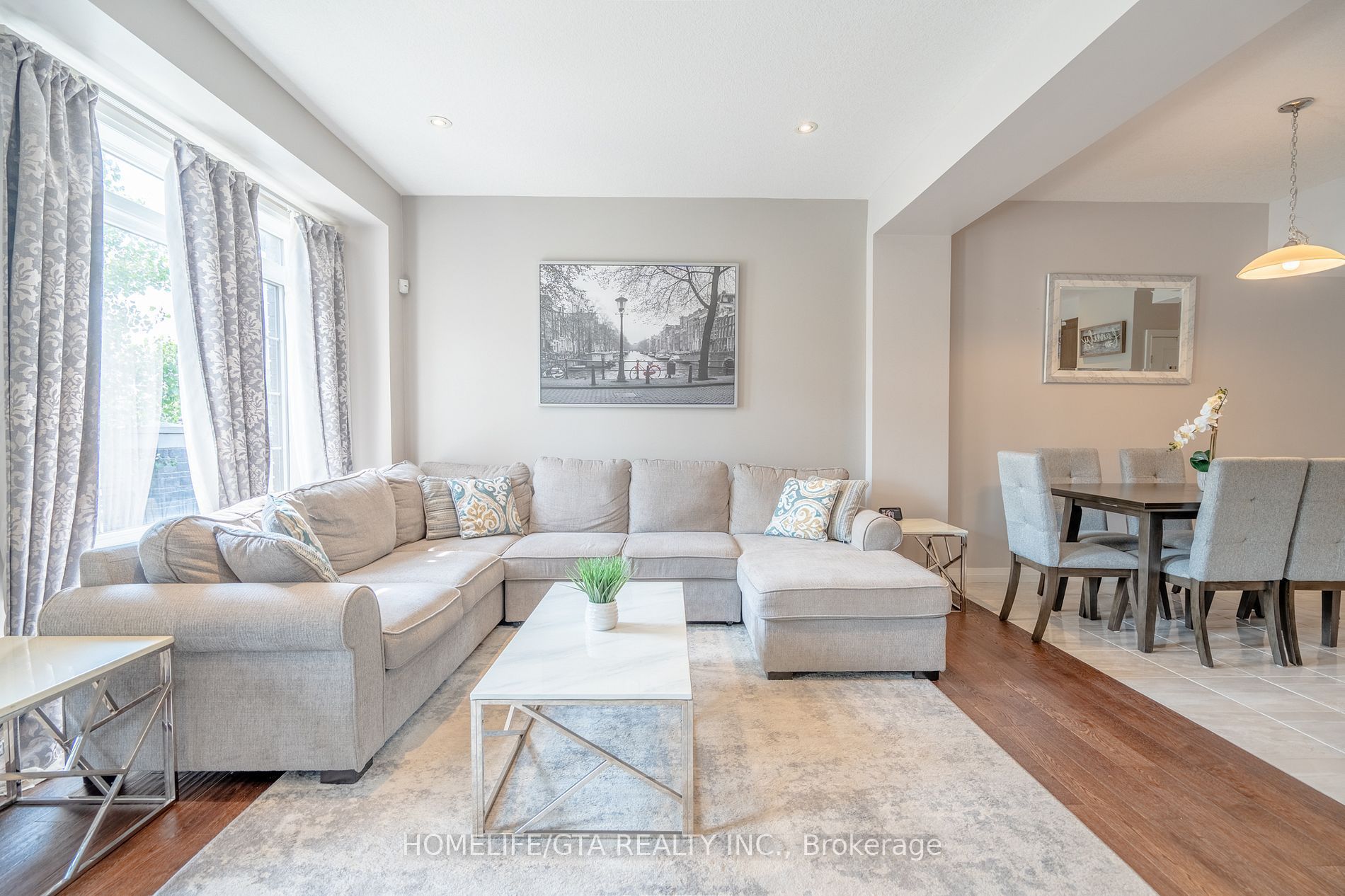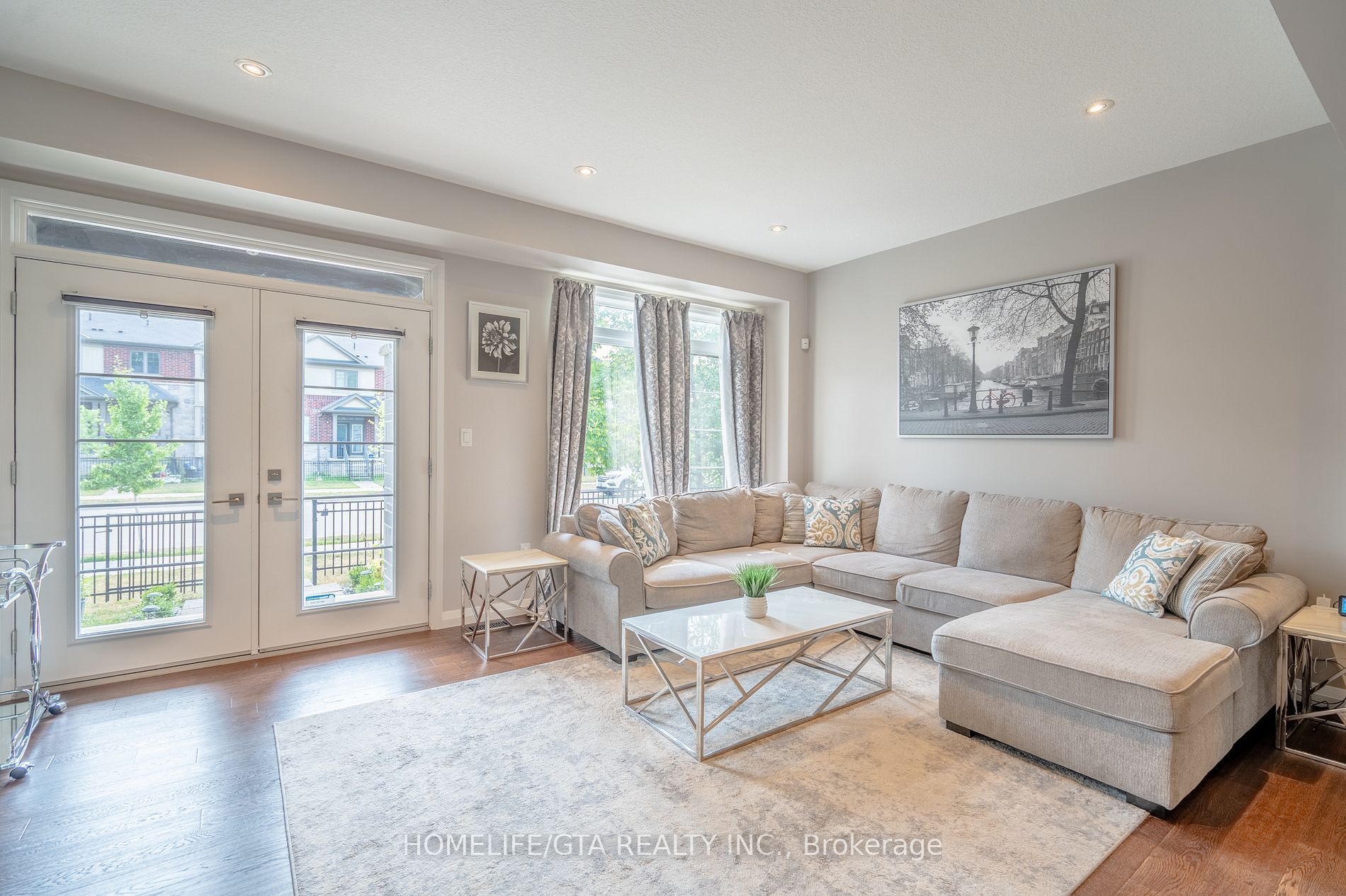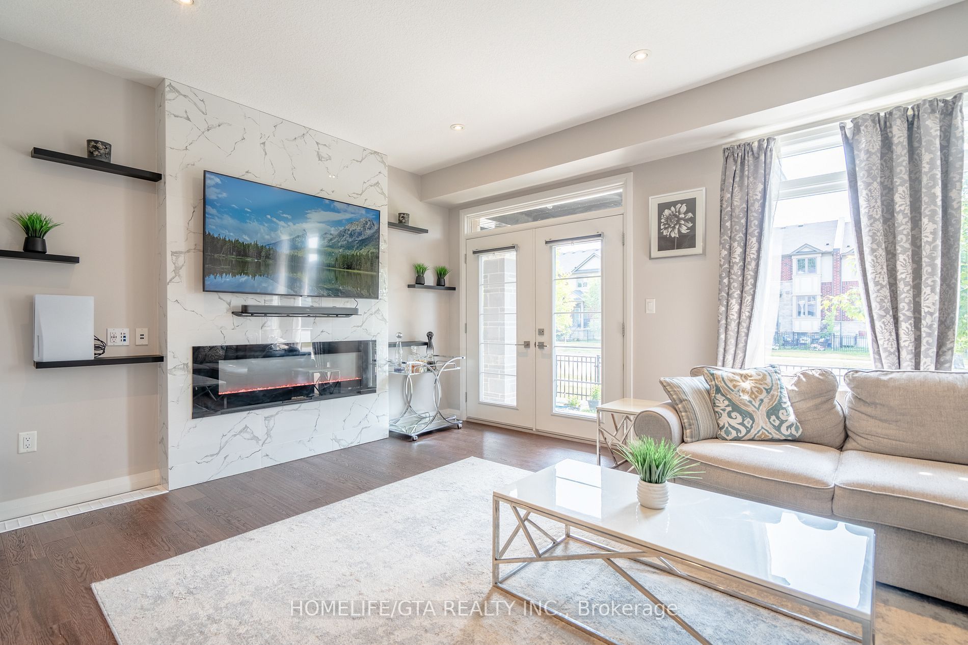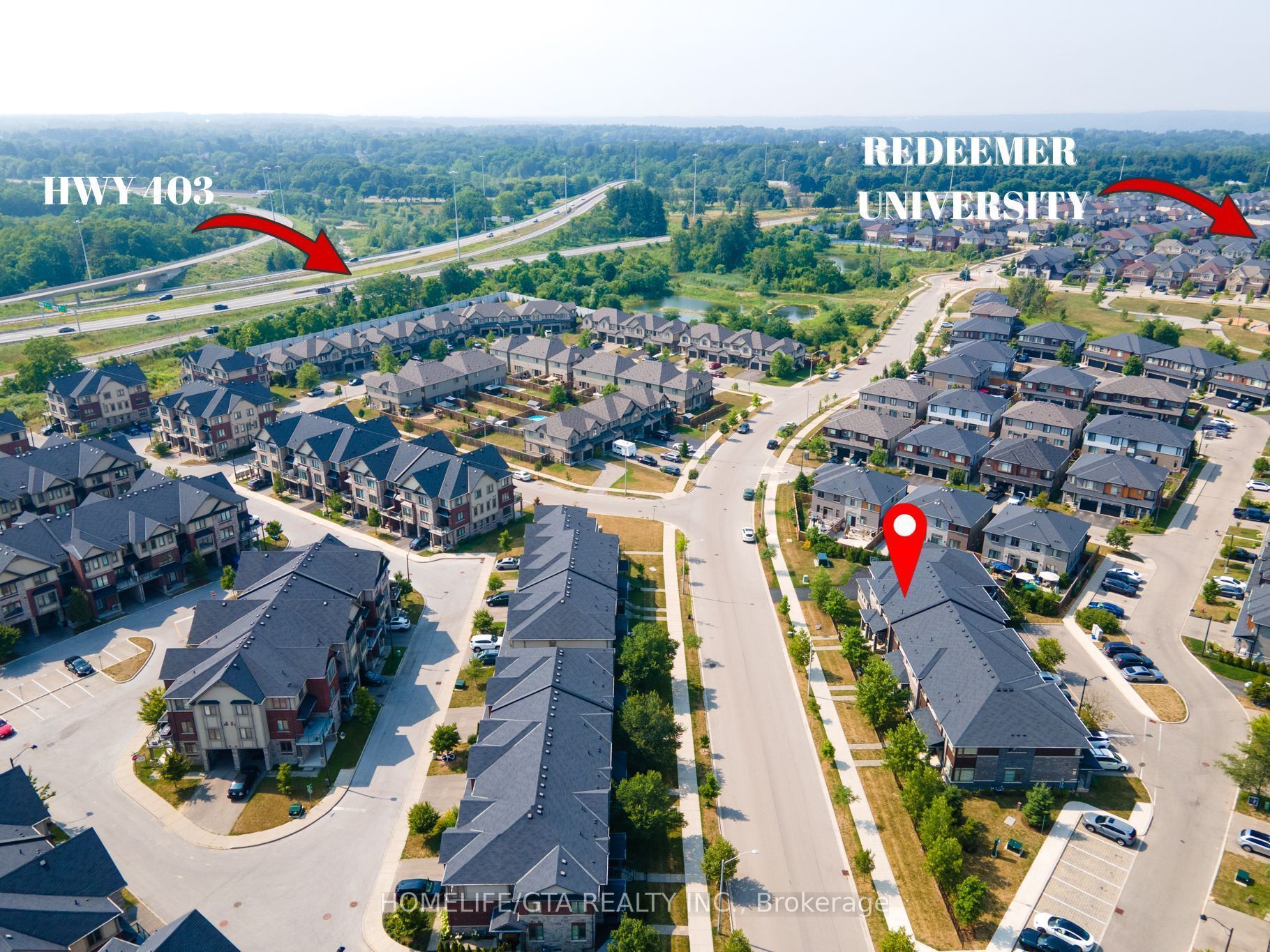 Stunning modern townhome in sought-after ancaster glen. Welcome to this beautifully designed modern freehold townhome by losani homes, where contemporary elegance meets functional living. With its striking architectural blend of stone, brick and wood-inspired metal siding, this home makes a memorable first impression. A glass- panel front door with matching sidelight floods the entryway with natural light, perfectly complementing the sleek dark easement windows throughout. Step inside to discover an open-concept layout enhanced by 9-foot ceilings on the main floor, creating a spacious and airy atmosphere encompassing over 1500 sqft of living space, the kitchen is a showstopper, featuring caesarstone quartz countertops, extended- height upper cabinets, pot and pan drawers, and sleek pot lights - ideal for both cooking and entertaining. The exquisite custom built entertainment wall is adorned with sophisticated marble - style tiling, anchored by a high-end electric fireplace offering customizable ambient lighting in a spectrum of elegant hues. Strategically relocated multimedia ports ensure seamless connectivity, all designed with both luxury and convenience in mid. Additional interior highlights include: hardwood flooring. Oak staircase leading to the upper level. The primary suite offers a private retreat with 3 piece ensuite, complete with a tiled shower fing security camera system with emergency flood lights, reliance alarm system, digital thermostat and laundry. The unspoiled basement includes a rough-in for a 2 piece bathroom, offering the potential to customize and expand your living space. Located in the highly desirable ancaster glen community, you're just minutes from meadowlands shopping. Top rated schools, old ancaster and major routes including the 403, the linc as well as mcmaster university and redeemer university. Don't miss your chance to own a modern, move in ready home in one of ancaster's most sought-after neighborhoods!