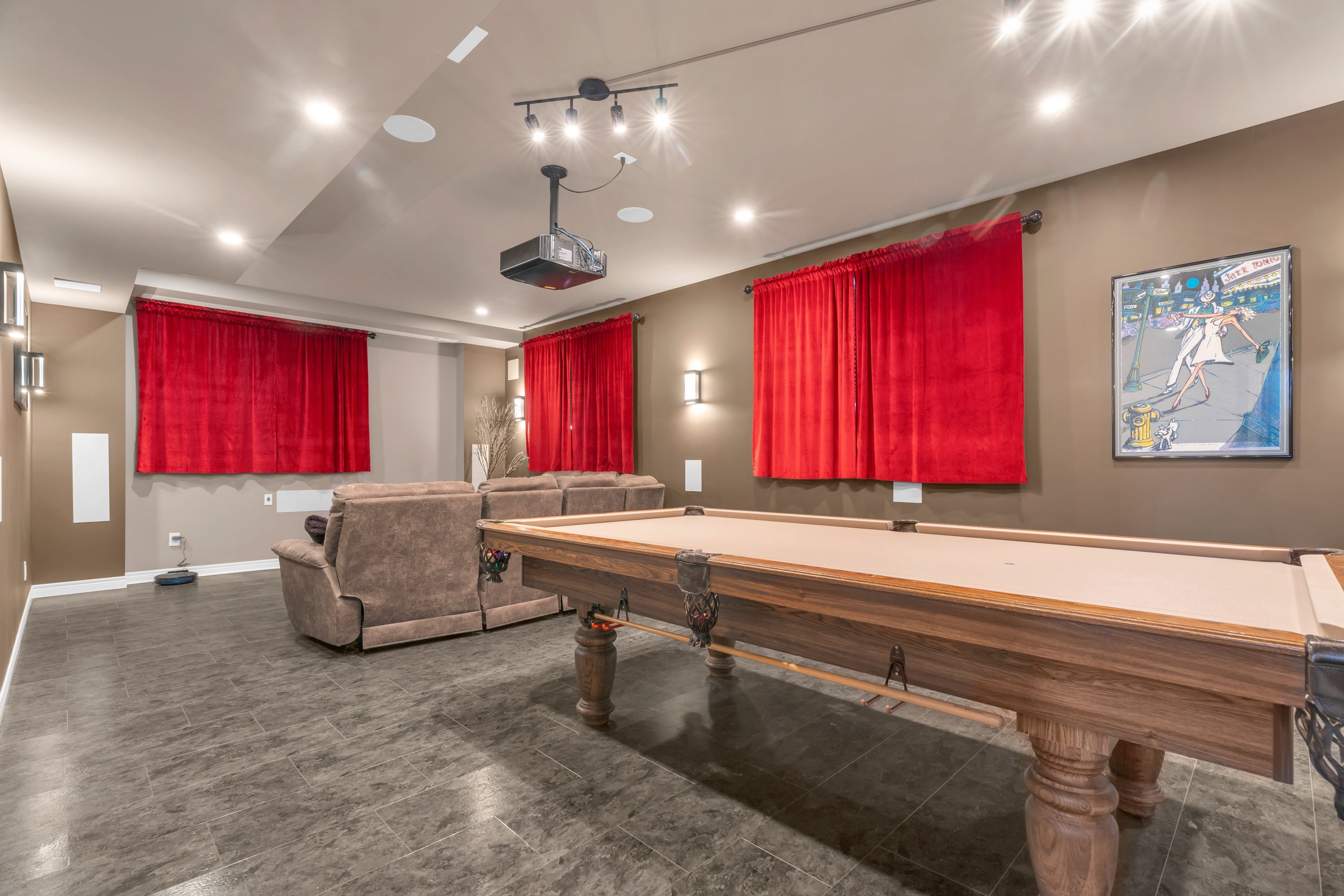 • Finished basement includes a home theatre, kitchenette, and two extra bedrooms.