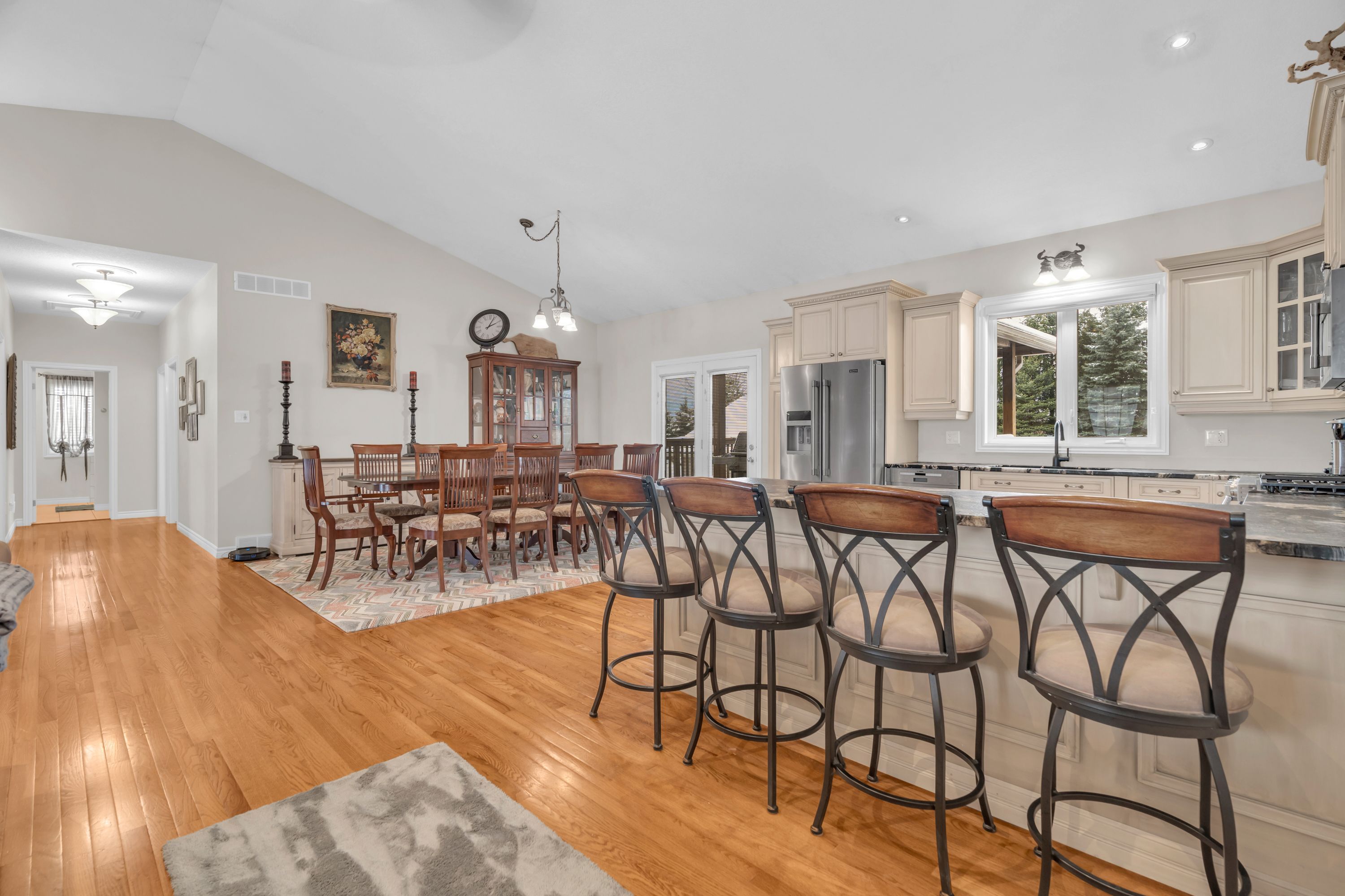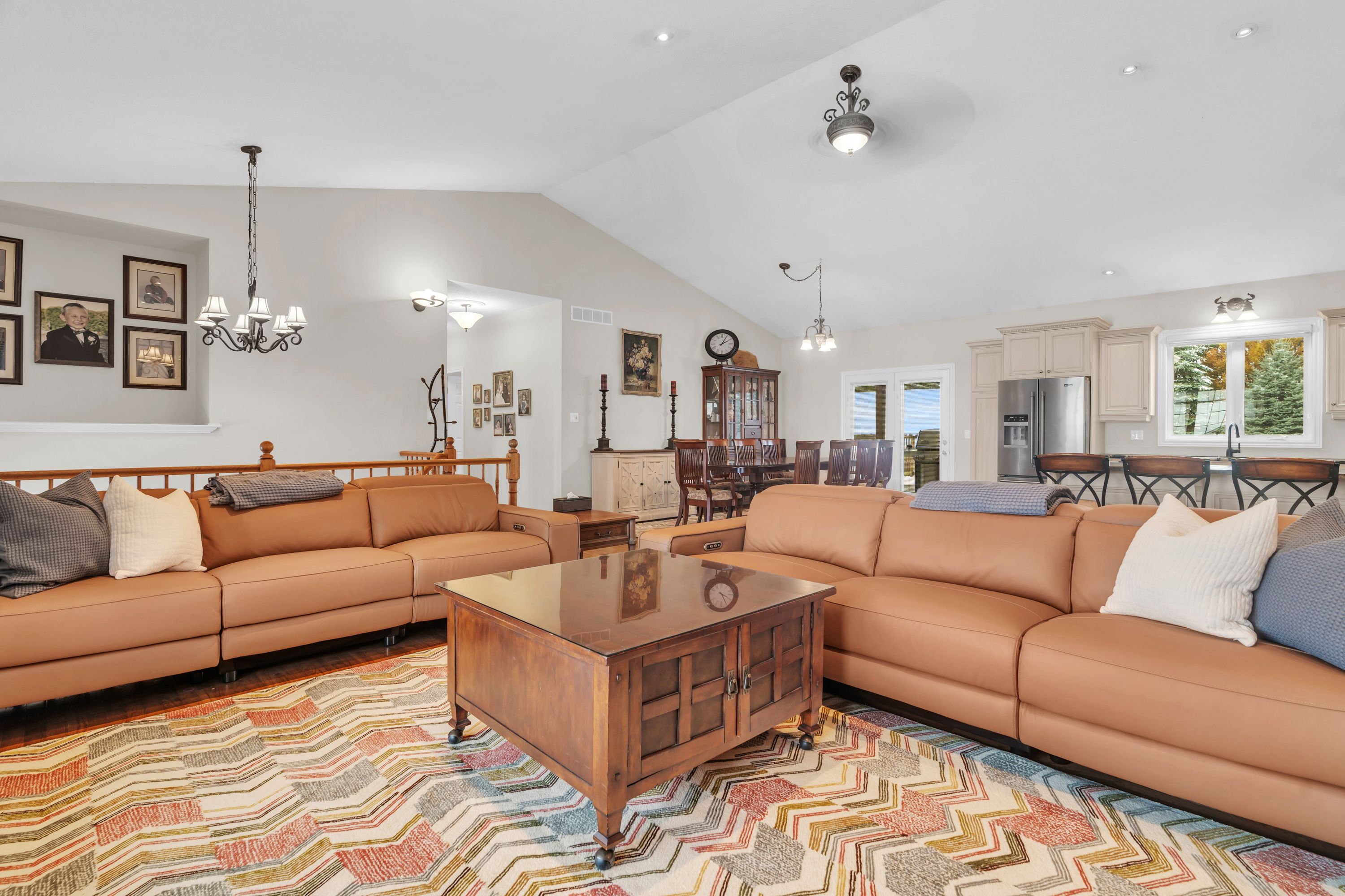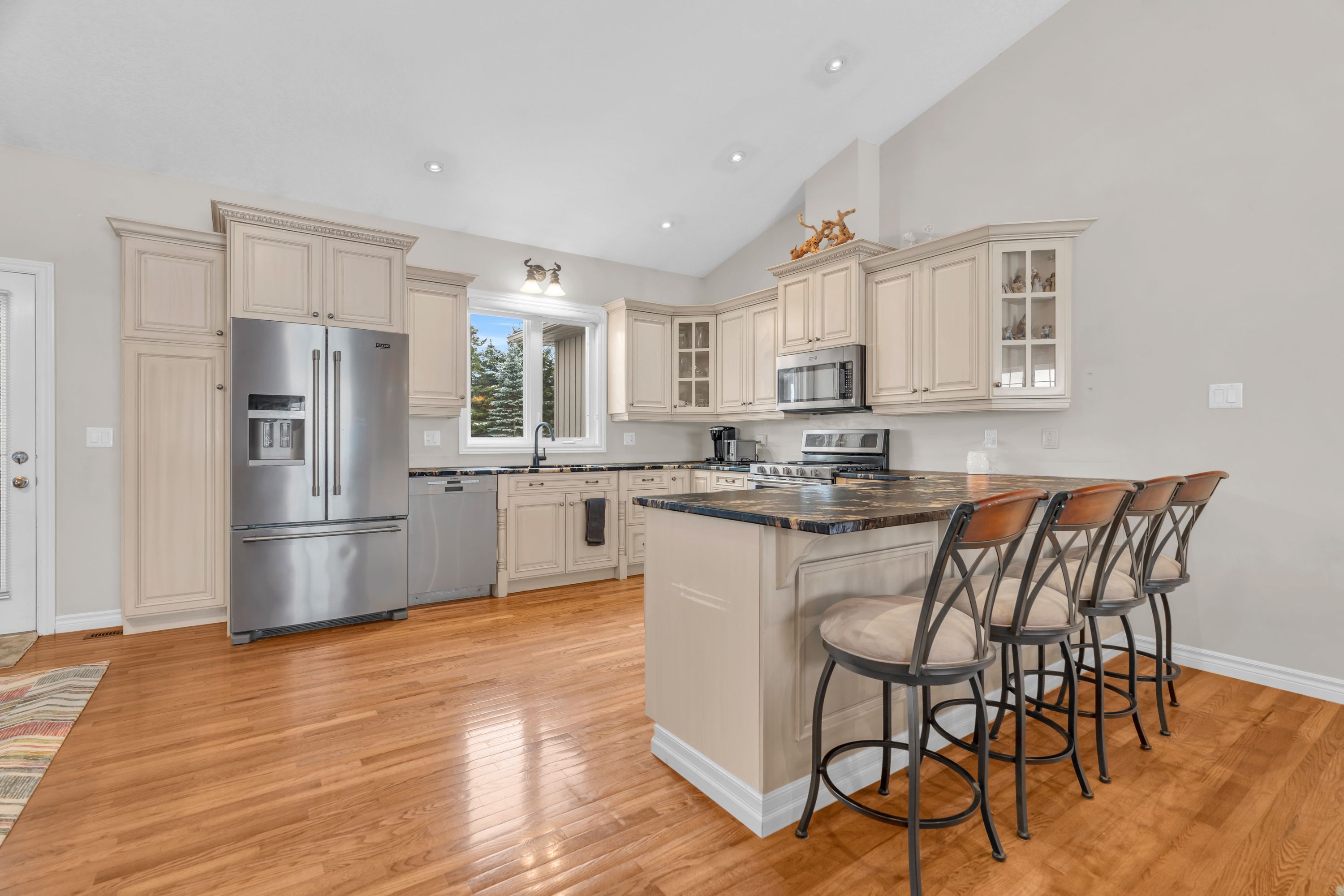• Open-concept design with vaulted ceilings and updated kitchen for modern living.