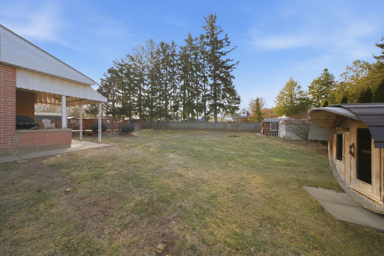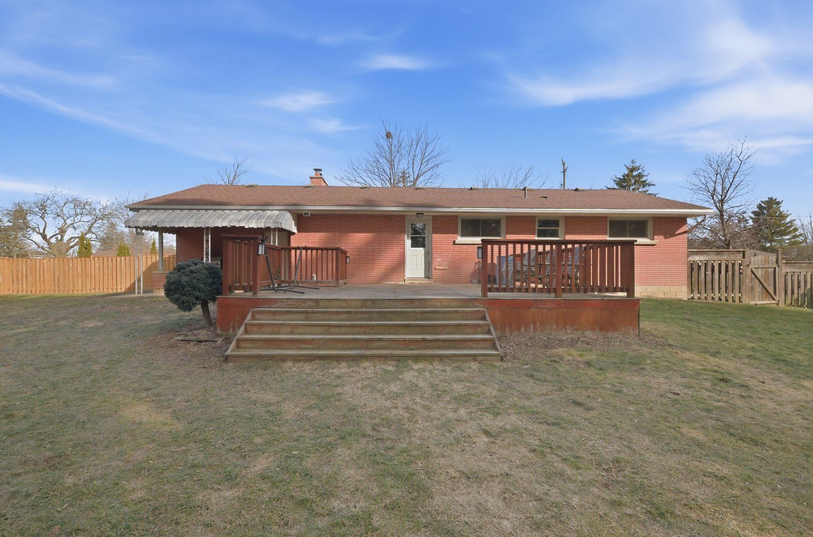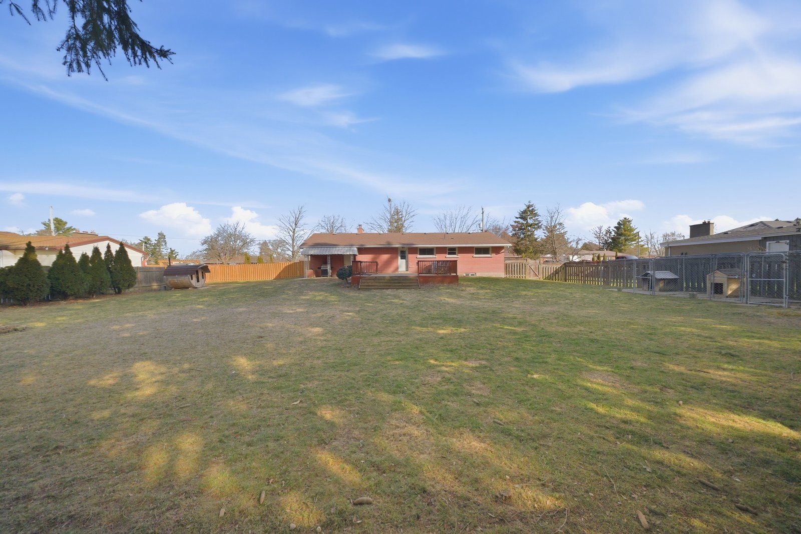 • Fully fenced backyard with a large wooden deck for outdoor entertaining.