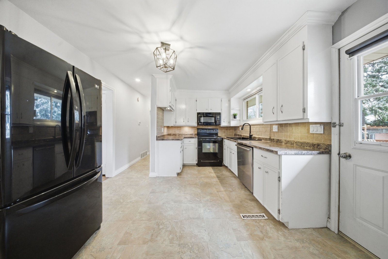 • Functional kitchen with ample cupboard space and easy backyard access.