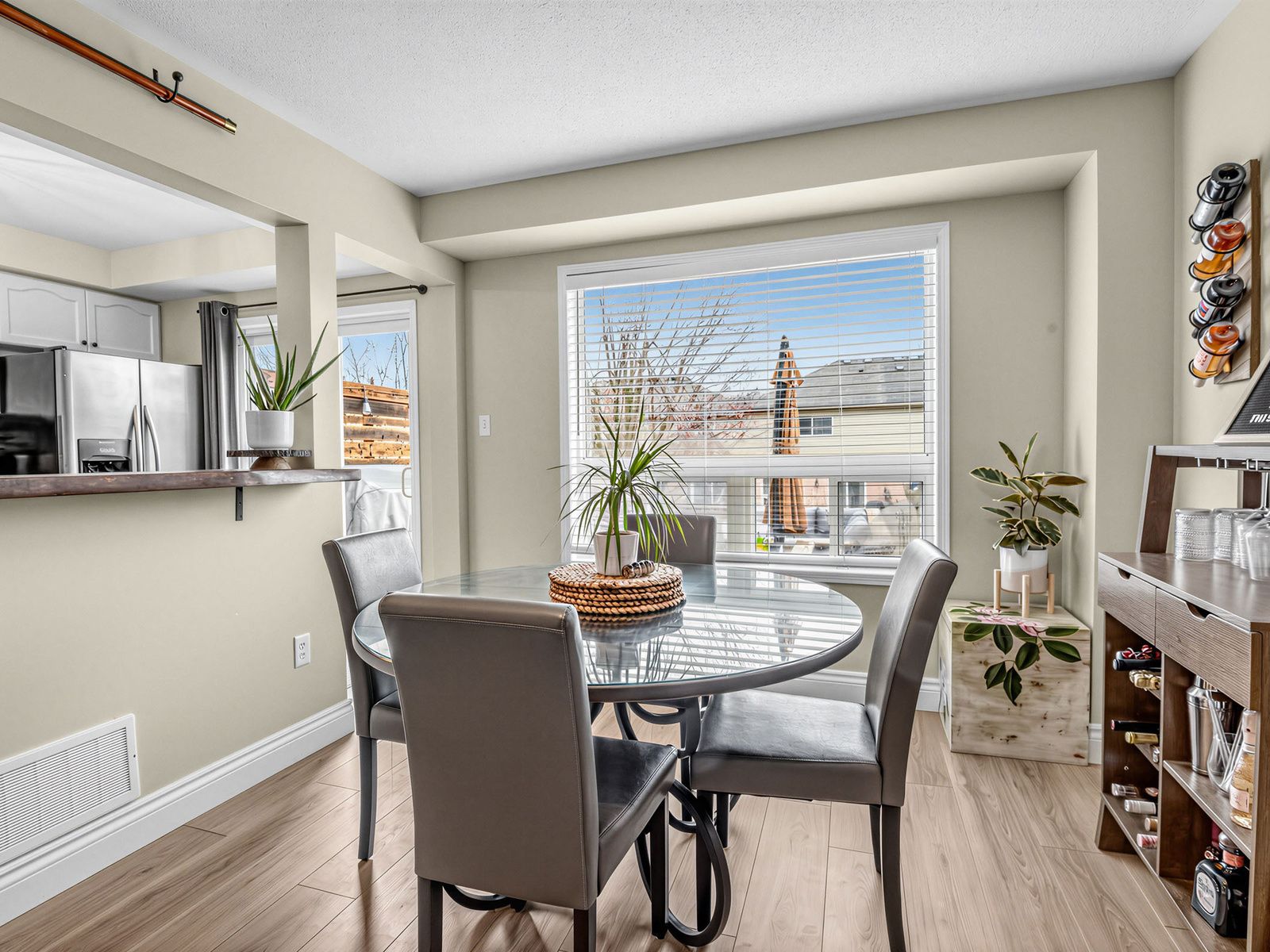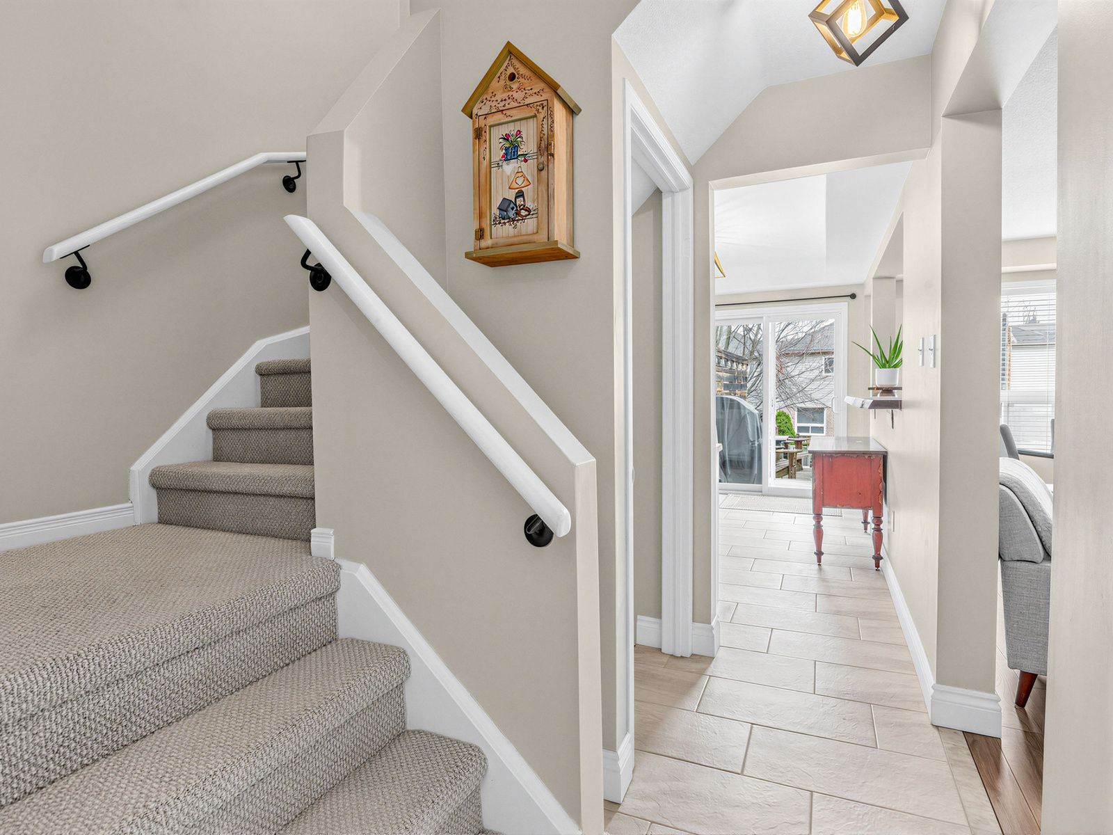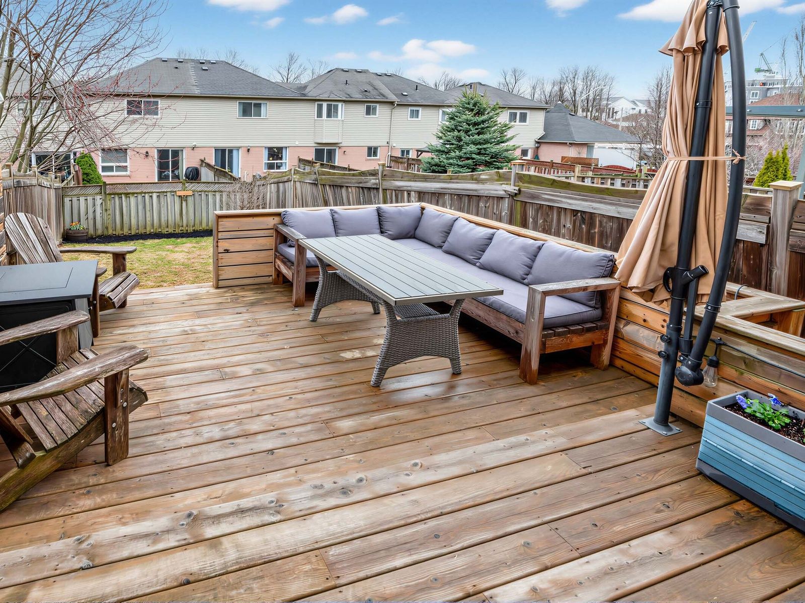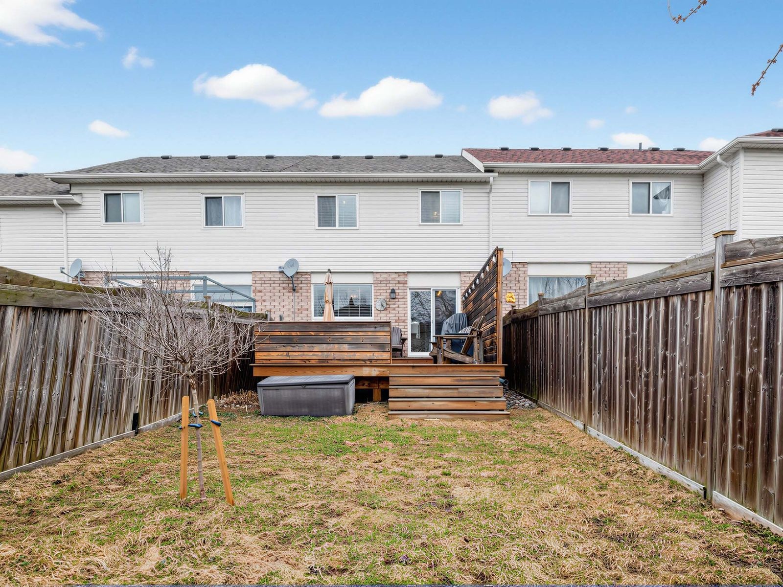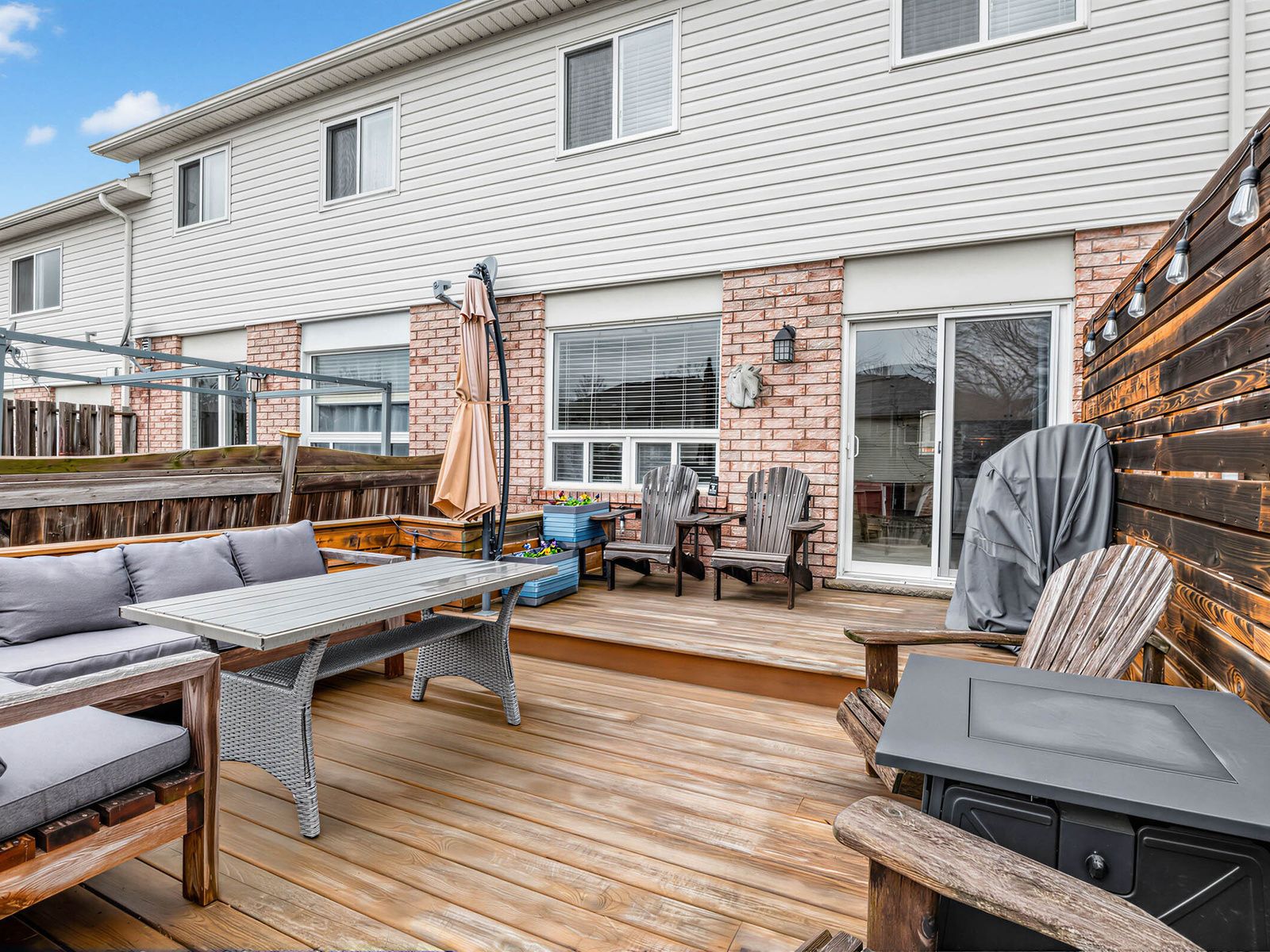 Welcome to this beautifully and meticulously maintained freehold townhouse located on a quiet cul-de-sac, offering the perfect blend of comfort, space, and functionality-ideal for first-time buyers or growing families. The main level features a bright, open-concept living and dining area, perfect for both everyday living and entertaining. The kitchen is equipped with stainless steel appliances, durable tile flooring, and a convenient walk-out to a private, deep, fenced-in backyard. Enjoy outdoor living on the tiered deck, surrounded by ample privacy-an ideal setting for relaxing or hosting guests this summer. A convenient powder room completes the main floor. Upstairs, you'll find three generously sized bedrooms filled with natural light, along with a semi-ensuite 4-piece bathroom, offering both comfort and practicality for family living. The finished basement adds even more living space, complete with laminate flooring and pot lights, making it perfect for a recreation room, large home office, or entertainment area. This home also includes an attached garage with room for one vehicle plus additional storage, offering both convenience and functionality. With abundant sunlight throughout and a thoughtful layout, this property is a fantastic opportunity to own a stylish and exceptionally functional home.