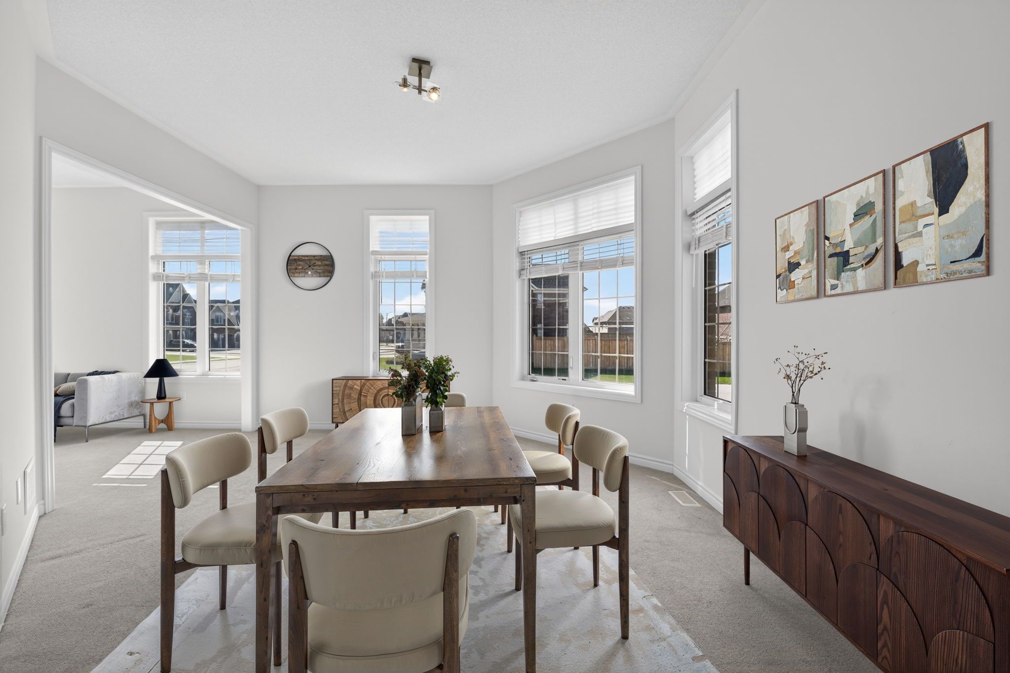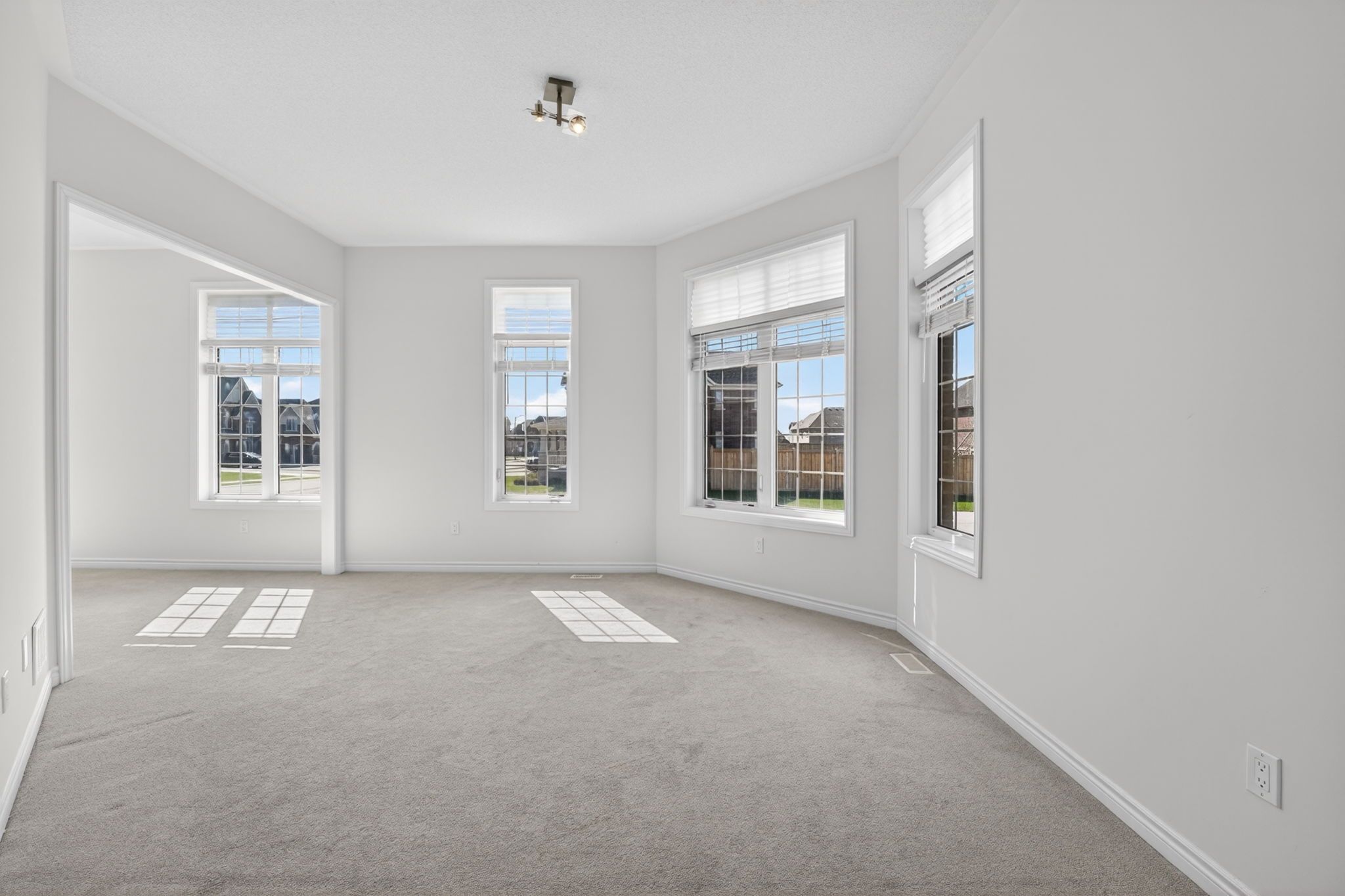 Welcome to this stunning 4200 sq. Ft. Executive home (over 6000 sq. Ft. Total potential) situated on a premium corner lot. The main floor boasts impressive 10' ceilings, a dedicated home office, and a spacious eat-in kitchen complete with stainless steel appliances, a large island with breakfast bar, and a convenient butler's pantry. The inviting family room is filled with natural light and a cozy gas fireplace, while interior access to the garage adds everyday convenience. Upstairs, you'll find 9' ceilings, four generously sized bedrooms, including a luxurious primary suite with a 5-piece ensuite and massive walk-in closet. Two bedrooms share a jack & jill bathroom, while a fourth bedroom enjoys its own private 4-piece ensuite and walk-in closet. Quiet zone insulation between rooms enhances comfort and privacy. Designed with versatility in mind, the home's basement features a separate double door entrance, 9' ceilings, large windows, plumbing rough-ins for two 3-piece bathrooms and separate wet bar - ideal for a future in-law suite or multi-generational living. Additional highlights include a tandem 3-car garage, space for 6 vehicles in the driveway (9 total parking), ev charging rough-in, 200 amp electrical service, gas bbq line, and hot/cold water taps in both the garage and backyard. Ideally located near scenic walking trails, parks with tennis, pickleball, and basketball courts, as well as close proximity to golf courses and ski hills, this home offers the perfect blend of luxury, functionality, and lifestyle.