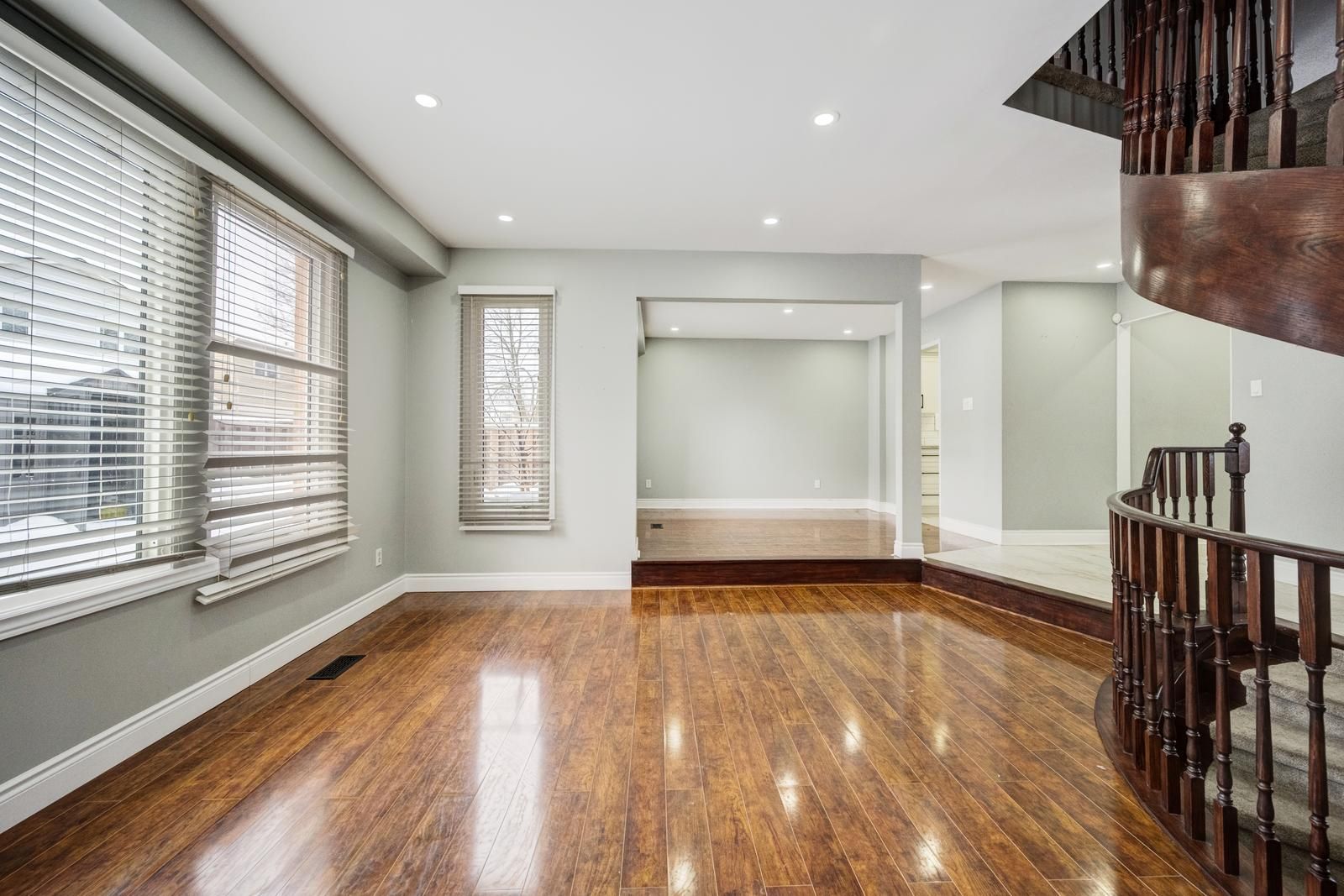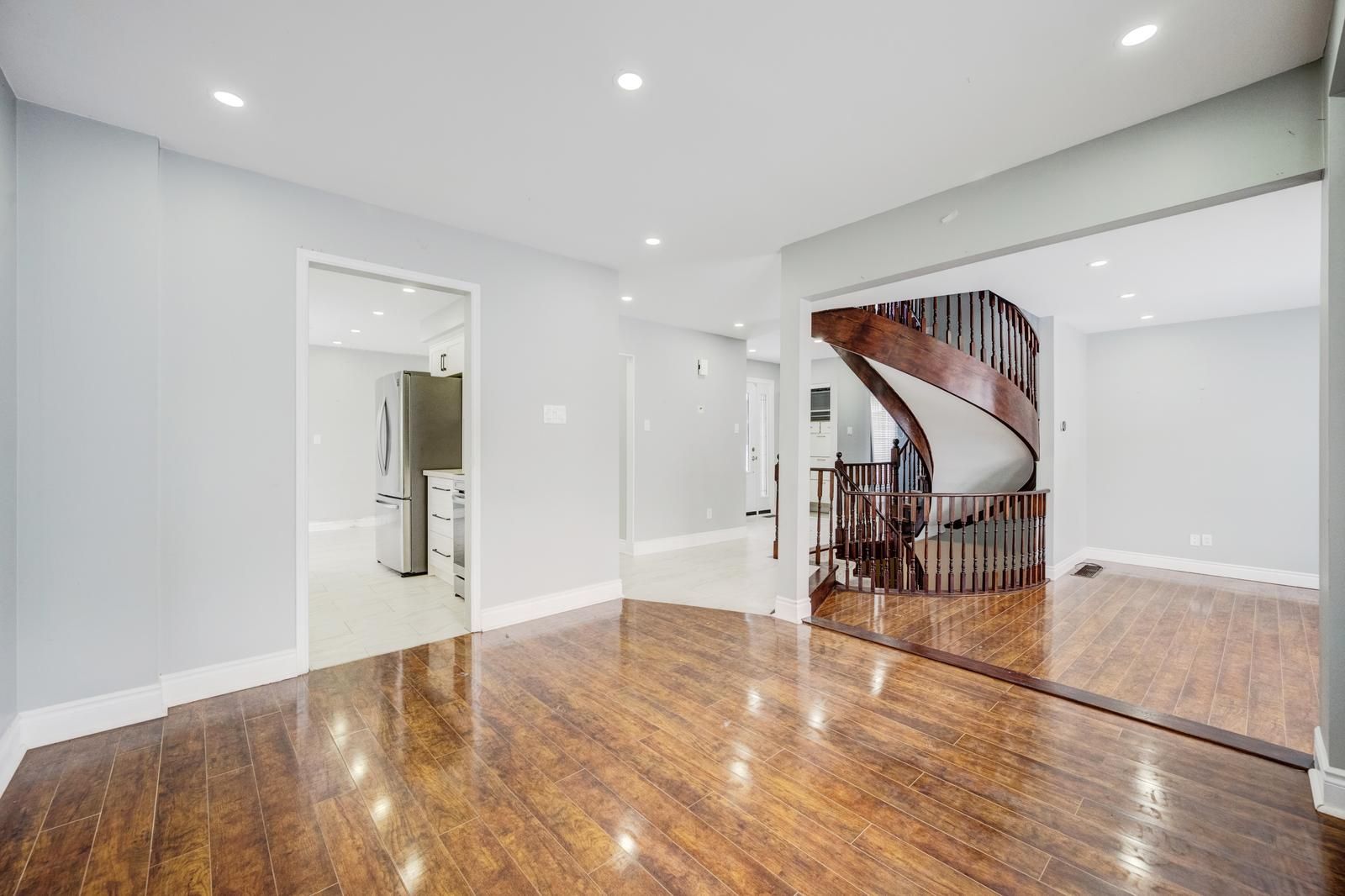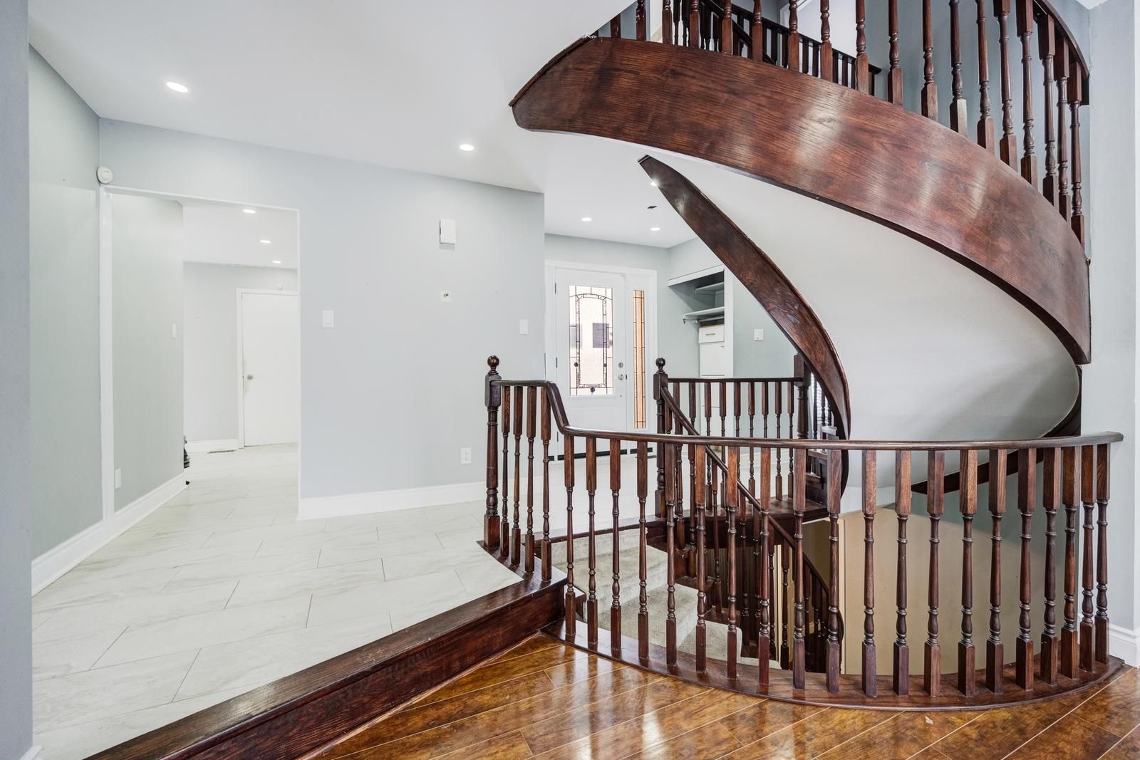 • Oak spiral staircase is a stunning focal point on the main floor.