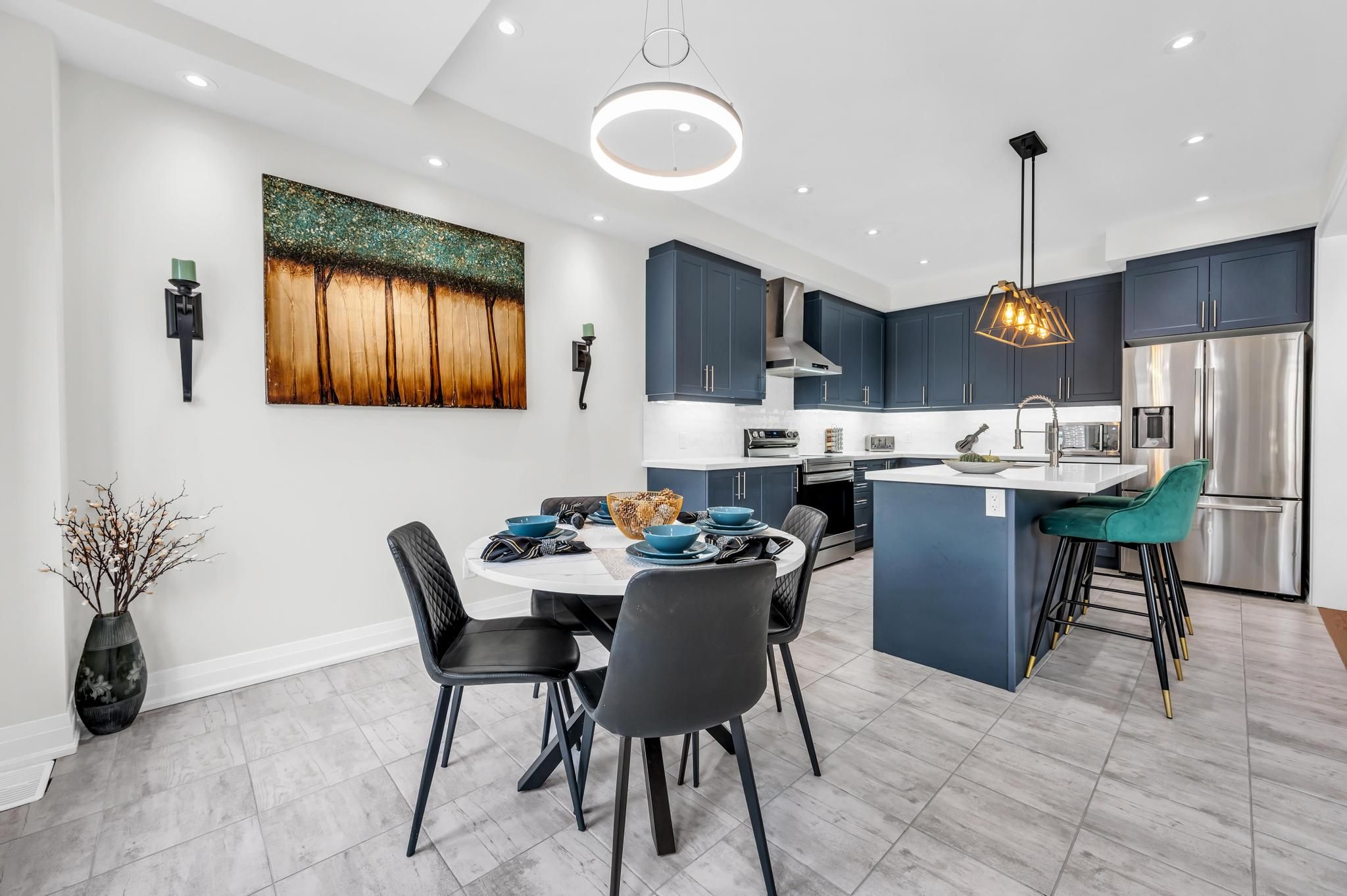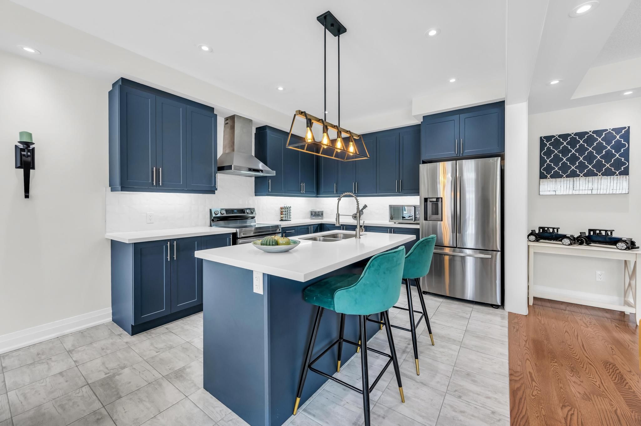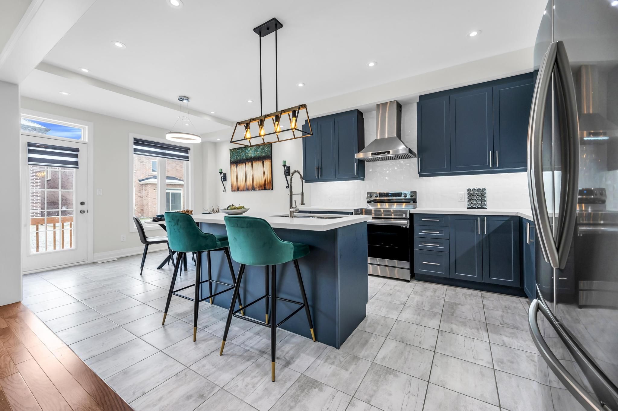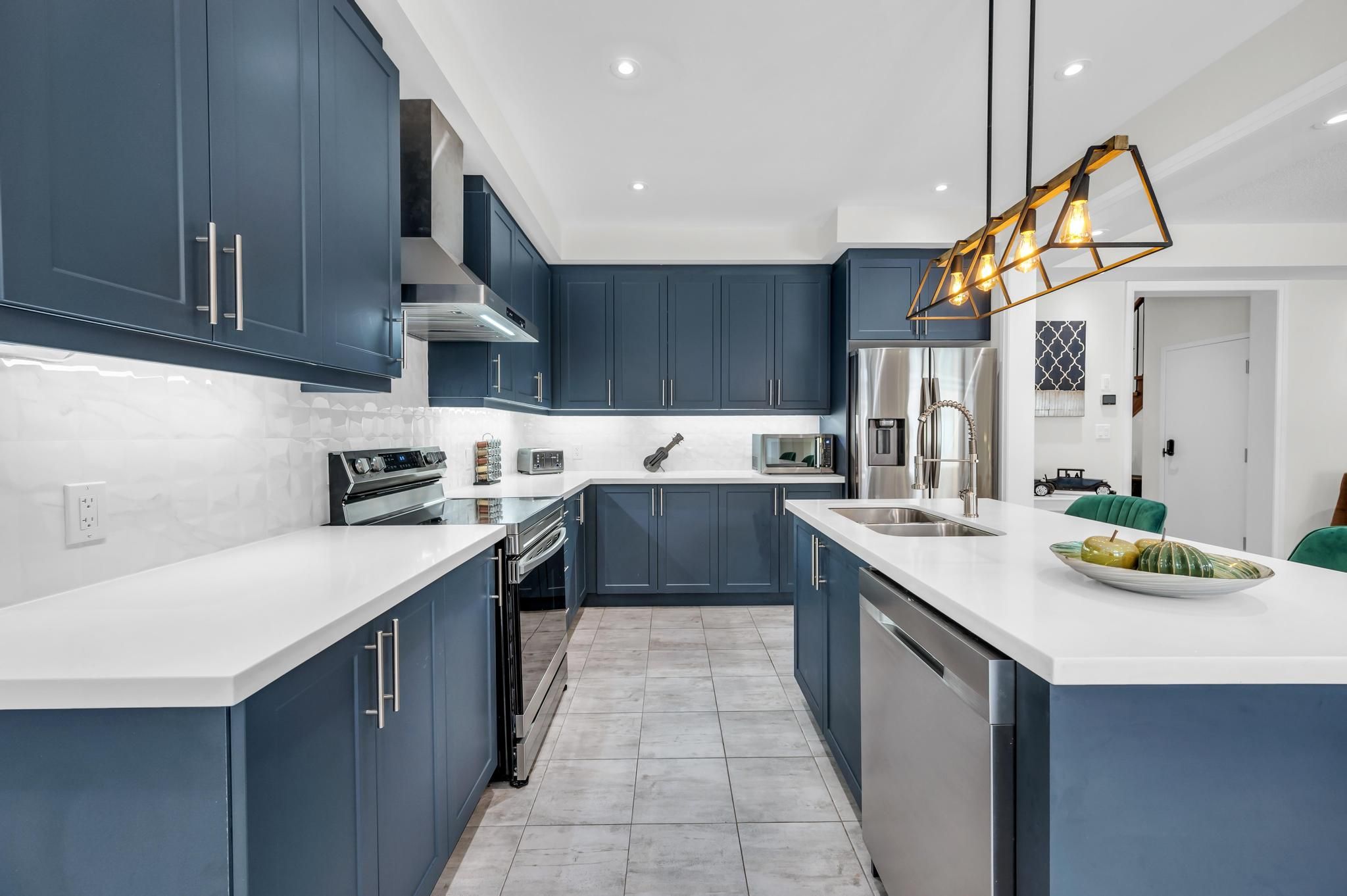 • Modern kitchen with premium stainless steel appliances for easy meal prep.