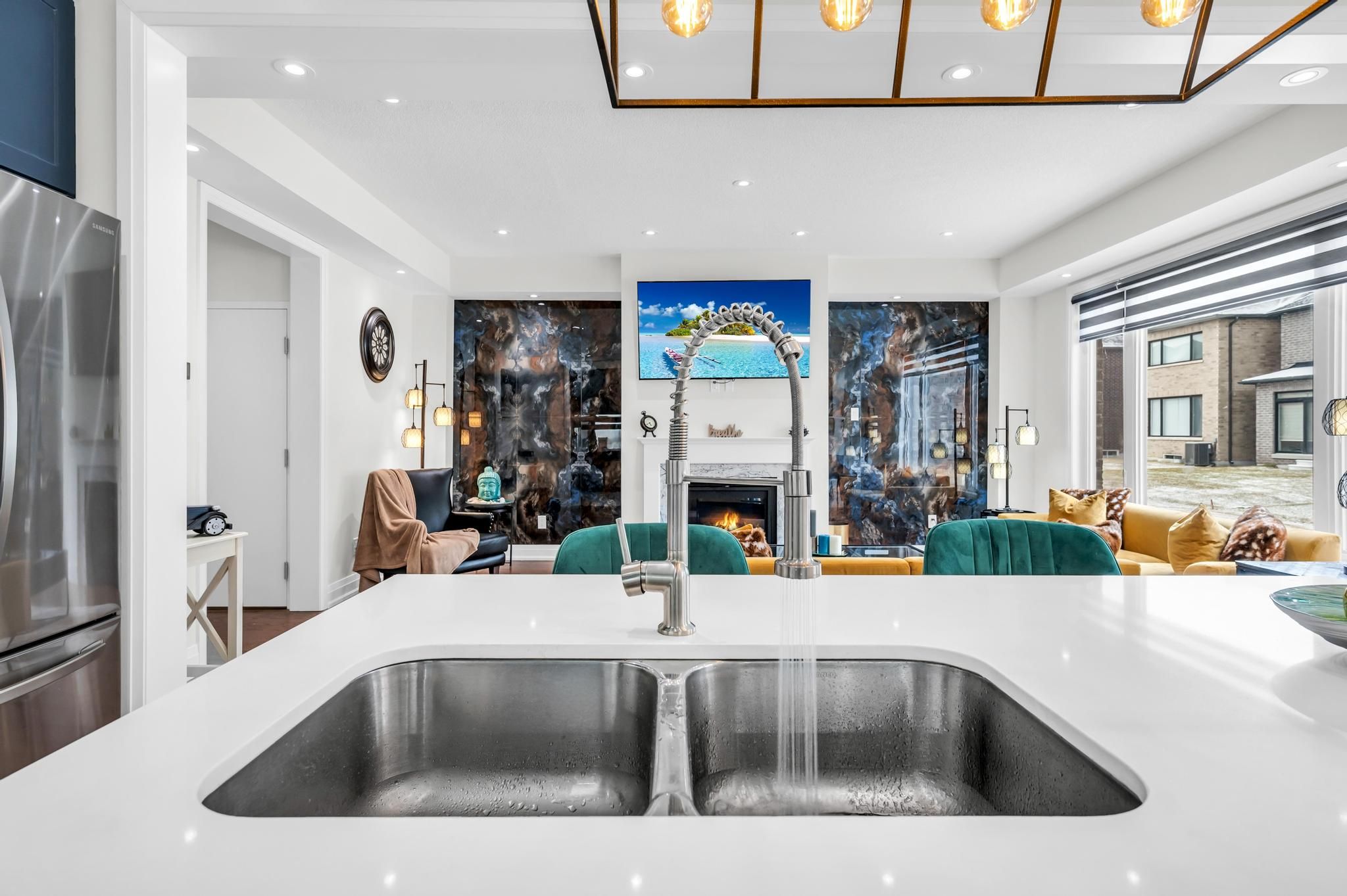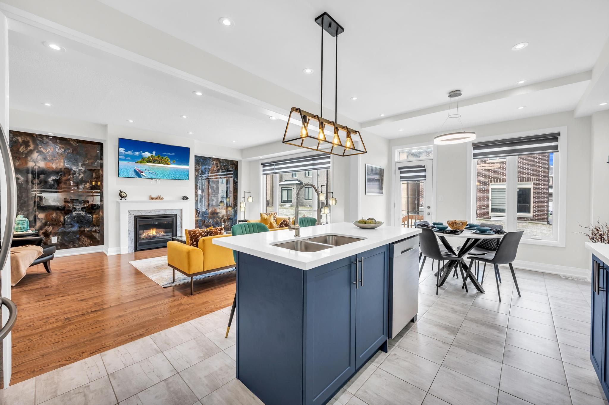 • Open concept design seamlessly connects kitchen and family room.