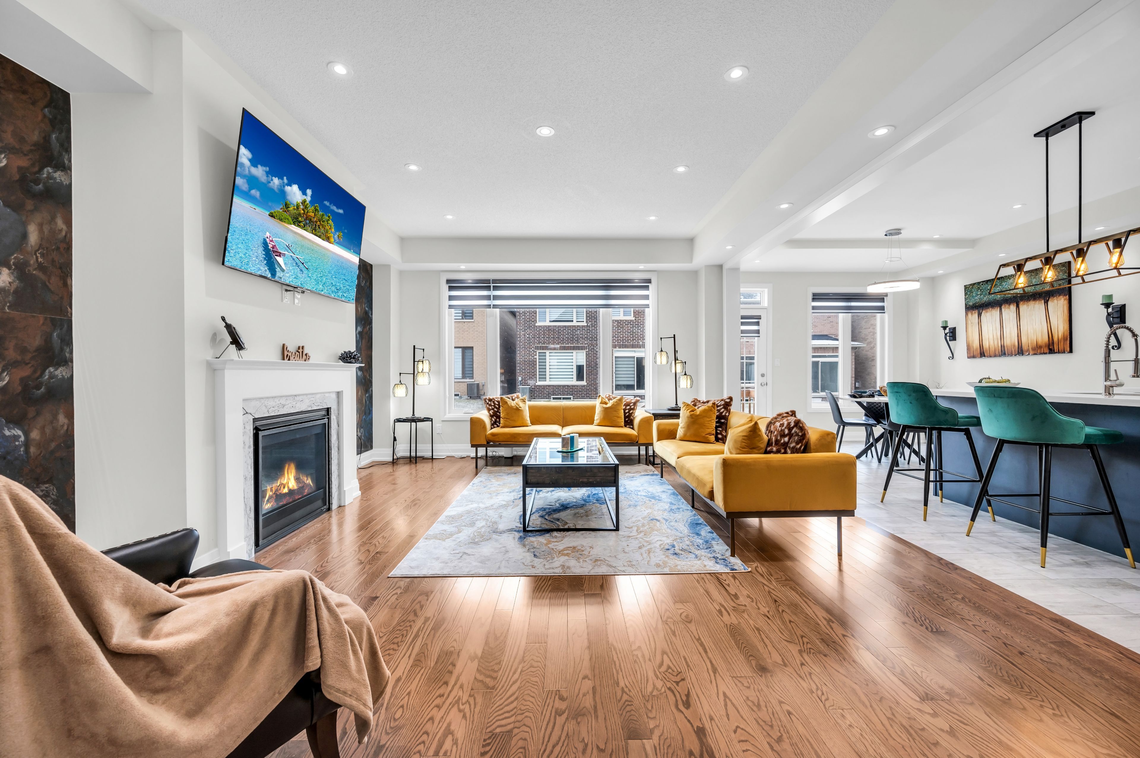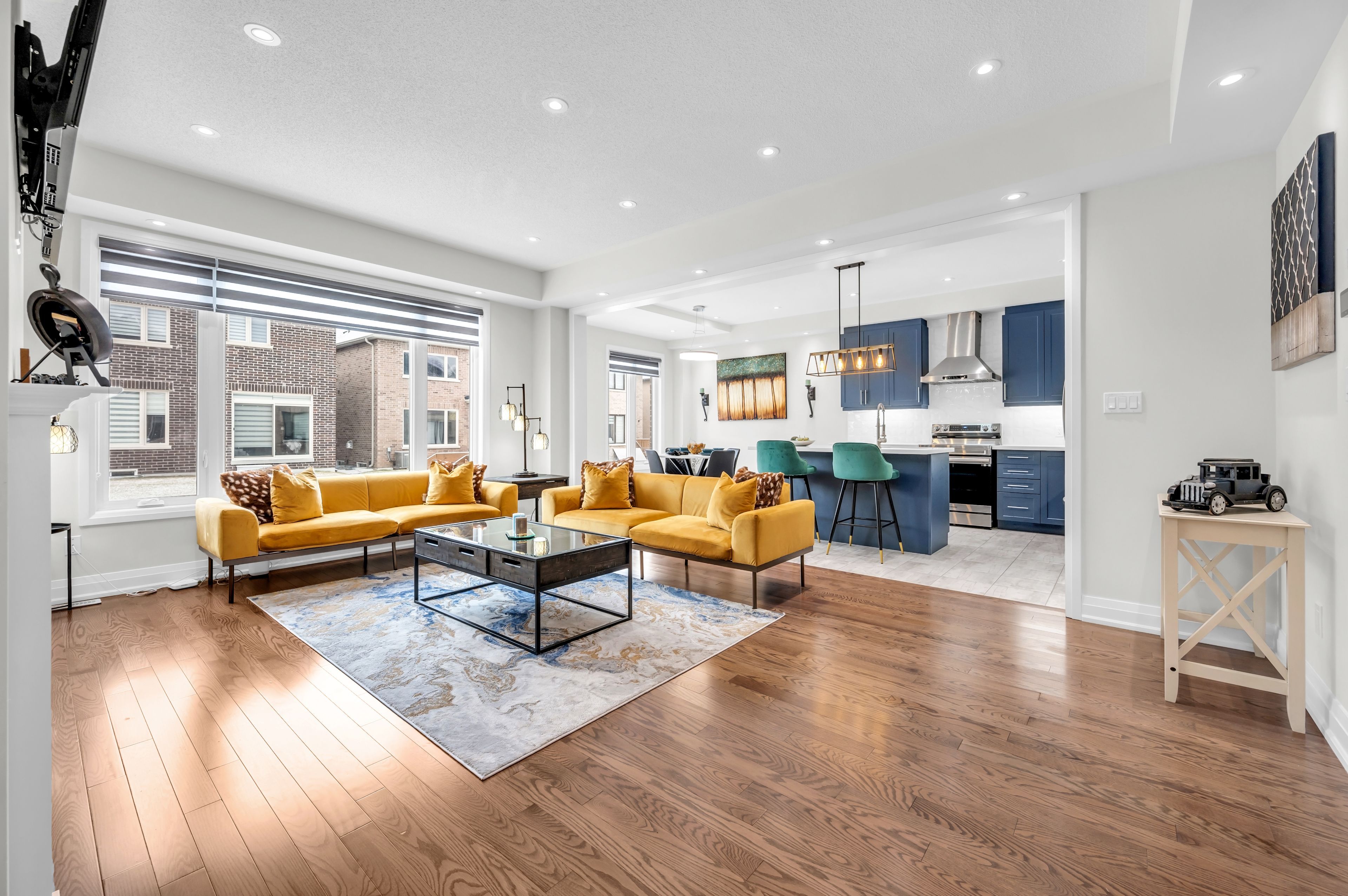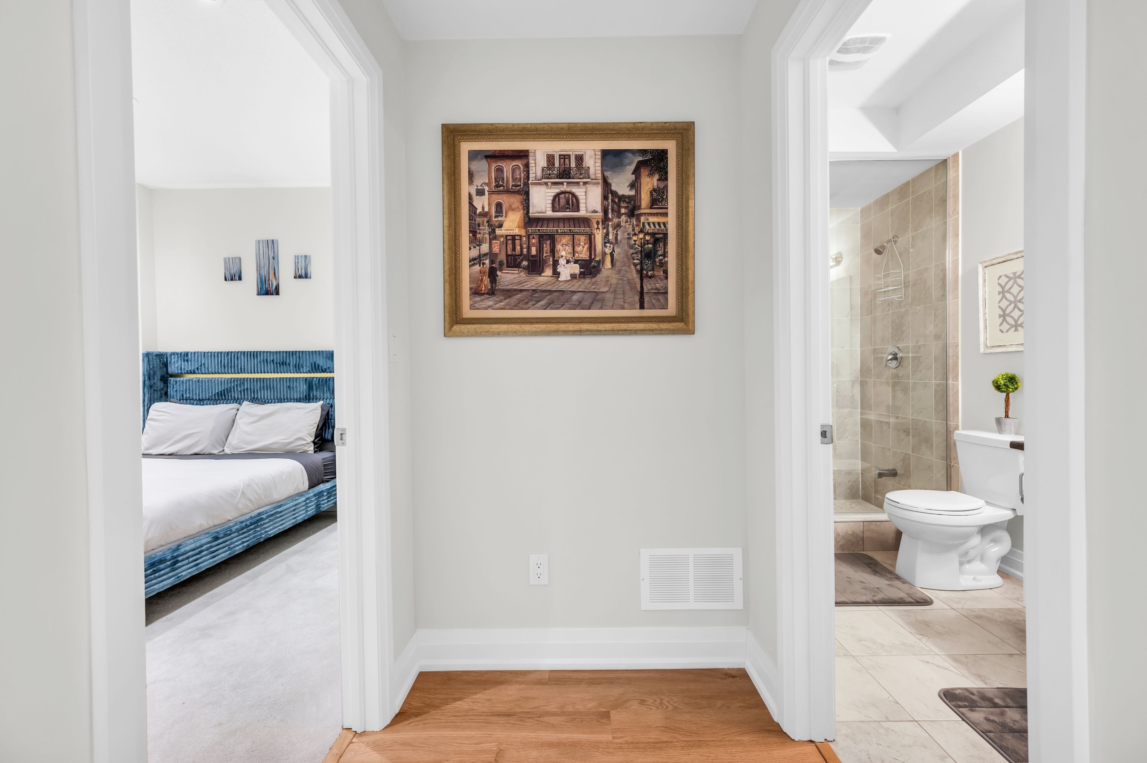 • High ceilings and hardwood flooring create a luxurious feel throughout.