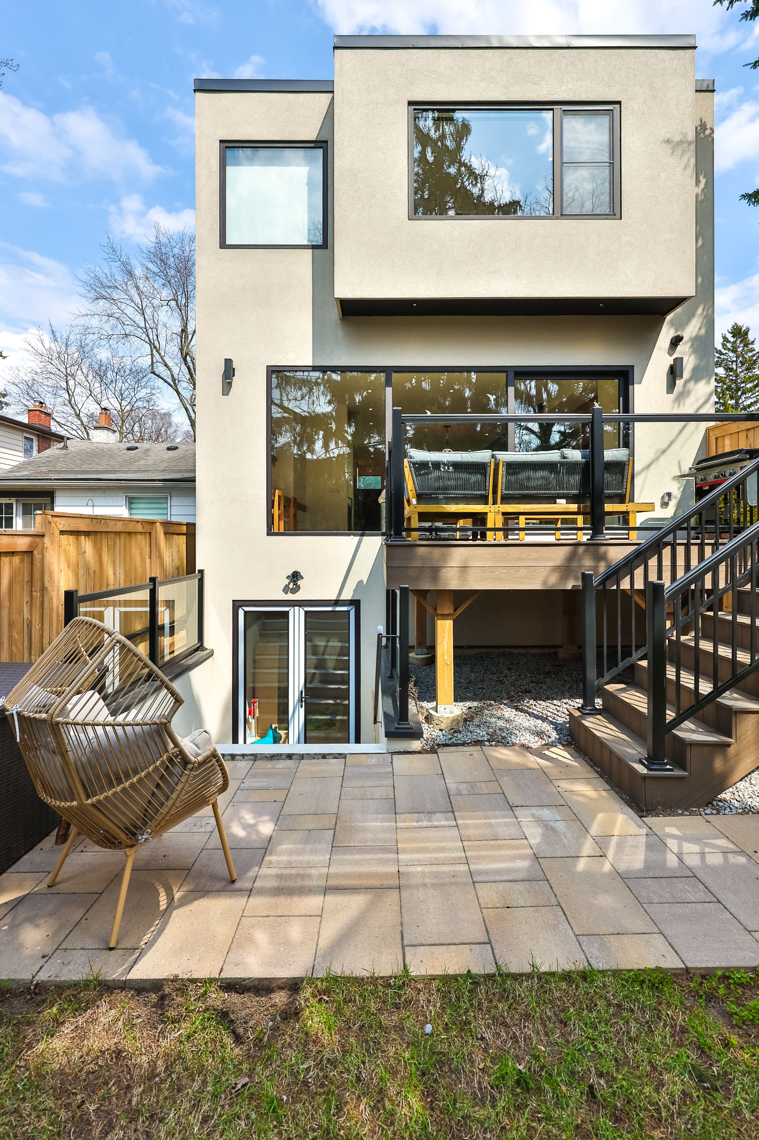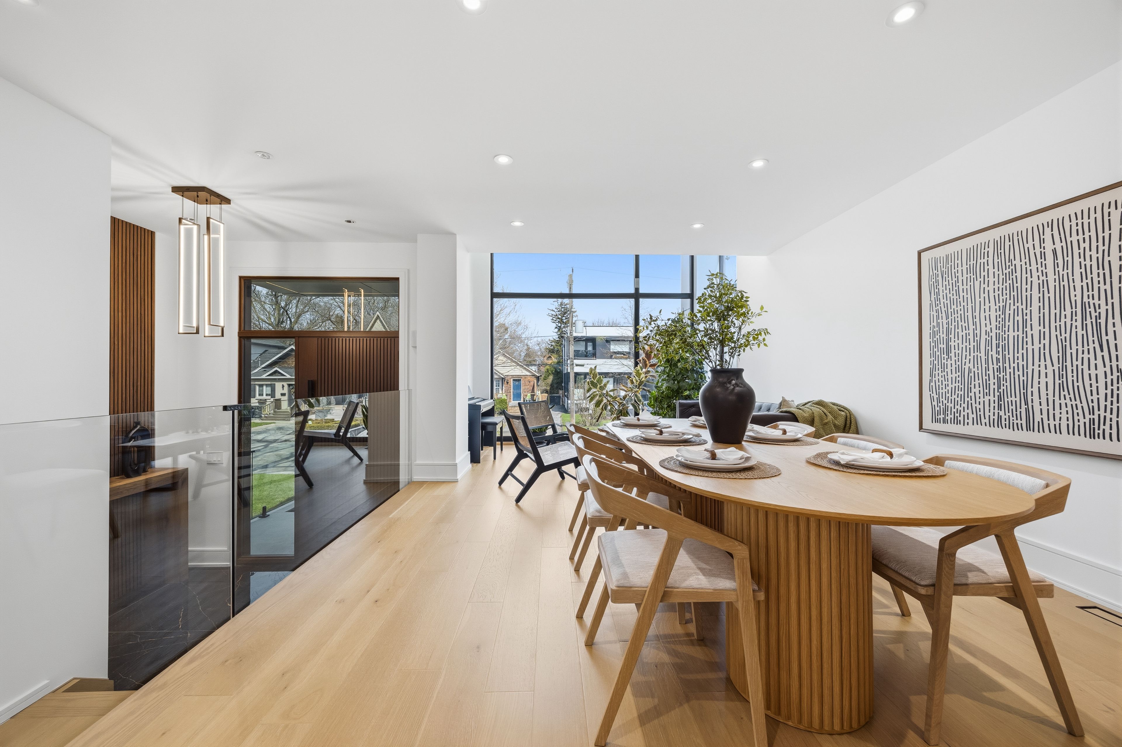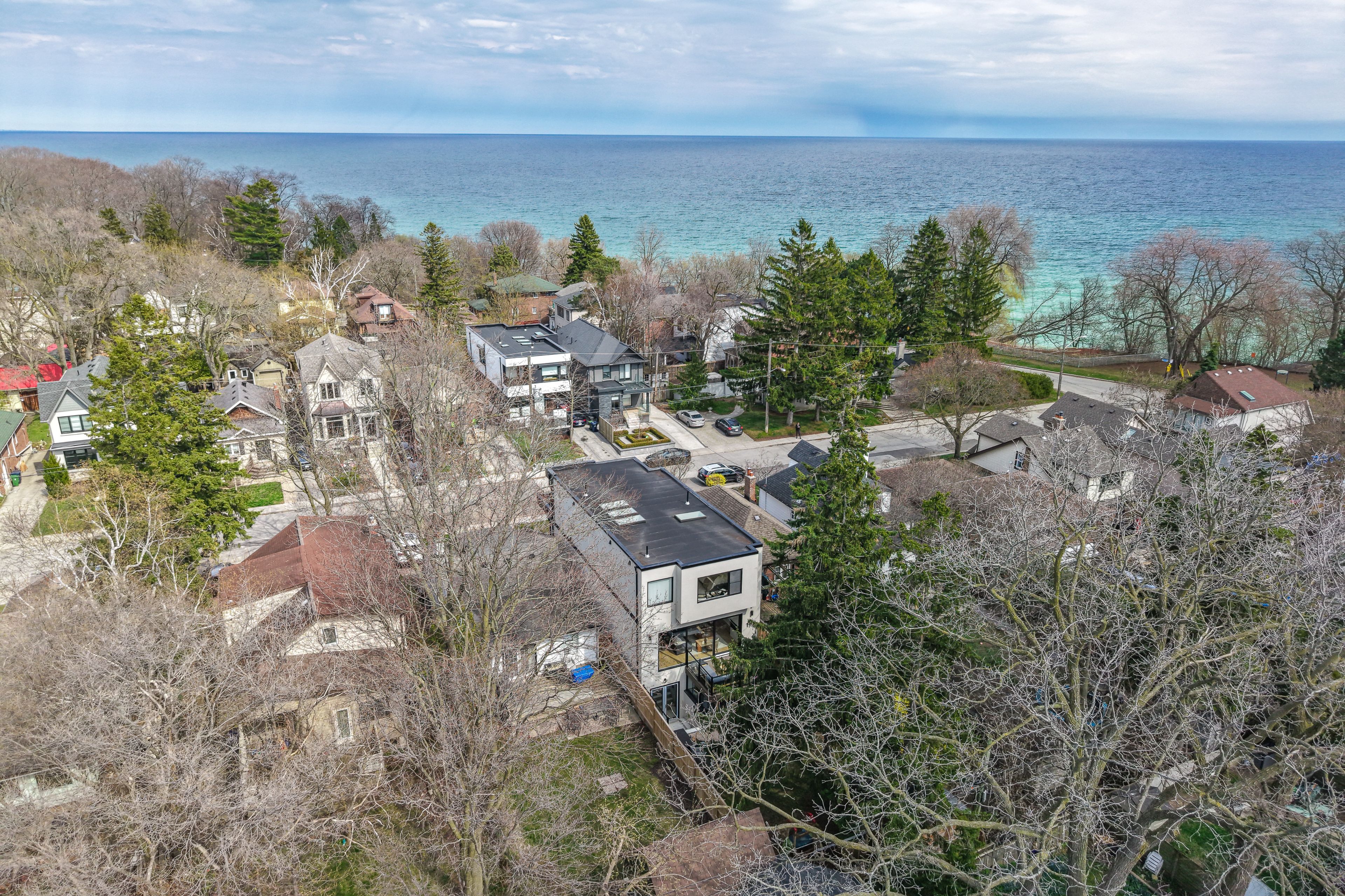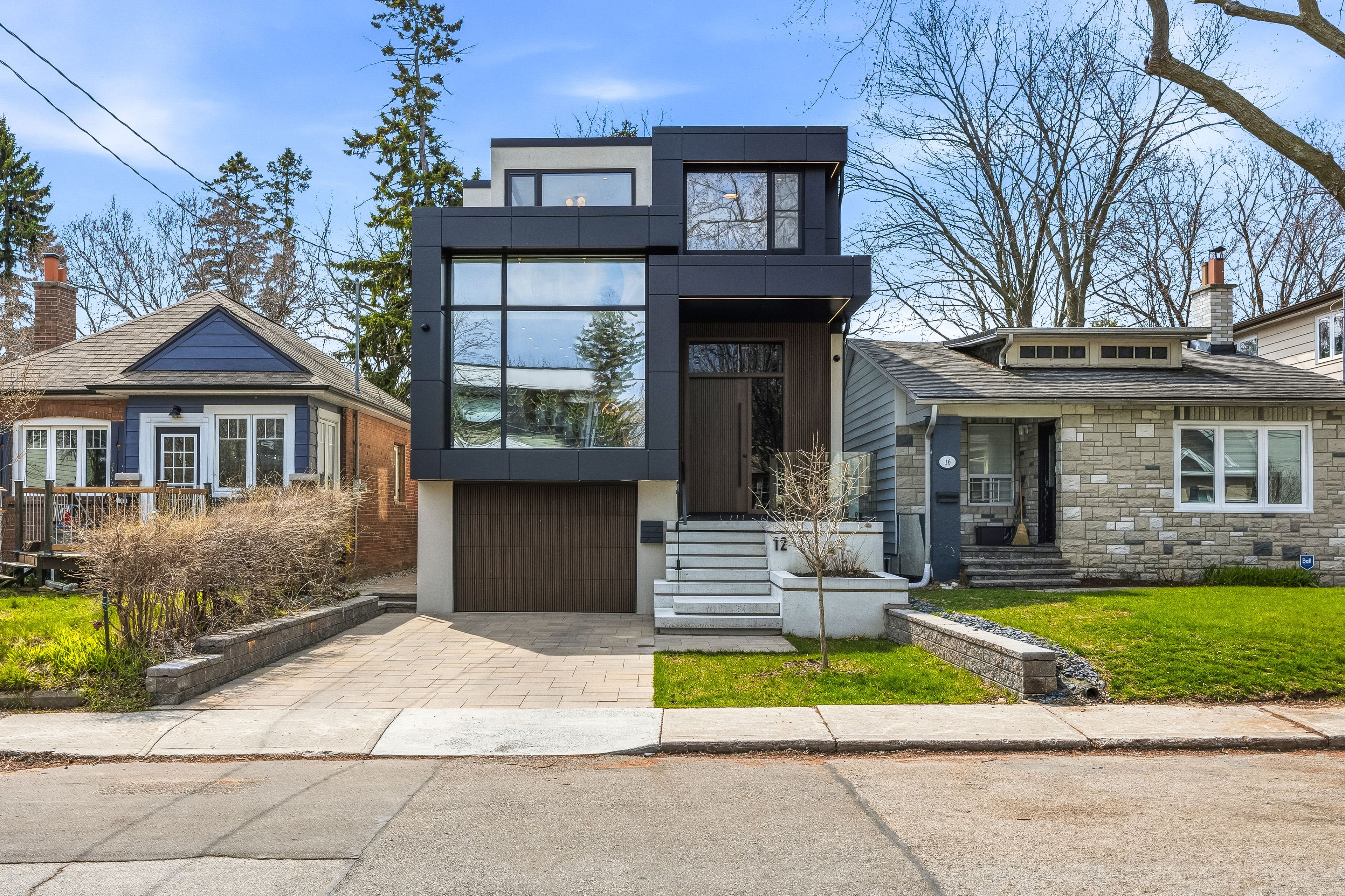Custom-built in 2024, this contemporary detached home is set within a quiet enclave south of kingston rd in the highly desirable beaches-birchcliff neighbourhood, offering views of lake ontario and a seamless connection to nature. Spanning 3,605 sq ft of finished living space, including a walk-out basement, the home is designed for modern luxury family living, where architecture, interiors, and everyday function come together effortlessly. Defined by clean lines, expansive windows, and refined materials, the open-concept main floor is filled with natural light. Sunlit living, dining, and family spaces flow seamlessly, enhanced by soaring ceilings, skylights, and custom built-ins that create a calm, timeless atmosphere for daily life and entertaining. The chef's kitchen anchors the home, featuring premium monogram appliances, custom floor-to-ceiling cabinetry, a built-in appliance garage, and a striking 10-ft centre island. A standout feature is the executive office overlooking the lake, a sophisticated workspace with panoramic water views and a quiet setting for focused work. Upstairs, four spacious bedrooms offer comfort and privacy, including a serene primary retreat with a scandinavian-inspired five-piece ensuite and a walk-in closet with skylight. The finished walk-out basement adds versatility with 12-ft ceilings, oversized windows, and a guest bedroom ideal for extended family stays. Additional features include an attached garage, tesla ev charger, smart home system with a dedicated server room, two laundry options, and professionally designed stone landscaping. Located minutes from the beach, parks, trails, schools, transit, shops, and restaurants. This is modern luxury family living. Welcome to 12 valhalla blvd !