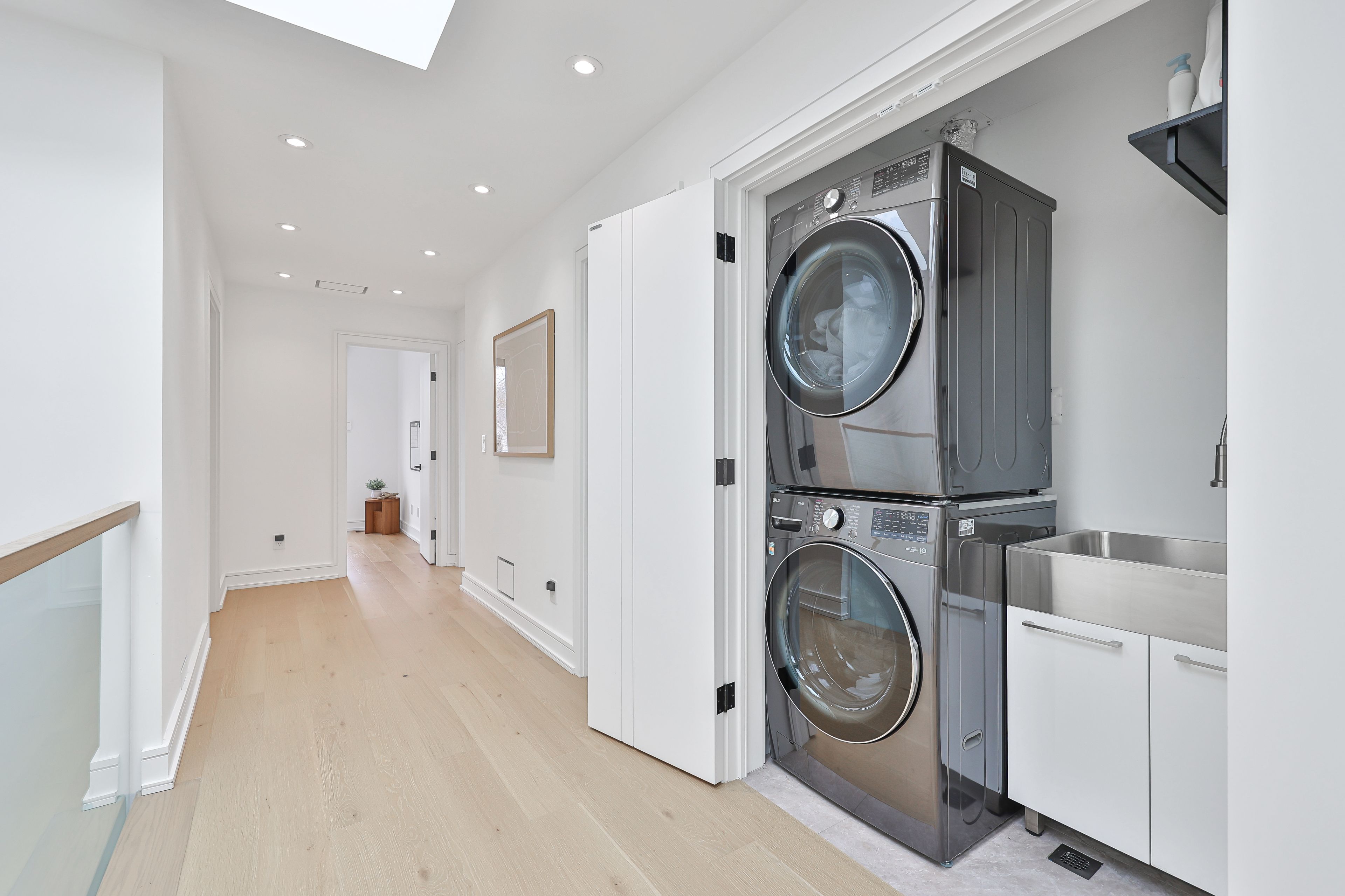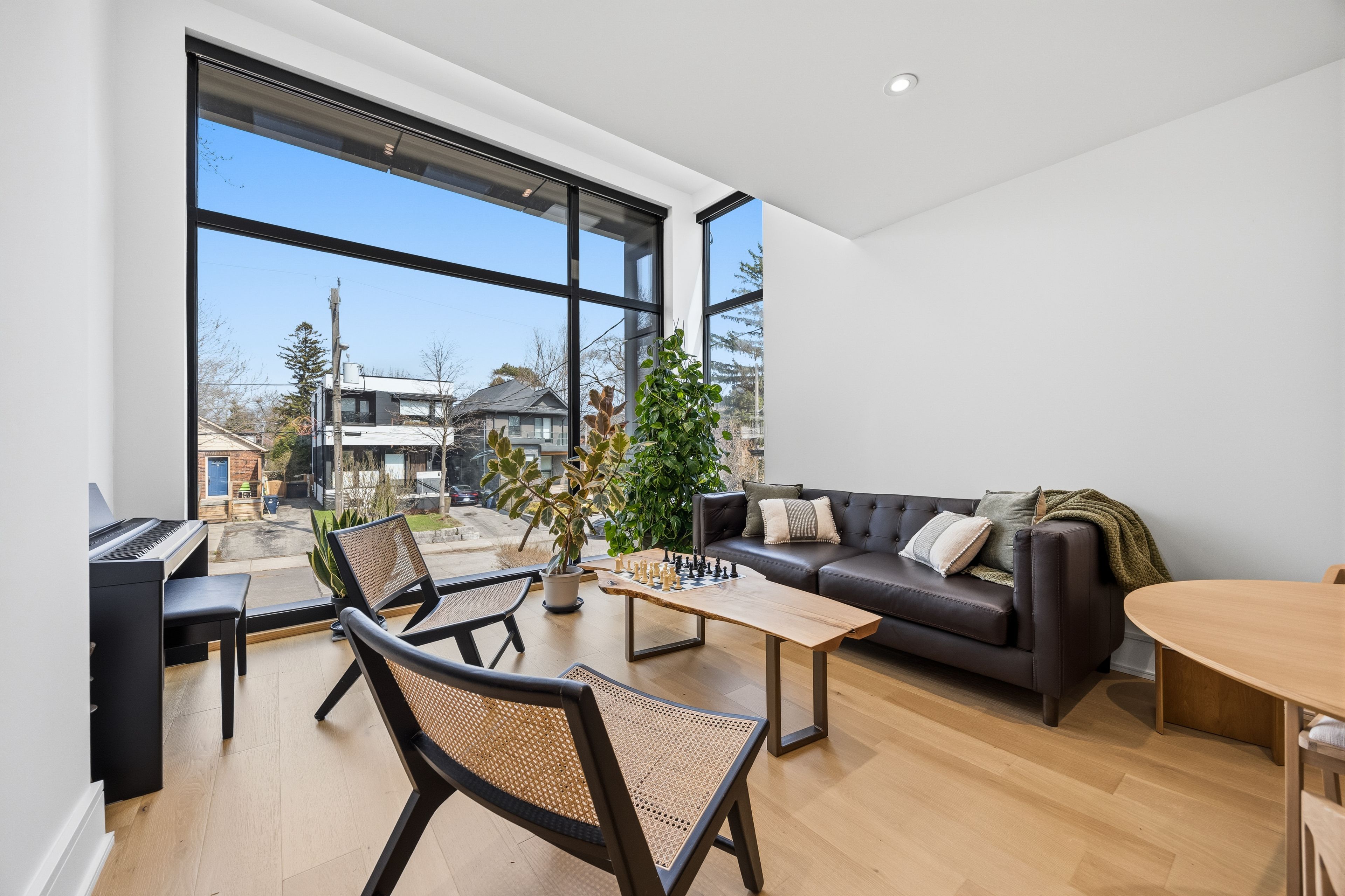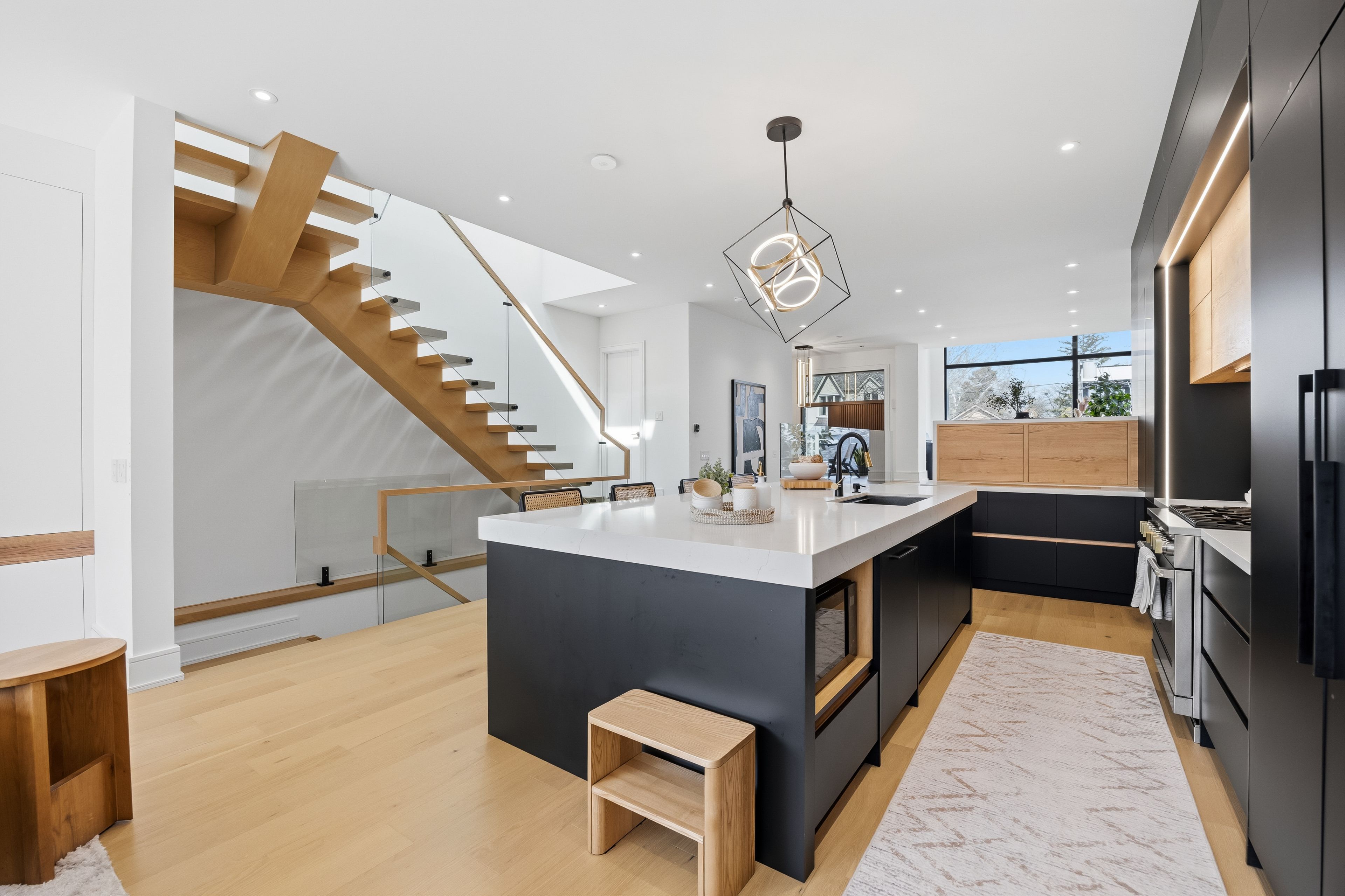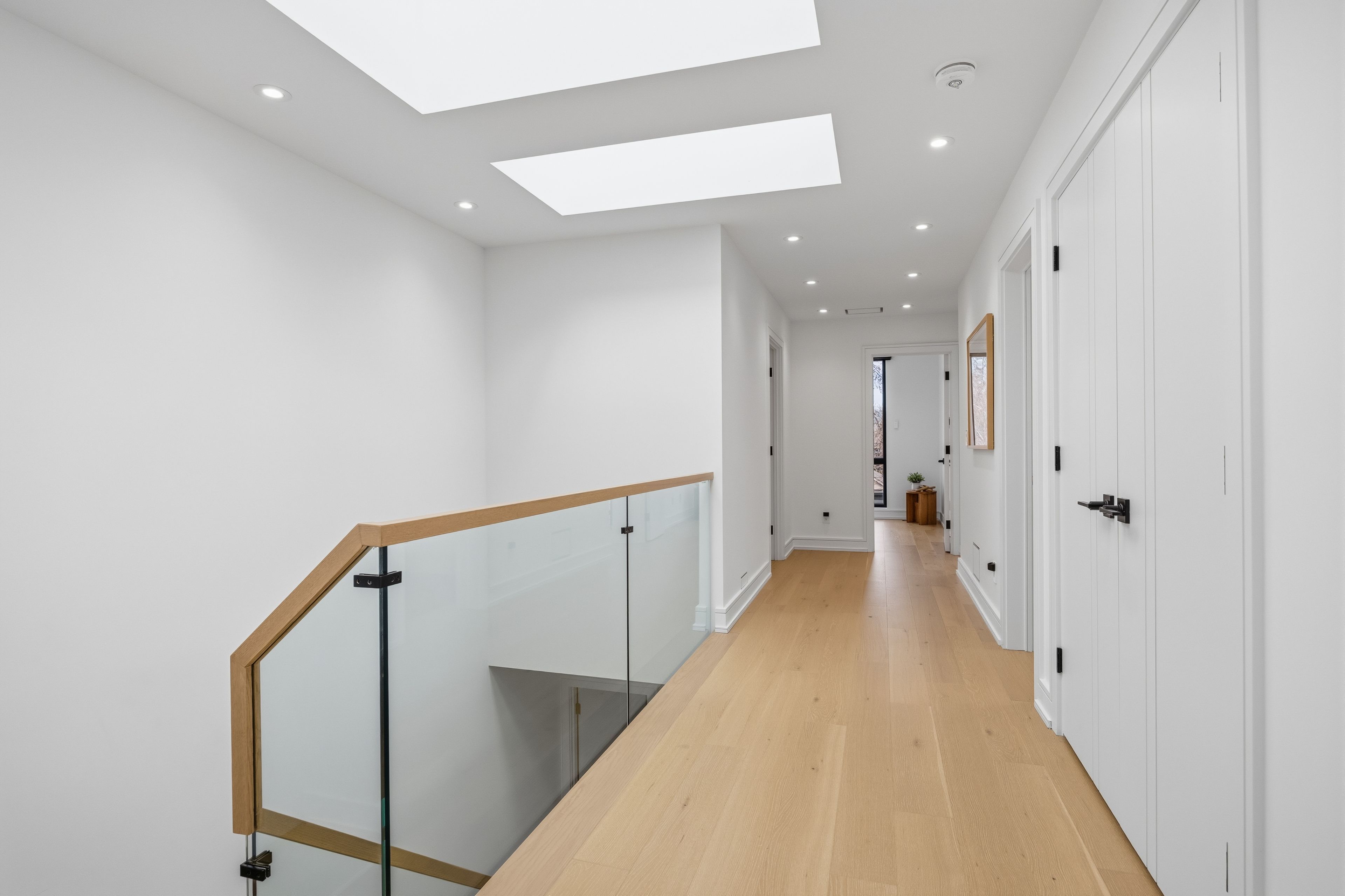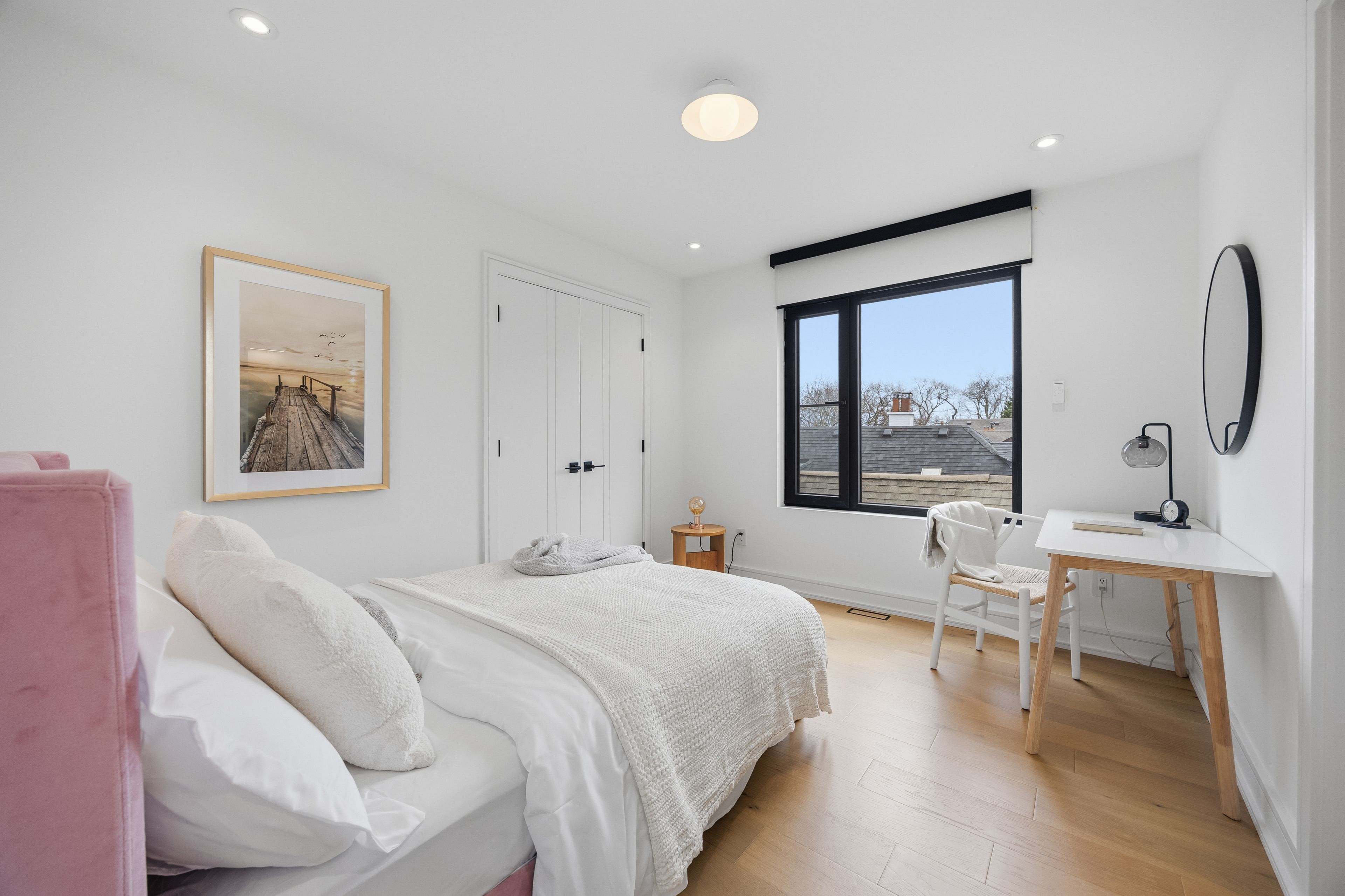 Custom-built in 2024, this contemporary detached home is set within a quiet enclave south of kingston rd in the highly desirable beaches-birchcliff neighbourhood, offering views of lake ontario and a seamless connection to nature. Spanning 3,605 sq ft of finished living space, including a walk-out basement, the home is designed for modern luxury family living, where architecture, interiors, and everyday function come together effortlessly. Defined by clean lines, expansive windows, and refined materials, the open-concept main floor is filled with natural light. Sunlit living, dining, and family spaces flow seamlessly, enhanced by soaring ceilings, skylights, and custom built-ins that create a calm, timeless atmosphere for daily life and entertaining. The chef's kitchen anchors the home, featuring premium monogram appliances, custom floor-to-ceiling cabinetry, a built-in appliance garage, and a striking 10-ft centre island. A standout feature is the executive office overlooking the lake, a sophisticated workspace with panoramic water views and a quiet setting for focused work. Upstairs, four spacious bedrooms offer comfort and privacy, including a serene primary retreat with a scandinavian-inspired five-piece ensuite and a walk-in closet with skylight. The finished walk-out basement adds versatility with 12-ft ceilings, oversized windows, and a guest bedroom ideal for extended family stays. Additional features include an attached garage, tesla ev charger, smart home system with a dedicated server room, two laundry options, and professionally designed stone landscaping. Located minutes from the beach, parks, trails, schools, transit, shops, and restaurants. This is modern luxury family living. Welcome to 12 valhalla blvd !