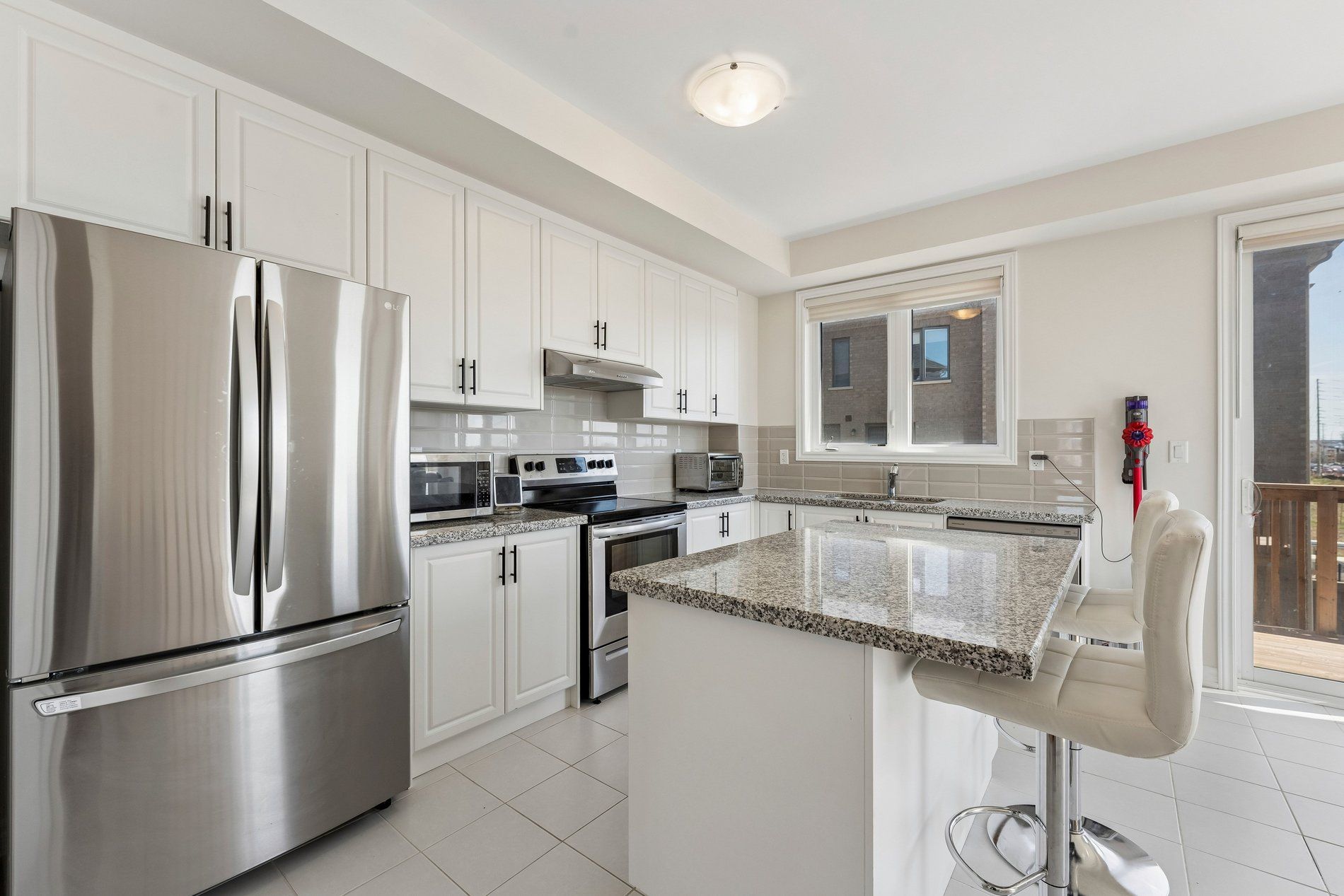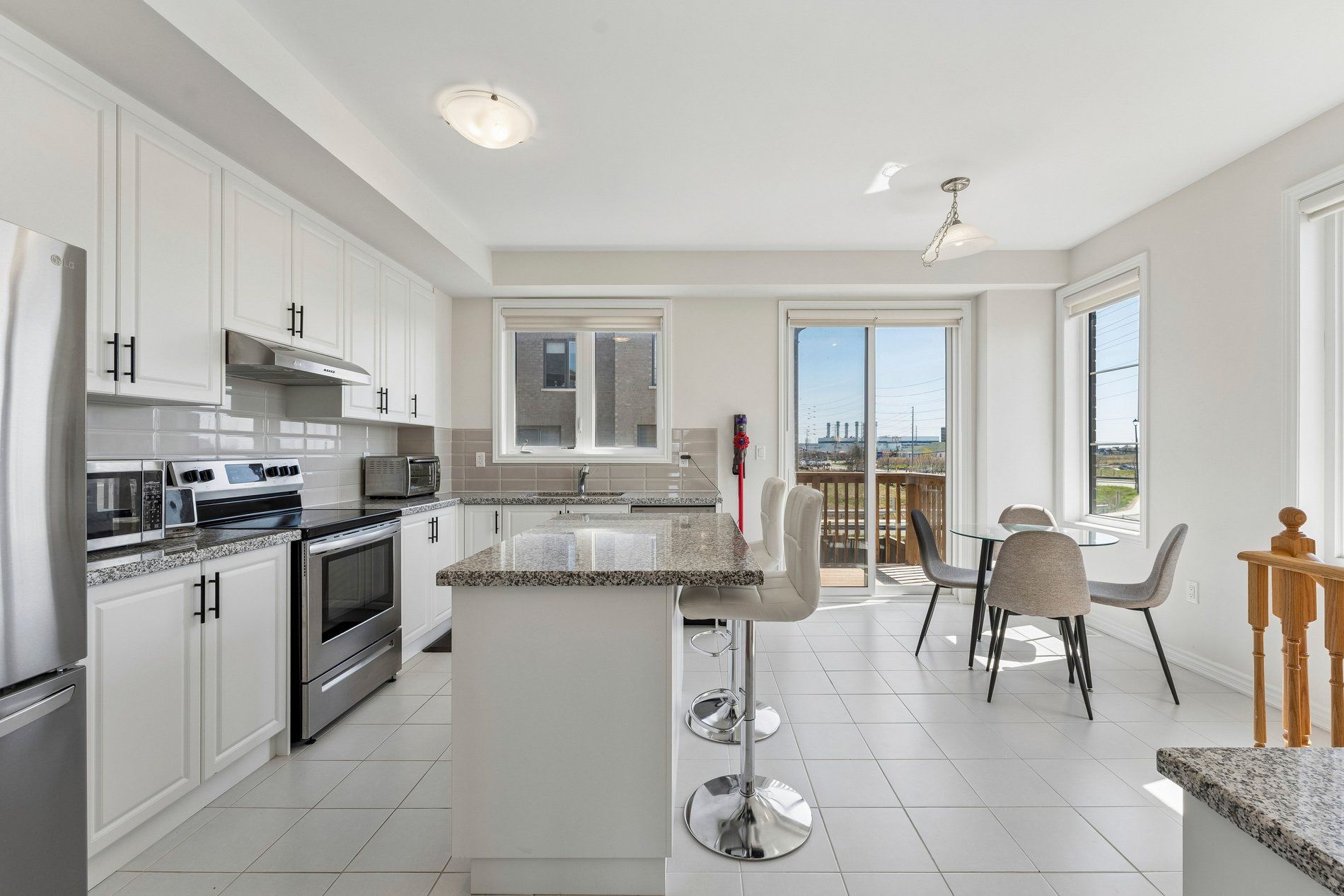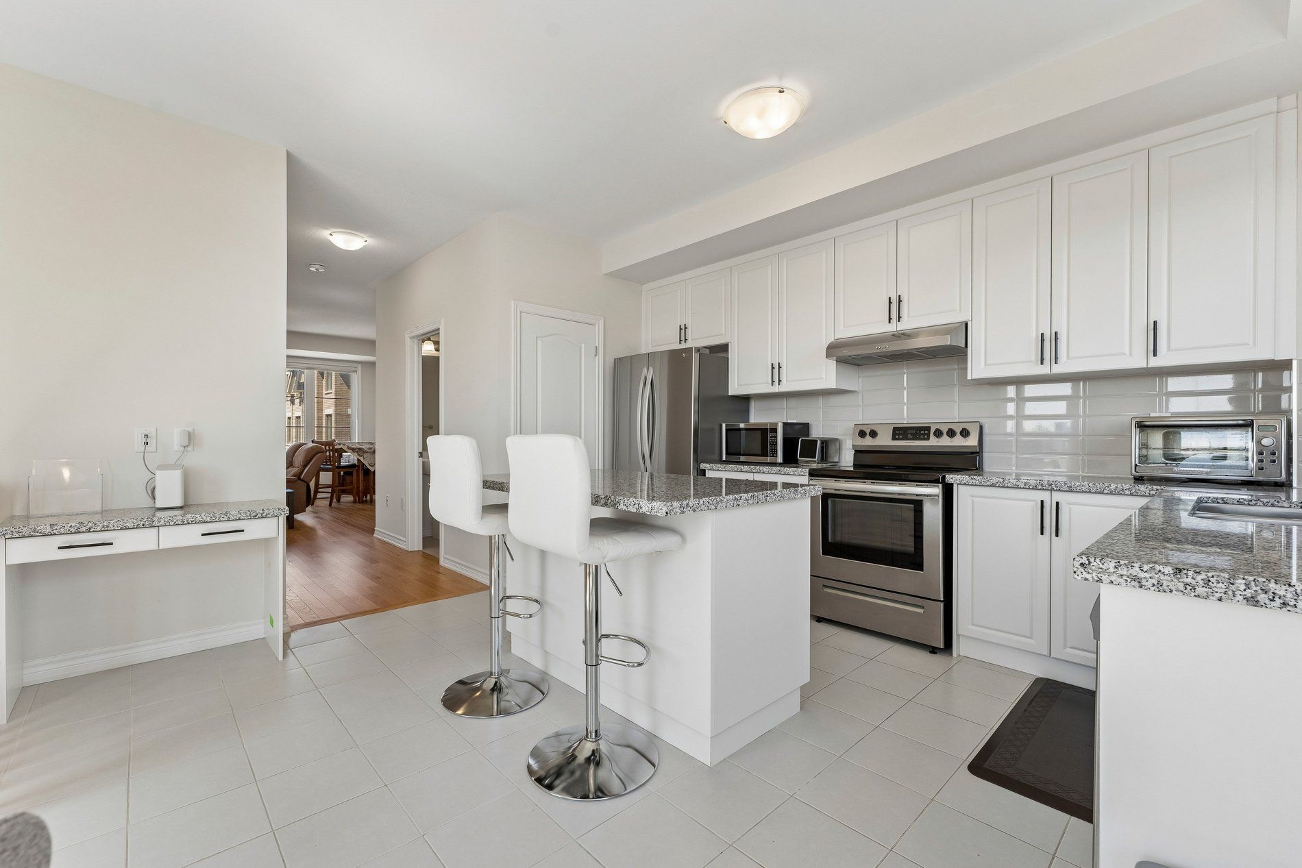 • Modern kitchen with ample cabinetry and quality appliances for cooking.