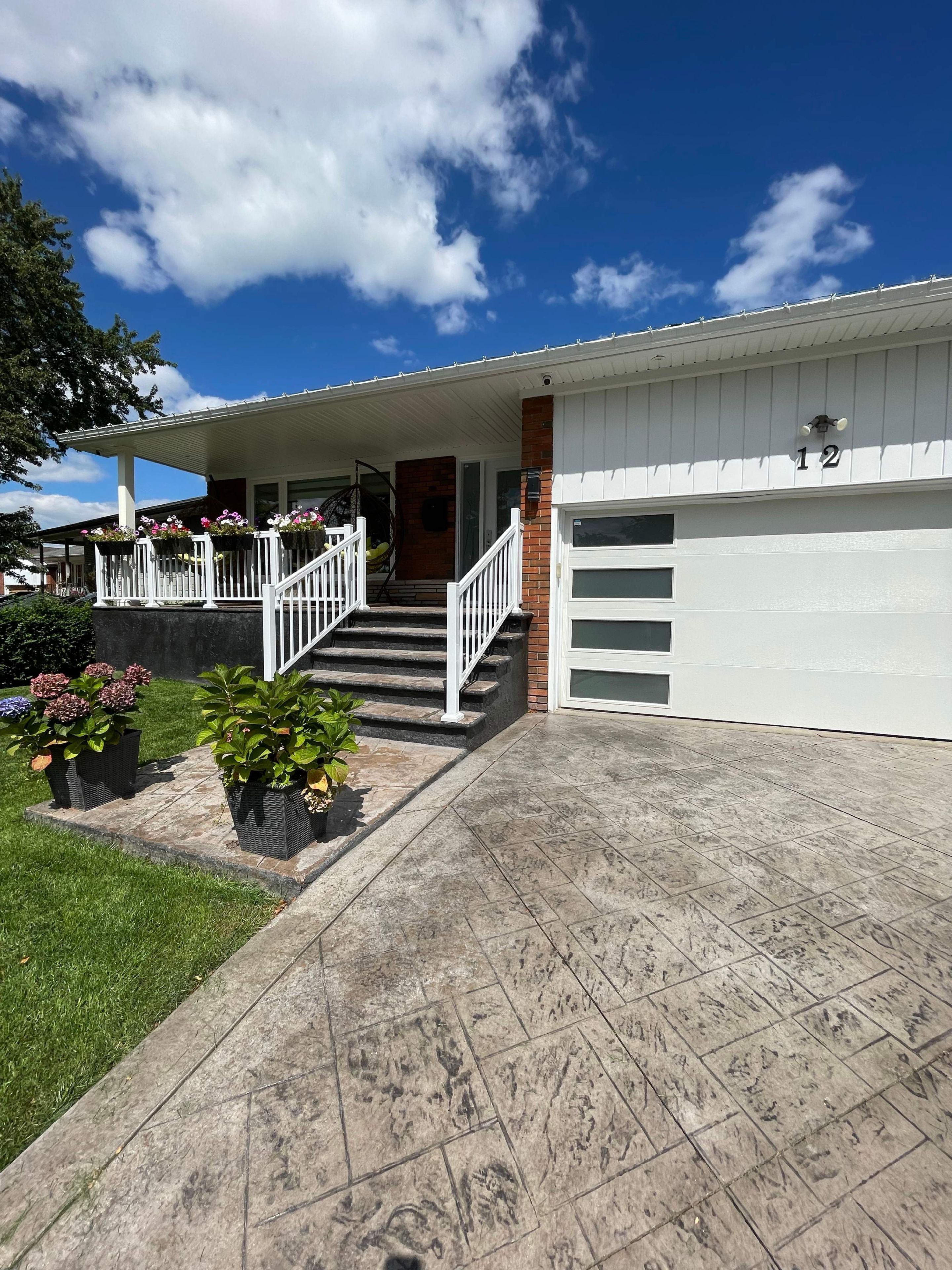 Virtually staged. Beautiful 3 +2 bdrm, 2 bath home with triple pane windows (2020) on a lovely, quiet cul de sac. Solid brick, detached with private double driveway and double car garage. Main floor features hardwood floors, stunning kitchen with a large white quartz island. Stainless steel appliances include gas burners and oven, pot filler, microwave, dishwasher and fridge with water dispenser. Enjoy the heated floors at the entrance, kitchen and both bathrooms. Bathroom towel racks in both bathrooms are heated. Primary bdrm has a huge walk-in closet. Light filtered zebra blinds and california blinds on main floor windows. Side door opens to a deck and large, private fenced rear yard. Basement has roughed in kitchen by the staircase, a roughed in sauna and an extra shower in the laundry/utility rm. Rec room with electric fireplace. Roof (2021). Home inspection available.