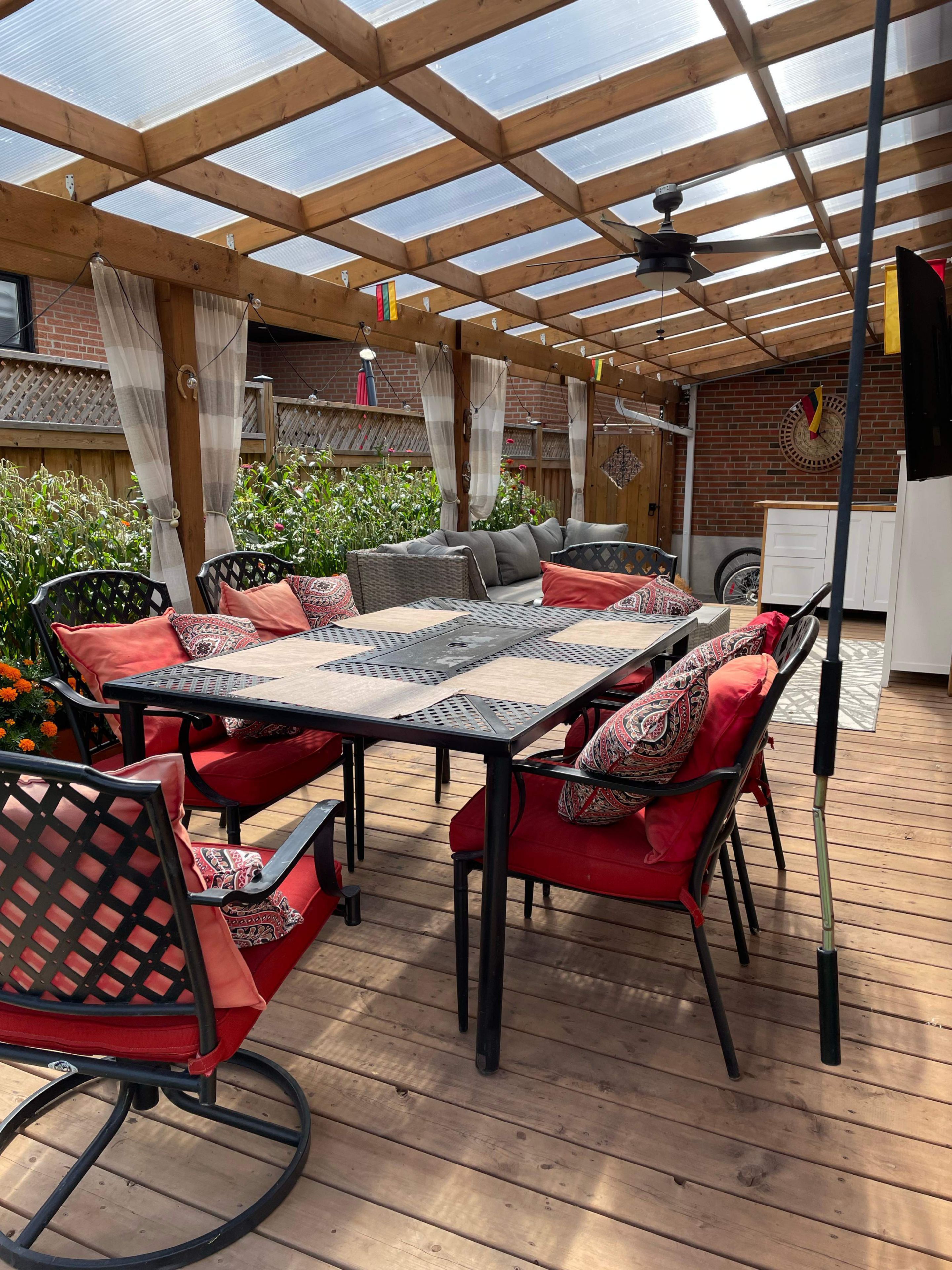 • Large, private fenced yard with a deck for outdoor enjoyment.