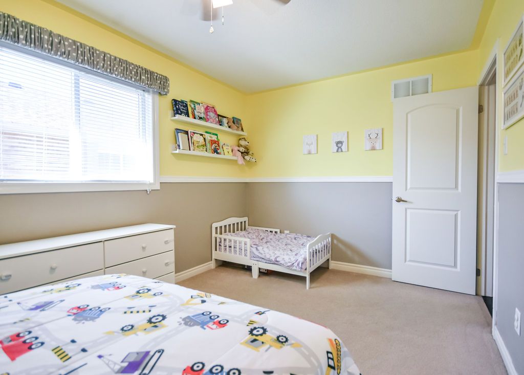 Rizzardi-built raised bungalow offering great value in an ideal, family-friendly location close to schools with quick access to the highway. A stunning stone walkway leads to the front entrance, setting the tone for the quality found throughout. The main floor features hardwood stairs and flooring, a bright and spacious living room with a large bay window, and a generous eat-in kitchen with abundant counter space, pantry storage, breakfast bar, and upgraded additional cabinetry for enhanced functionality. The master bedroom easily accommodates a king-size bed and includes a walk-in closet and a 3-piece ensuite. A second bedroom, a full 4-piece bathroom, and convenient main-floor laundry complete the upper level. The lower level was professionally finished by the builder, offering a huge recreation room, an additional bedroom with very large windows, and another 4-piece bathroom-perfect for extended family, guests, or flexible living arrangements. This home has been very well cared for and is truly move-in ready. Simply settle in and enjoy.