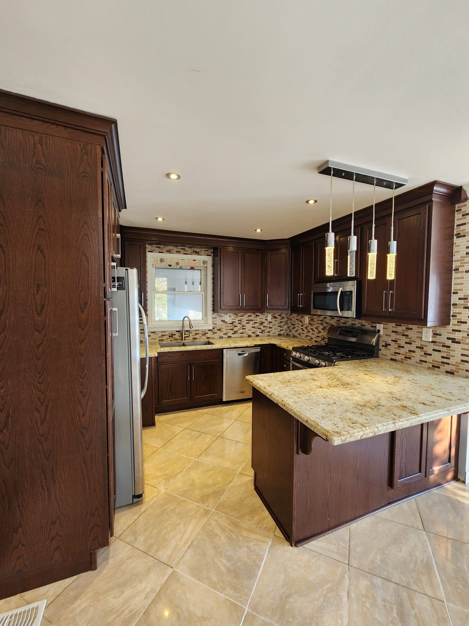 Amazing house - main floor for rent. Fully renovated bungalow with quality finishes throughout. The open-concept main floor features a spacious living and dining area, flowing into a bright, sun-filled solarium with large windows and direct access to the backyard. The modern kitchen offers granite countertops, a breakfast bar, and a ceramic backsplash, perfect for everyday living. The primary bedroom includes a private 2-piece ensuite and closet. The second and third bedrooms are bright, with large windows and built-in closets. Amazing location, 5 mins to the highway, close to shopping malls, grocery and many more attractions. Don't miss this opportunity!