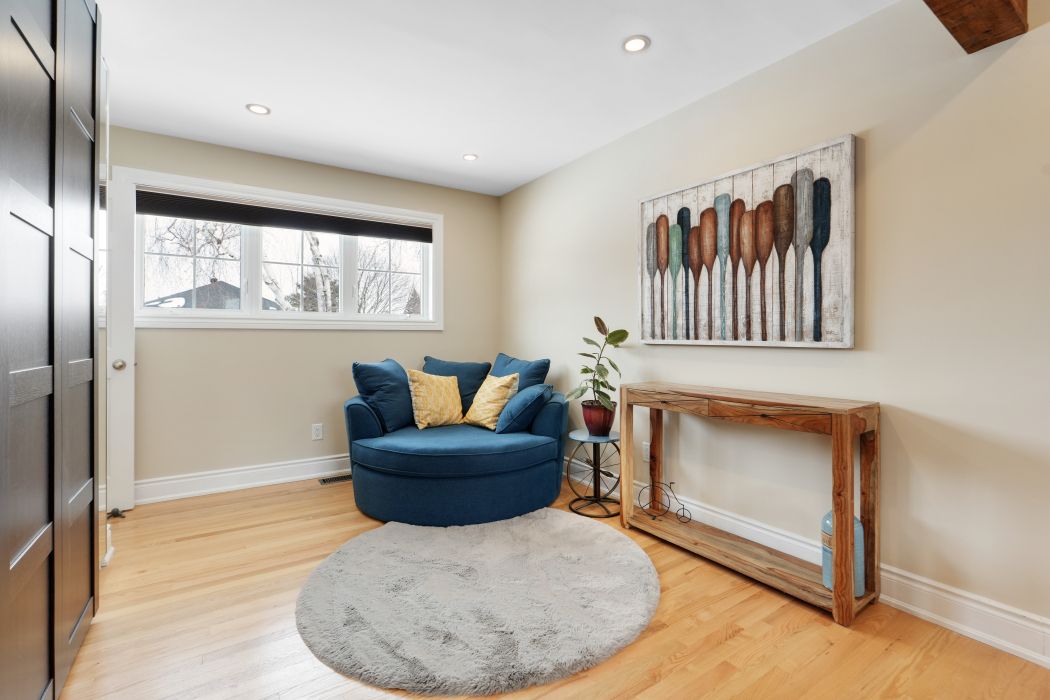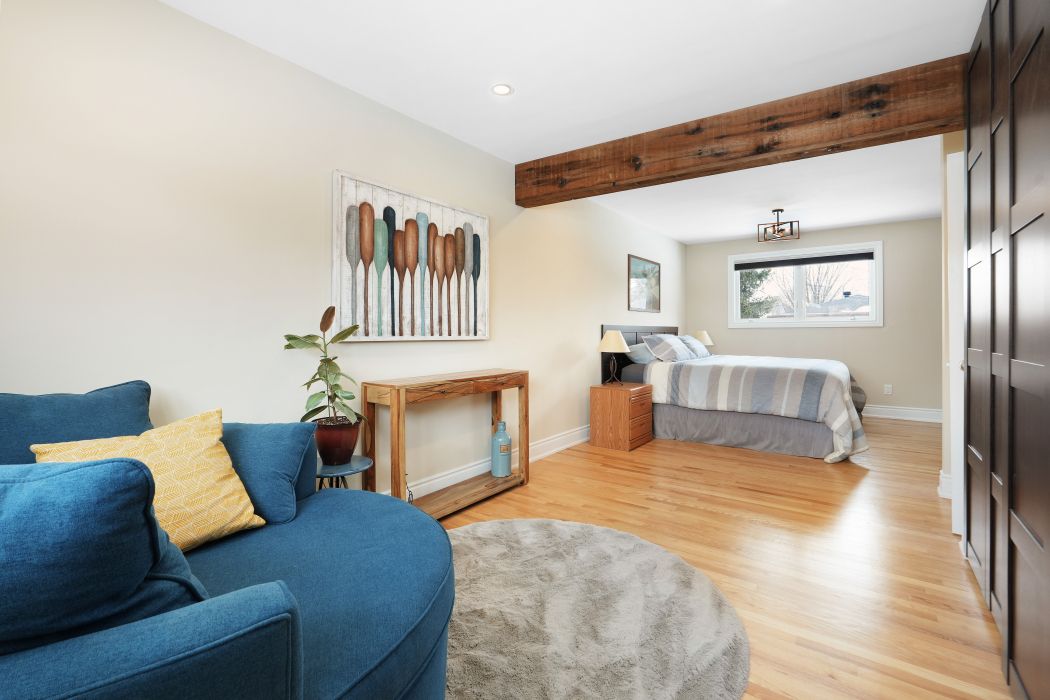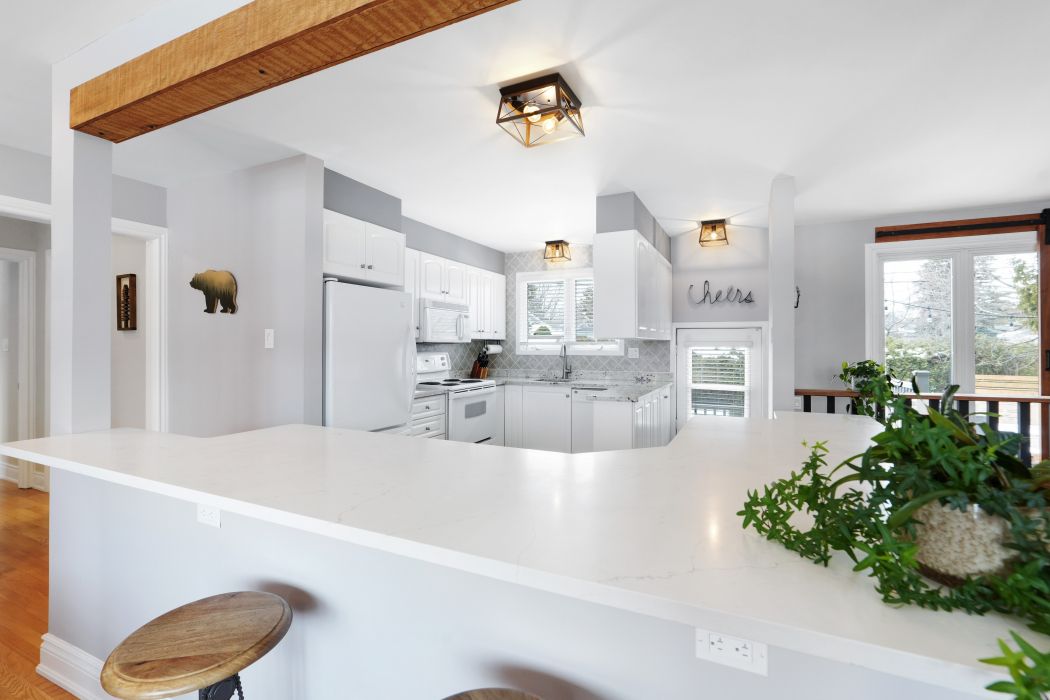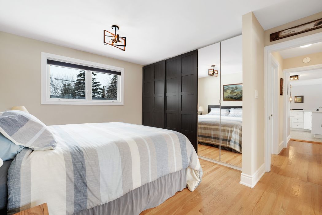 Welcome to this stunning brick bungalow featuring a bright, modern open-concept main floor designed for both comfortable everyday living and effortless entertaining. Enjoy preparing meals in the show-stopping kitchen that offers ample work space, plenty of cabinets, heated floors and a gorgeous breakfast bar that flows seamlessly into the formal dining area and elegant living room that is beautifully anchored by a cozy gas fireplace. Originally designed with two bedrooms, the spacious primary suite has been transformed into a luxurious retreat complete with custom built-in closets and a beautifully renovated ensuite starring a spa like shower. The layout can easily be converted back if desired. This level also includes a stylish powder room and a versatile bedroom that is currently used as a home office but would also be perfect for guests or as a child's bedroom. The finished basement expands the living space with a large family room, a flexible den that would be ideal as a home office, music room or gym, a full 3-piece bathroom, a laundry area and lots of storage space. Step outside to your private backyard oasis with it's entertainment-sized composite deck surrounded by lush perennial gardens - an ideal setting for summer barbecues, relaxing evenings or hosting family and friends. Single attached insulated garage (with additional door to backyard) and parking for up to five vehicles. This beautiful home is perfectly situated in a highly sought-after central neighbourhood with quick access via car, public transportation or cycling to downtown, the civic hospital, the experimental farm, carleton university and so much more. Enjoy year-round outdoor recreation along the scenic rideau canal located just minutes away. Roof and added insulation 2023. 24 hour irrev on offers. Visit today!