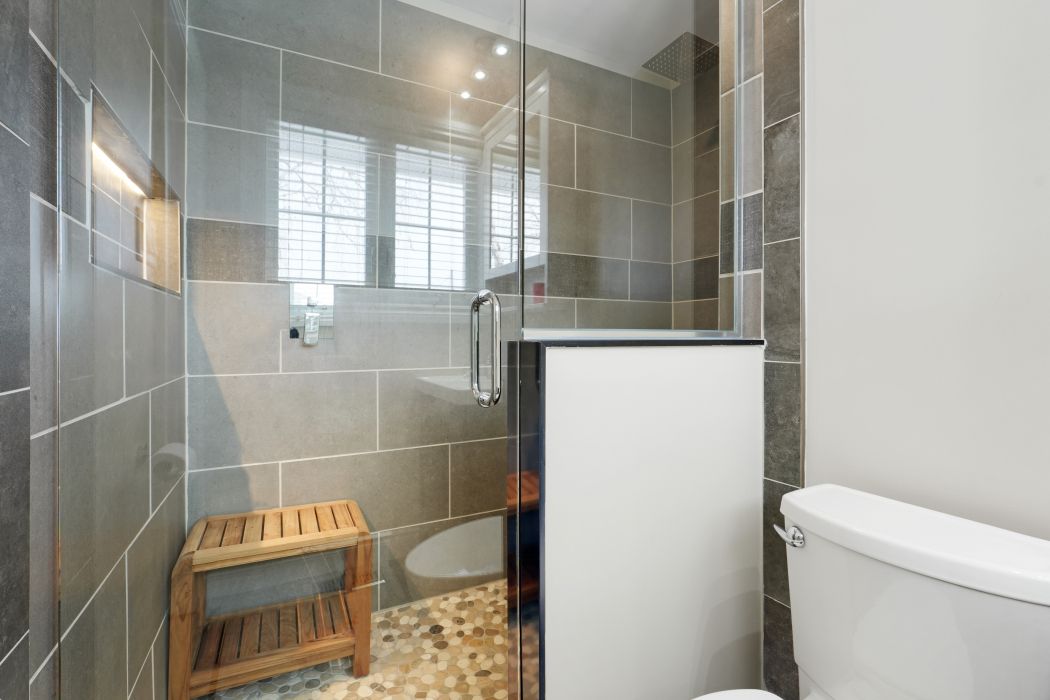 • Spacious primary suite transformed into a luxurious retreat with custom closets.