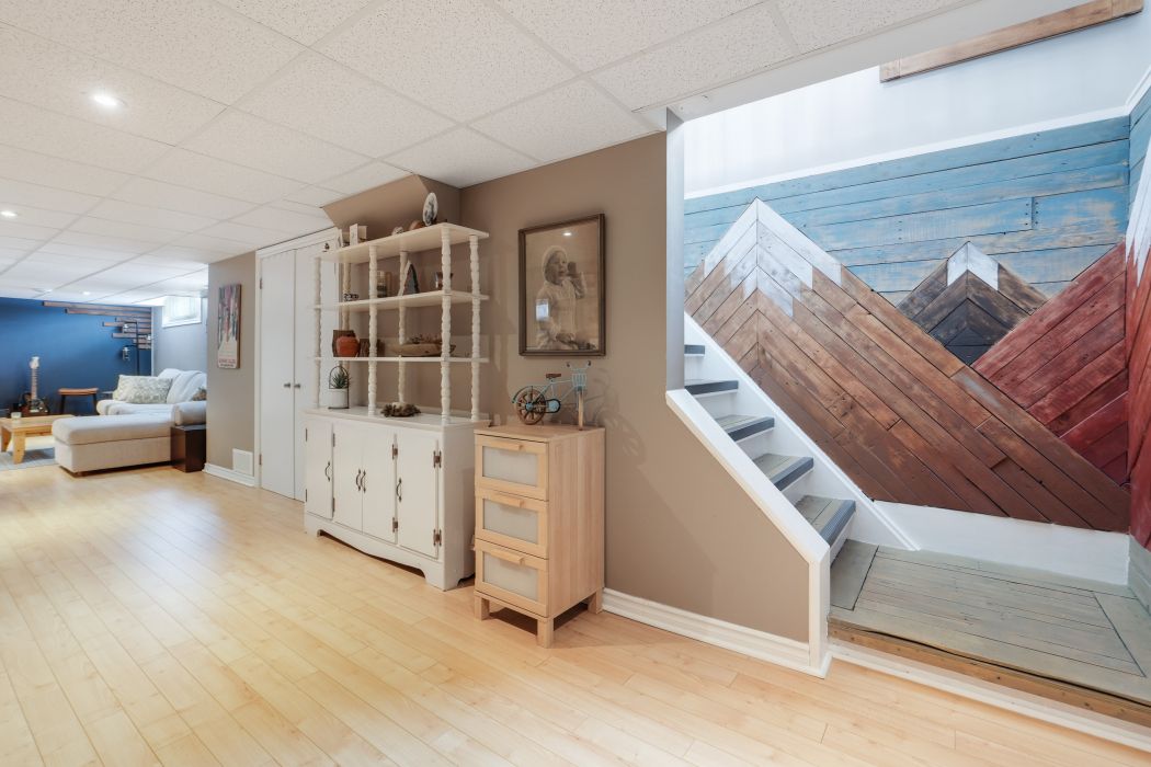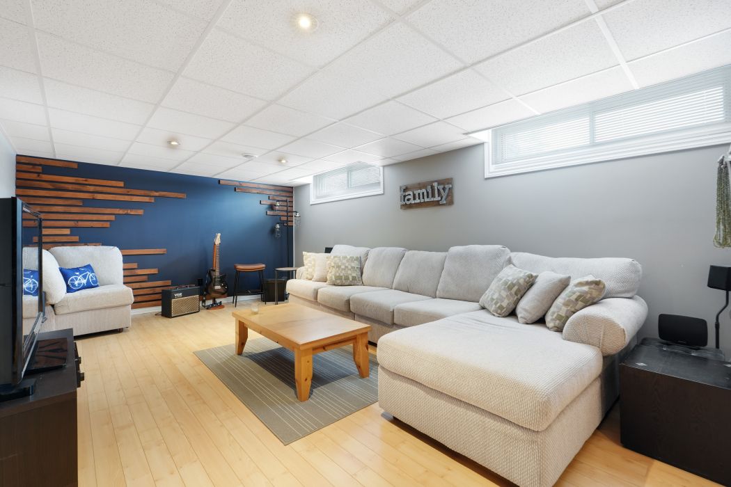 • Finished basement with family room, flexible den, and additional storage space.