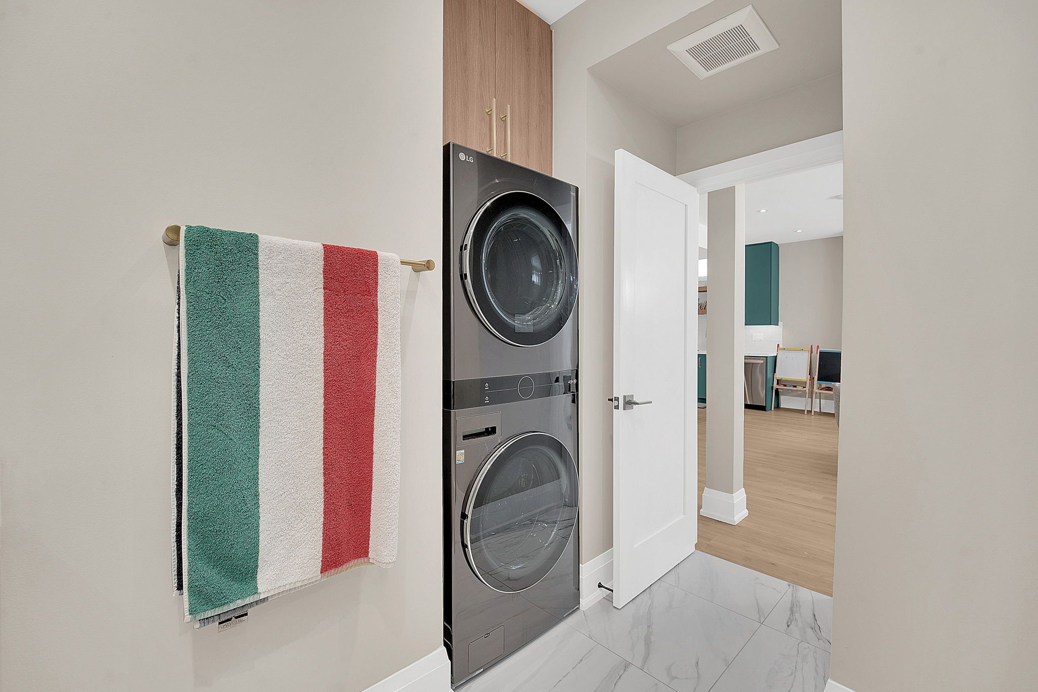• Finished basement with gym, second kitchen, and additional laundry space.