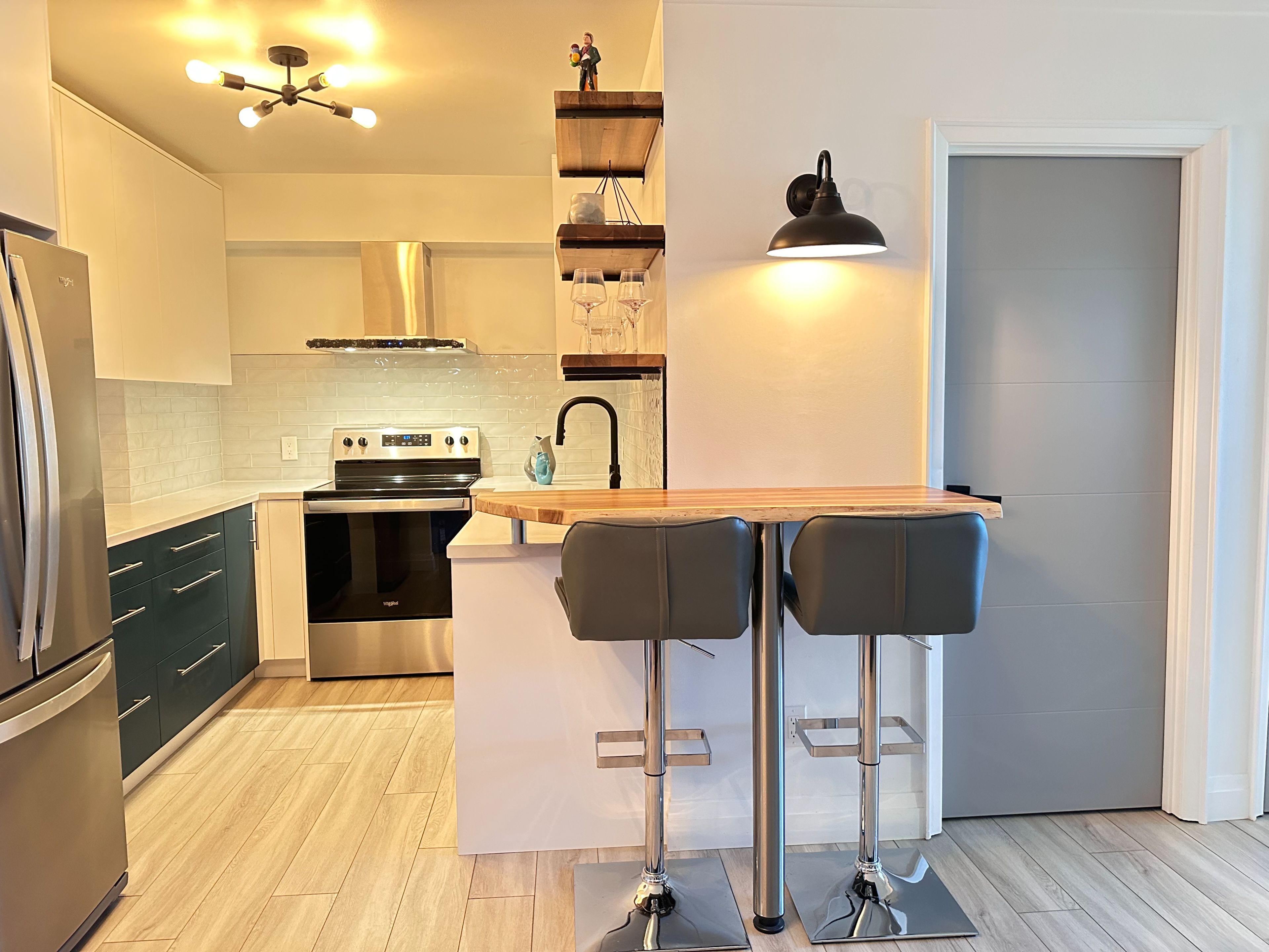 • Fully renovated, furnished one-bedroom apartment on the top floor.