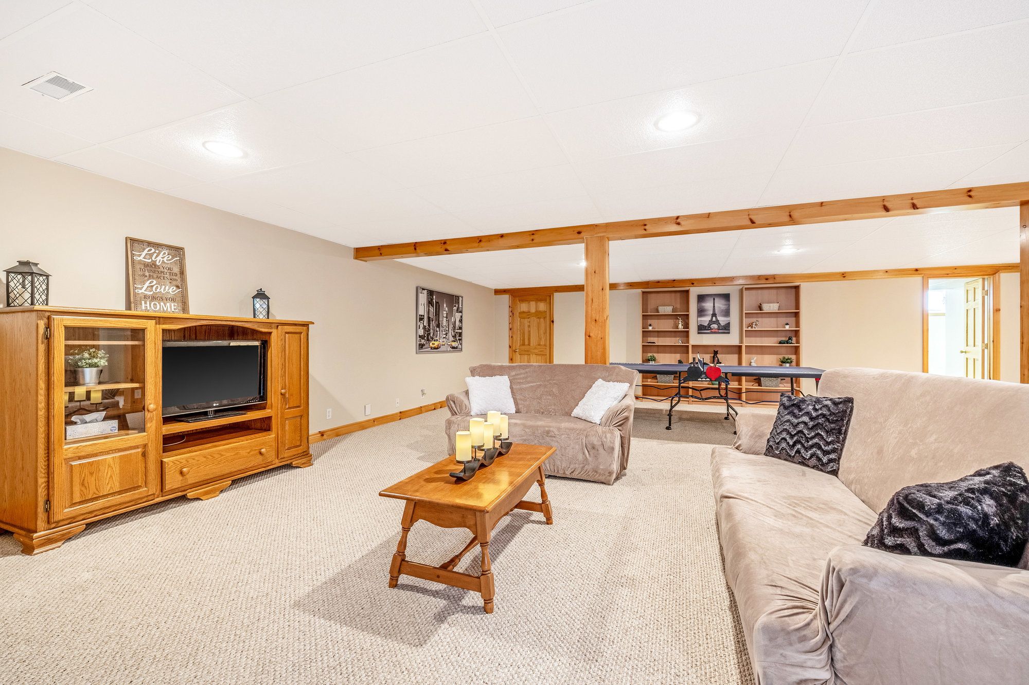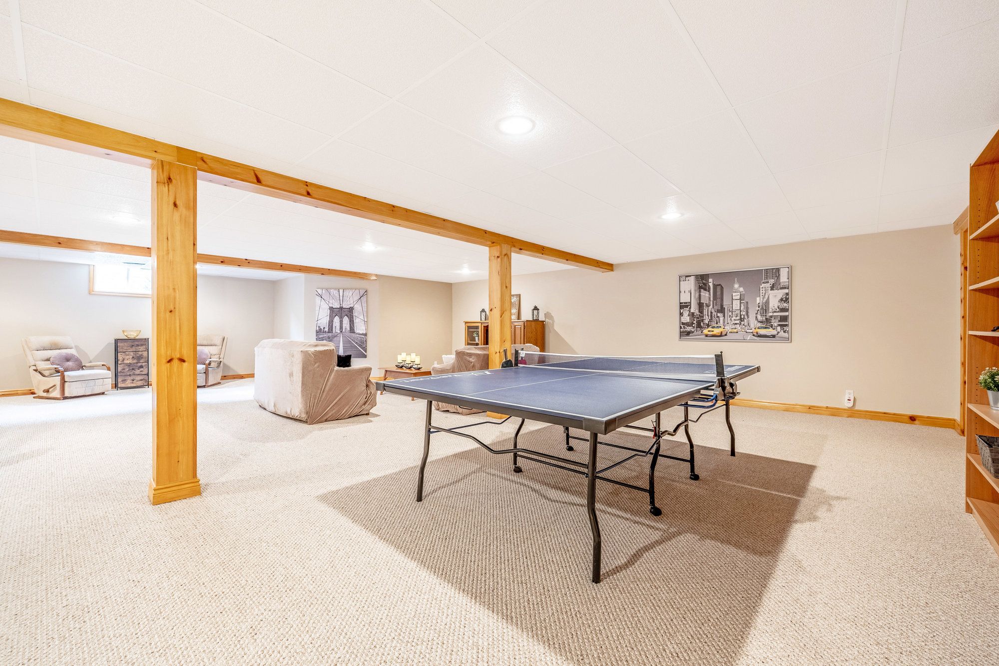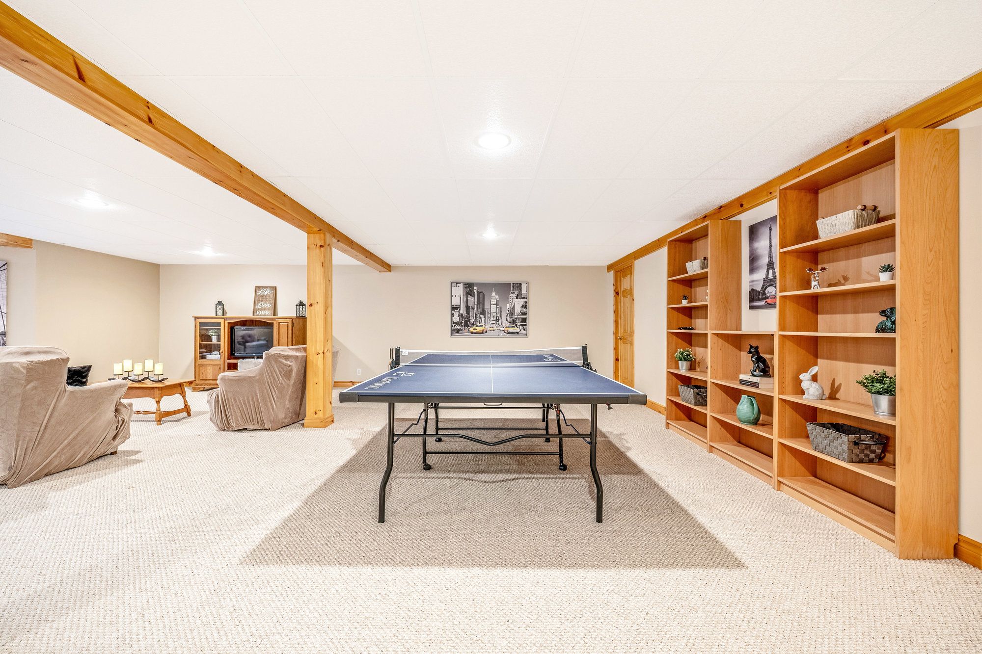 • Lower level includes large recreation room, extra bedroom, and bathroom.